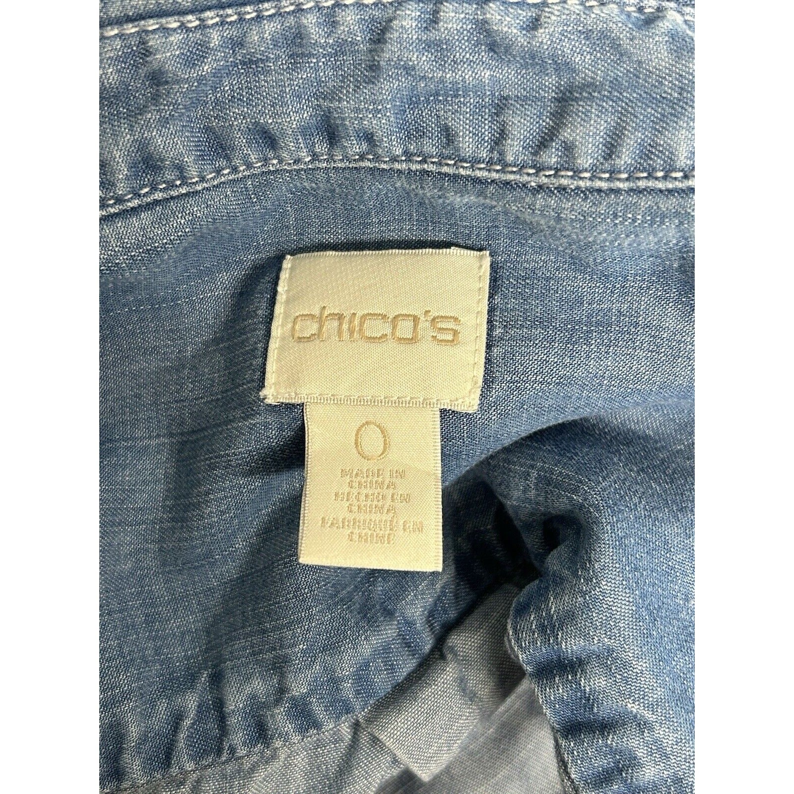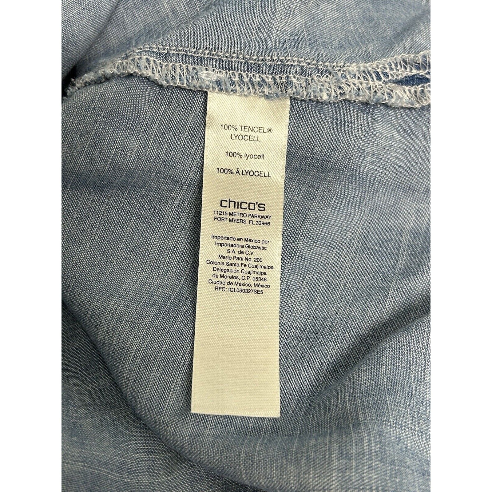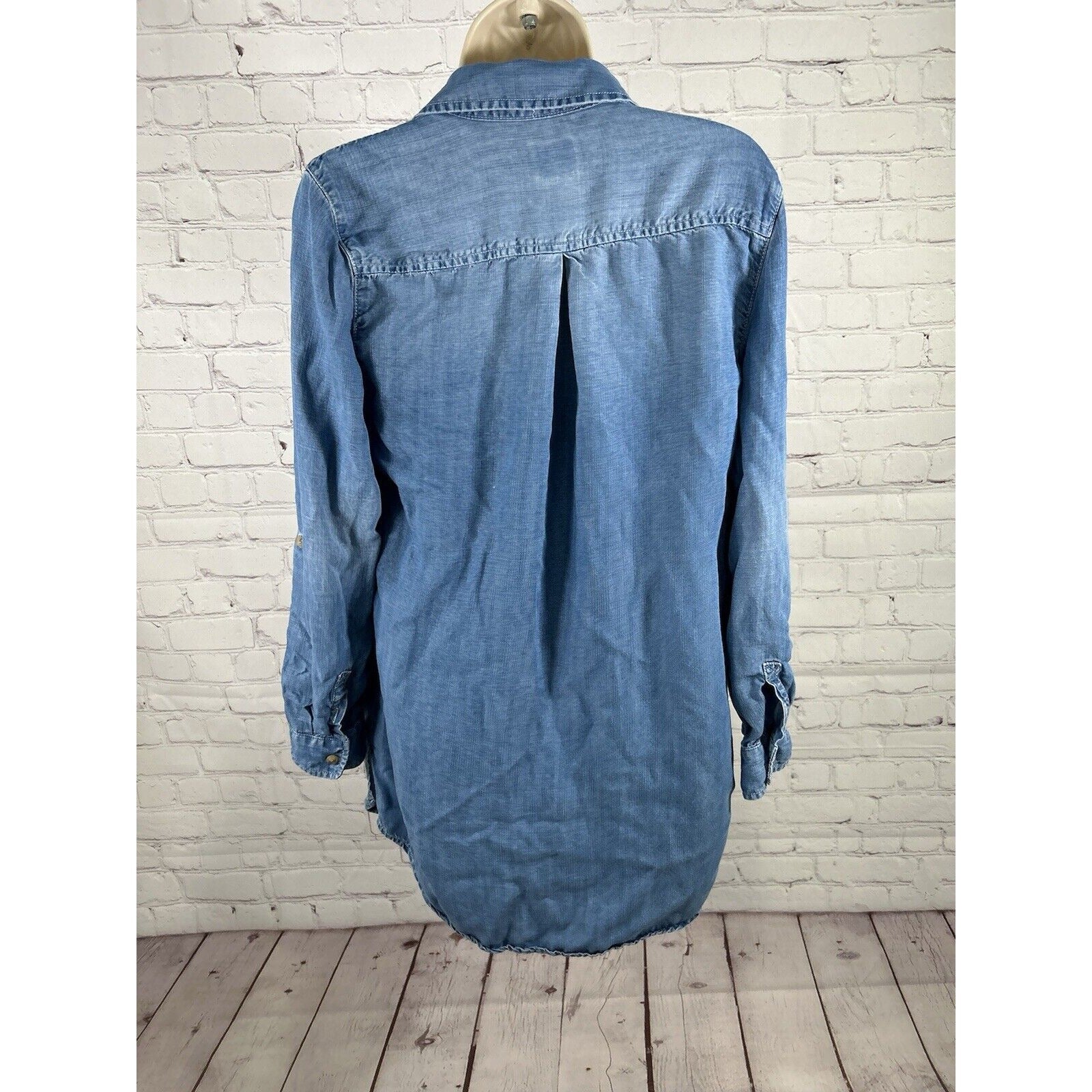 Chico’s Light Wash Button Up Roll Tab Long Sleeve Tunic Lyocell Women’s XS