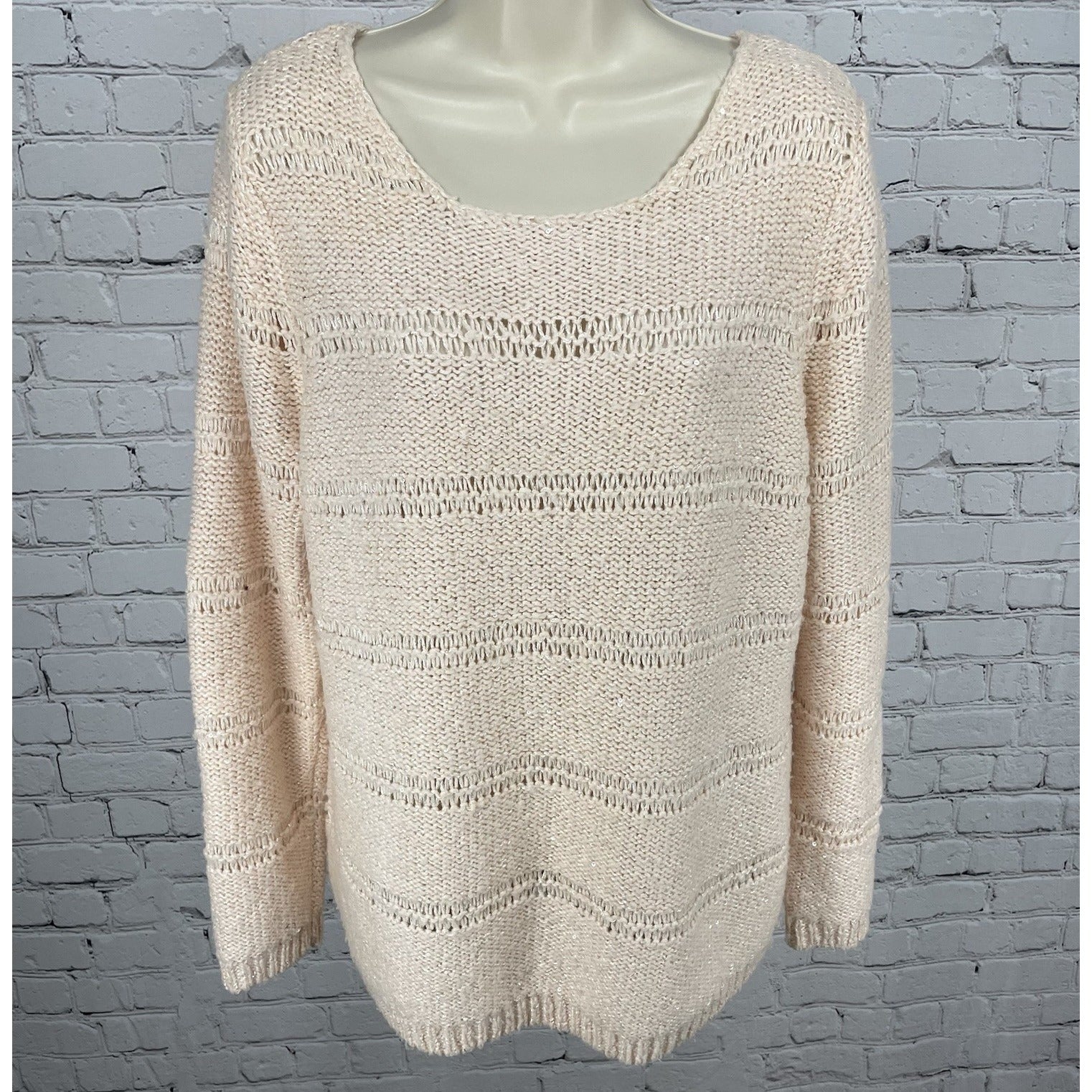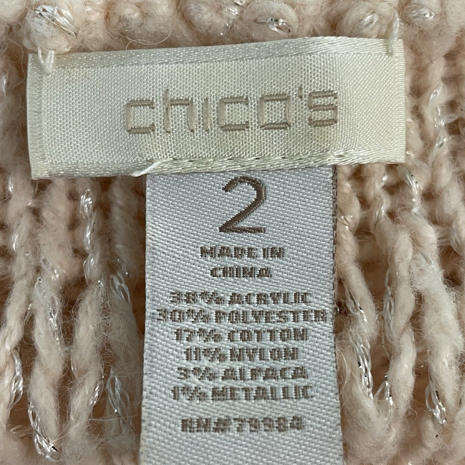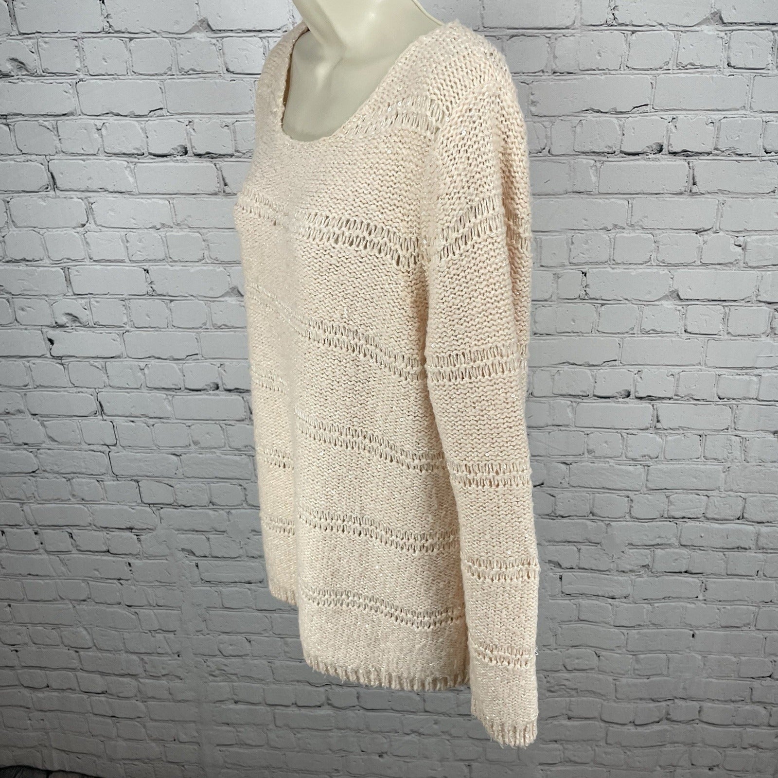 Chico’s Pink Metallic Sequin Sparkle Chunky Knit Pullover Sweater Size 2 (US 12)