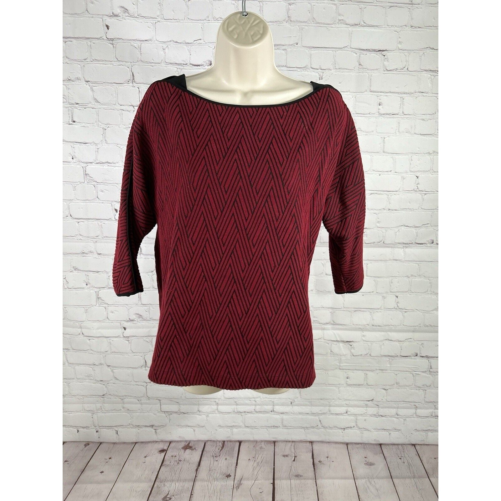 Chico’s Red Black Diamond 3/4 Sleeve Stretchy Top Women’s XS