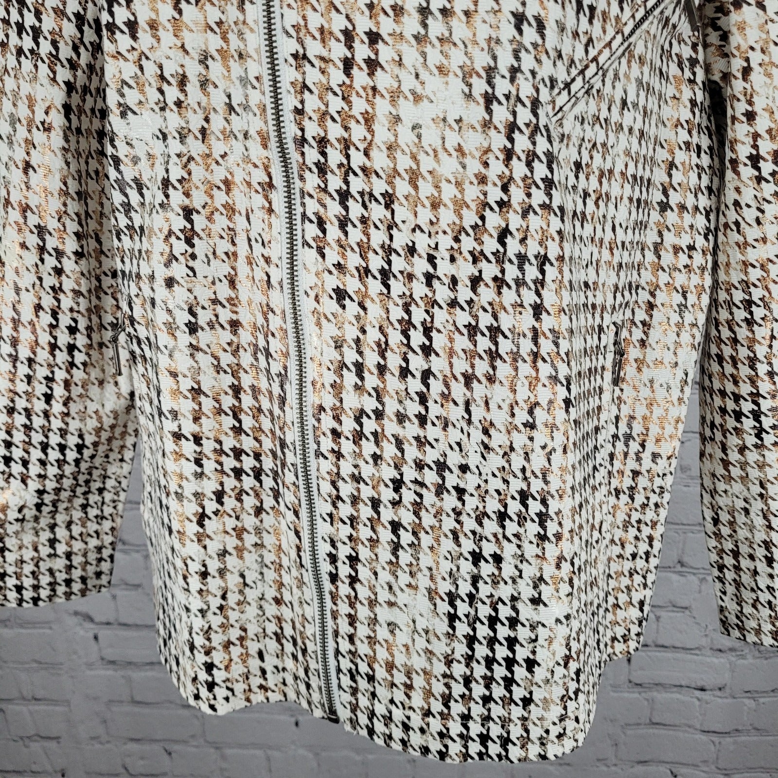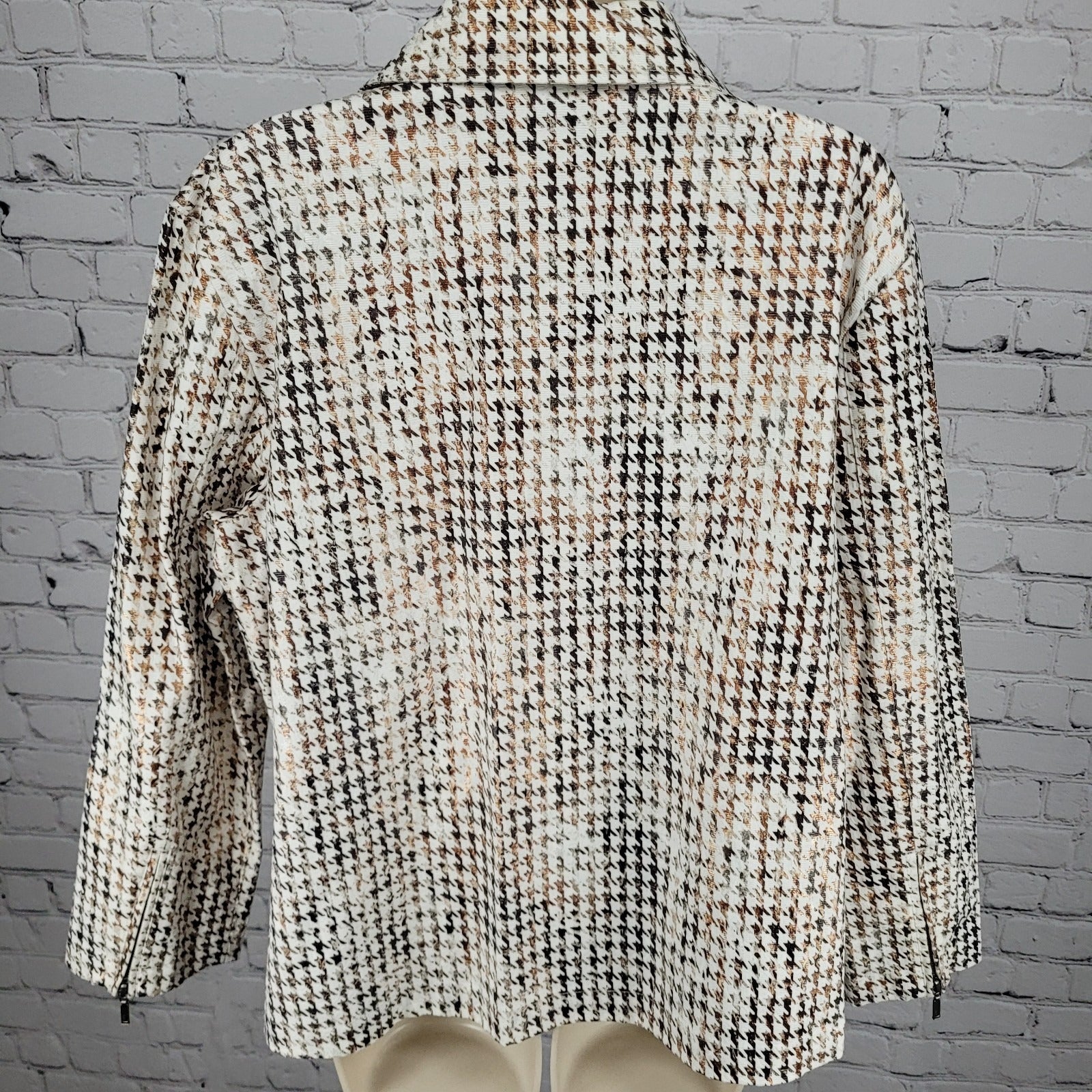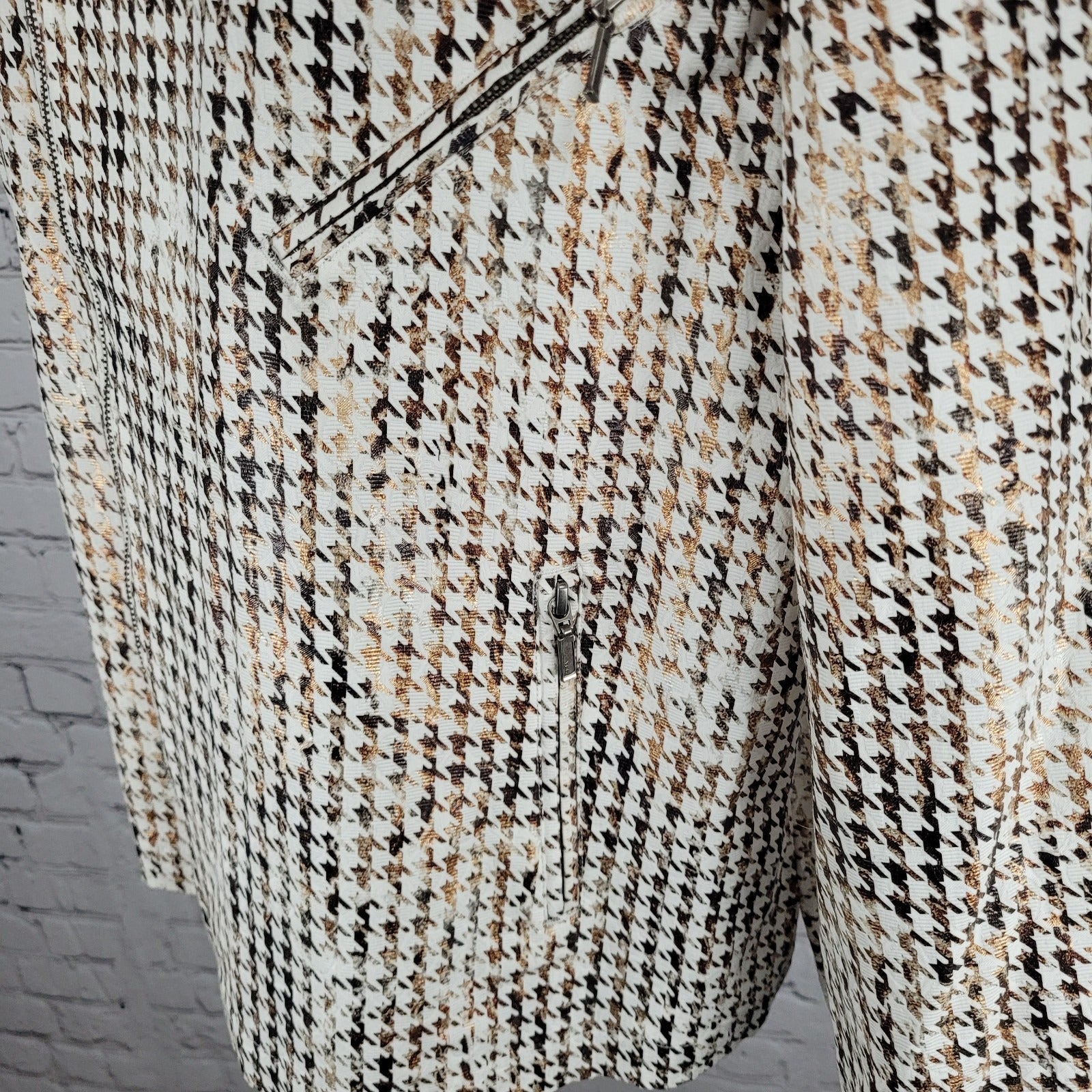Chico's Brown Metallic Houndstooth Lightweight Full Zip Moto Jacket Size 3 US 16