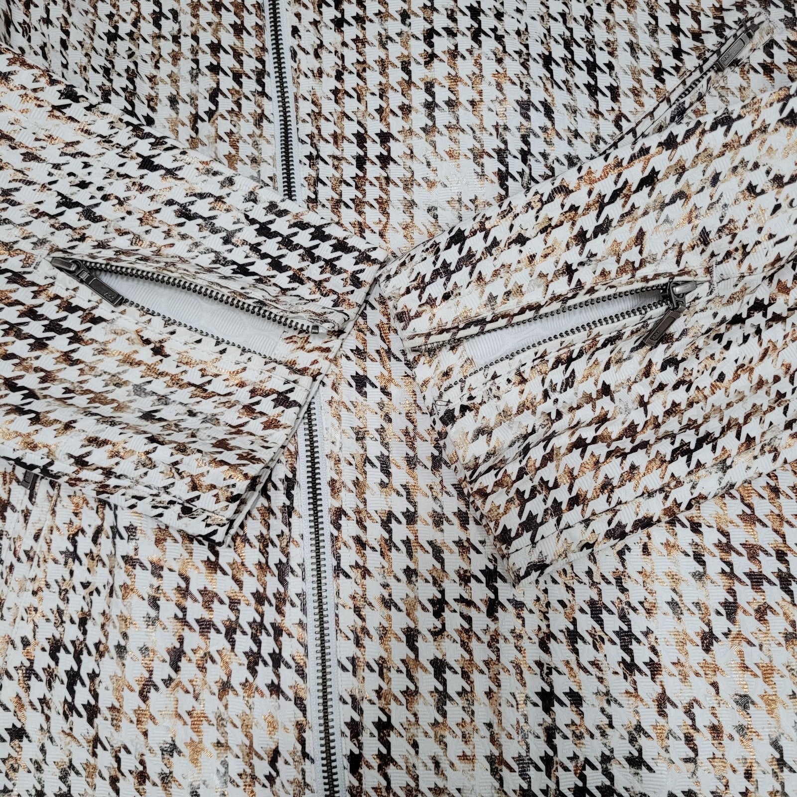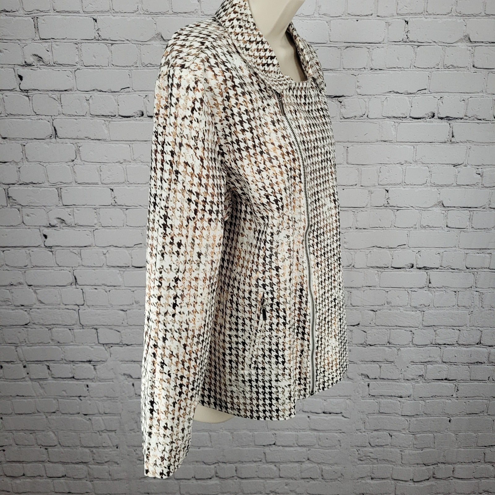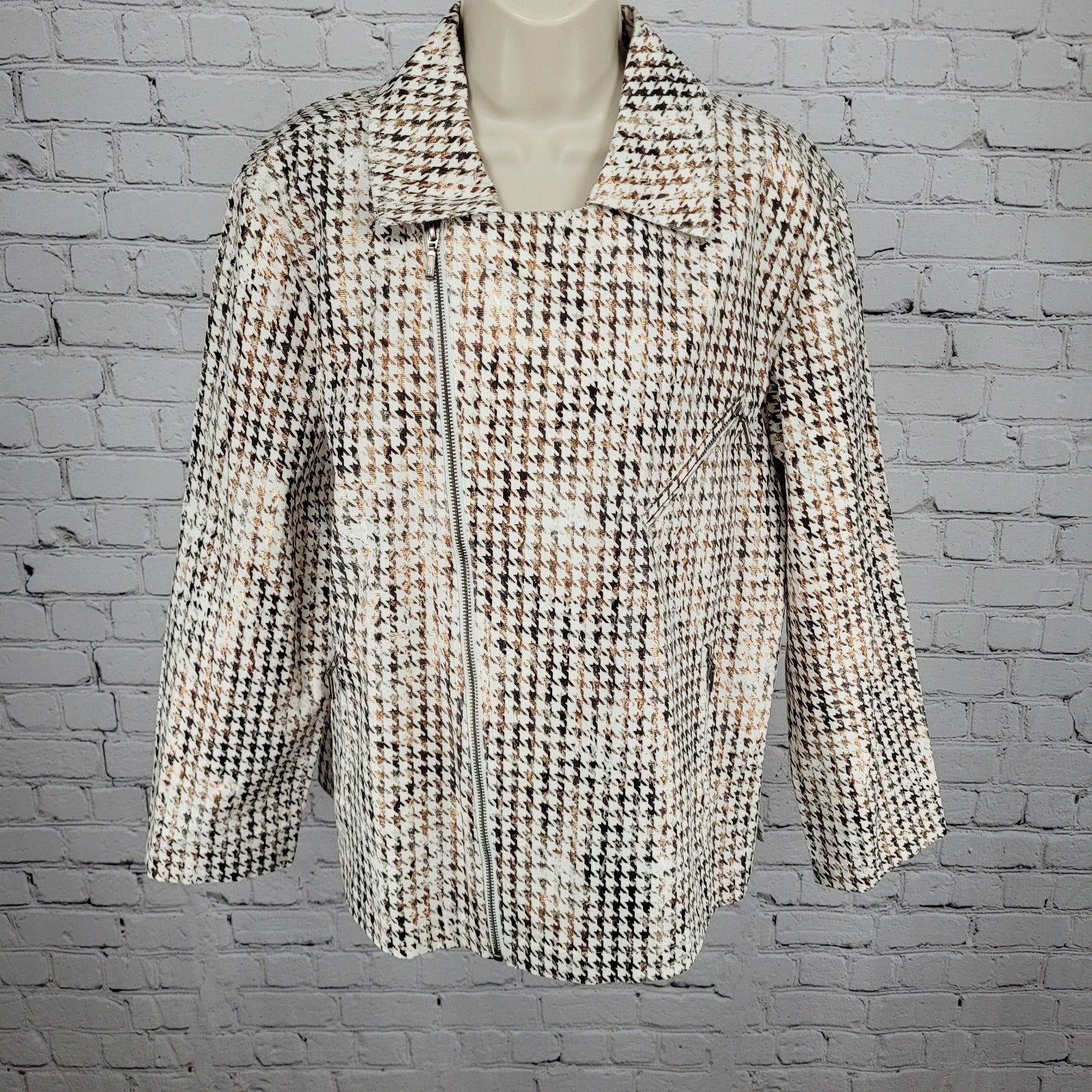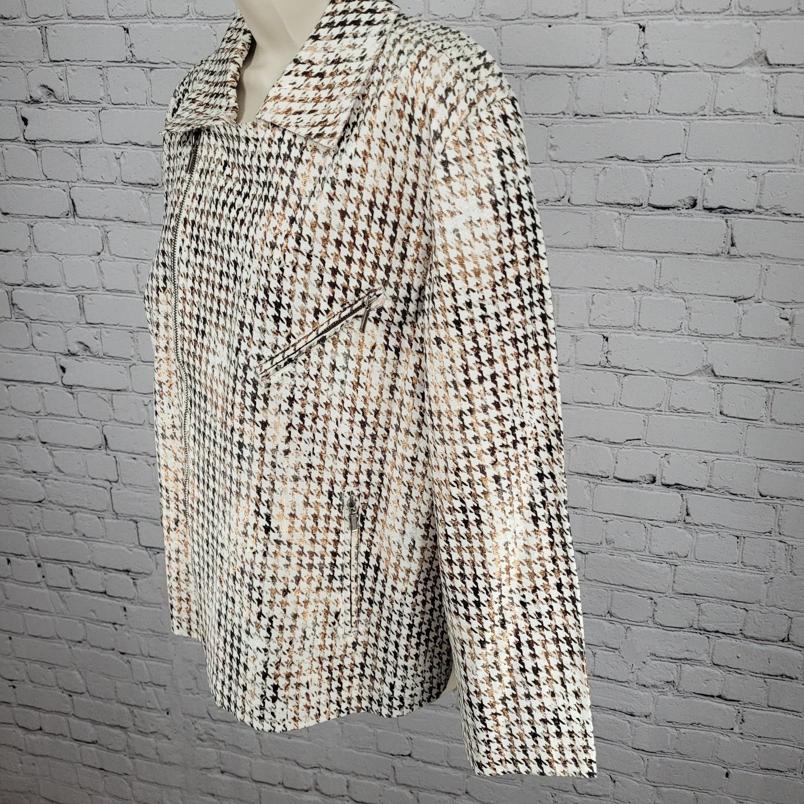 Chico's Brown Metallic Houndstooth Lightweight Full Zip Moto Jacket Size 3 US 16