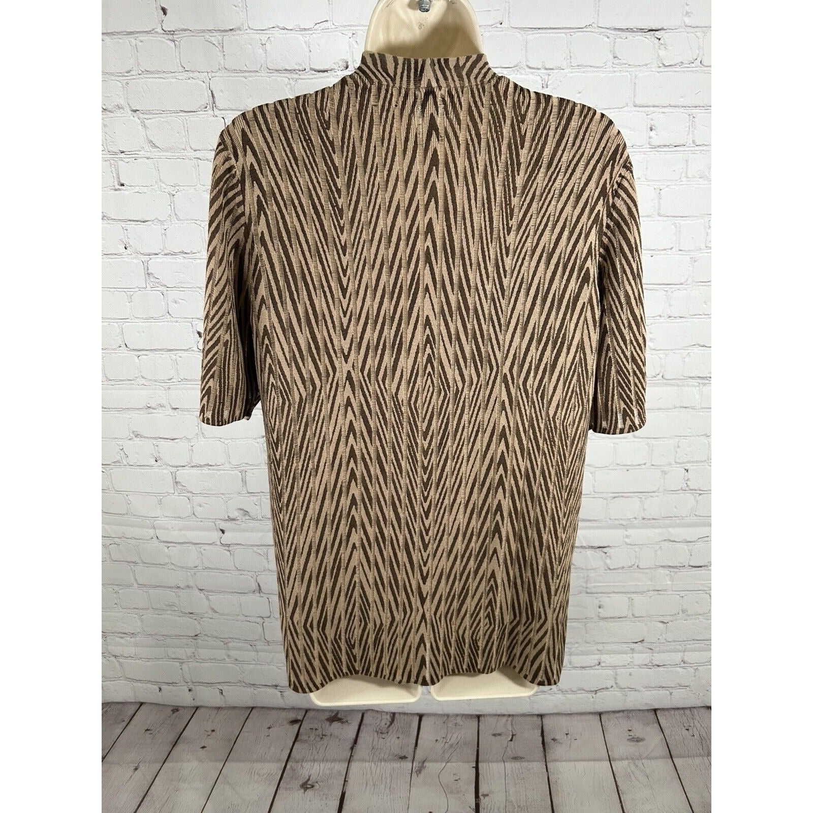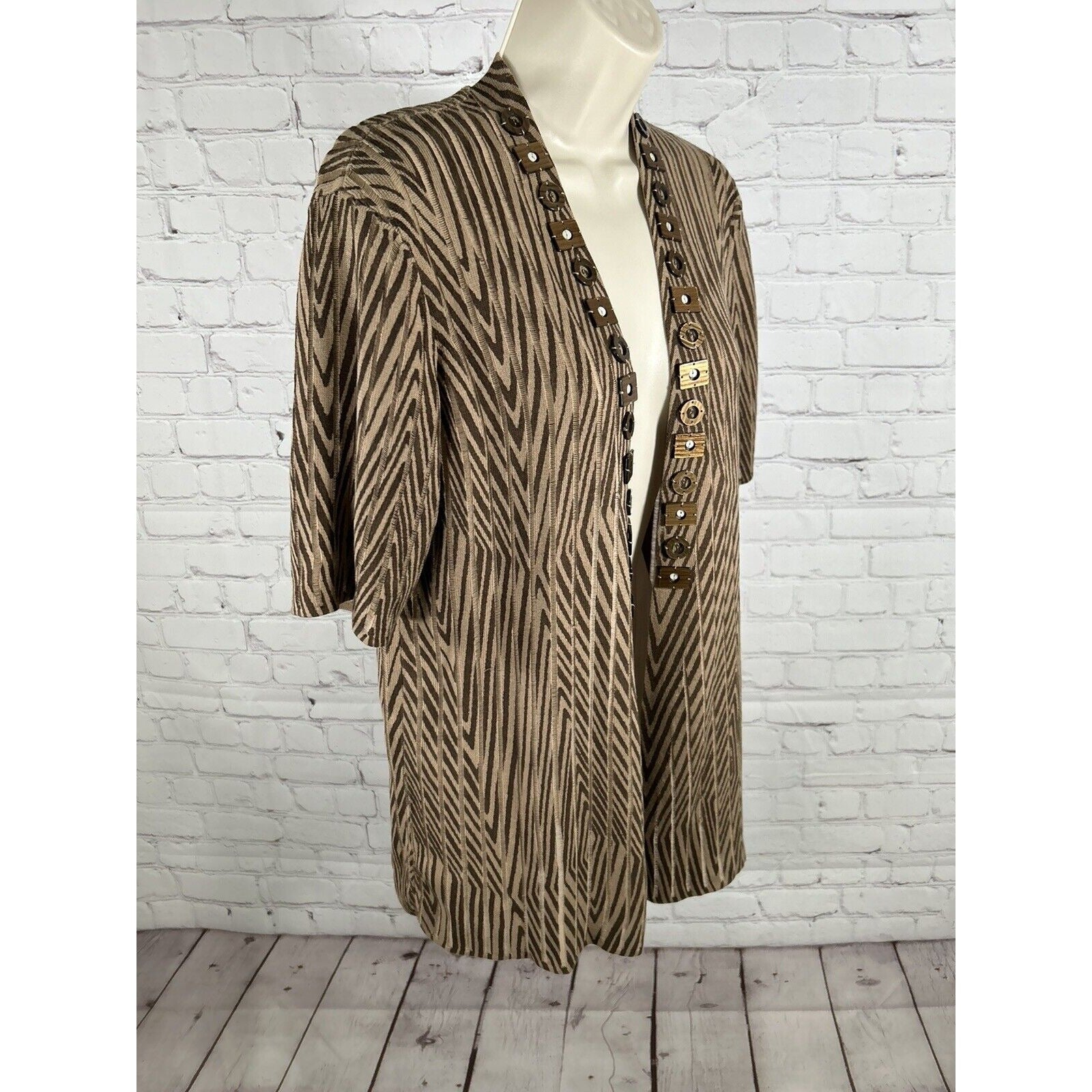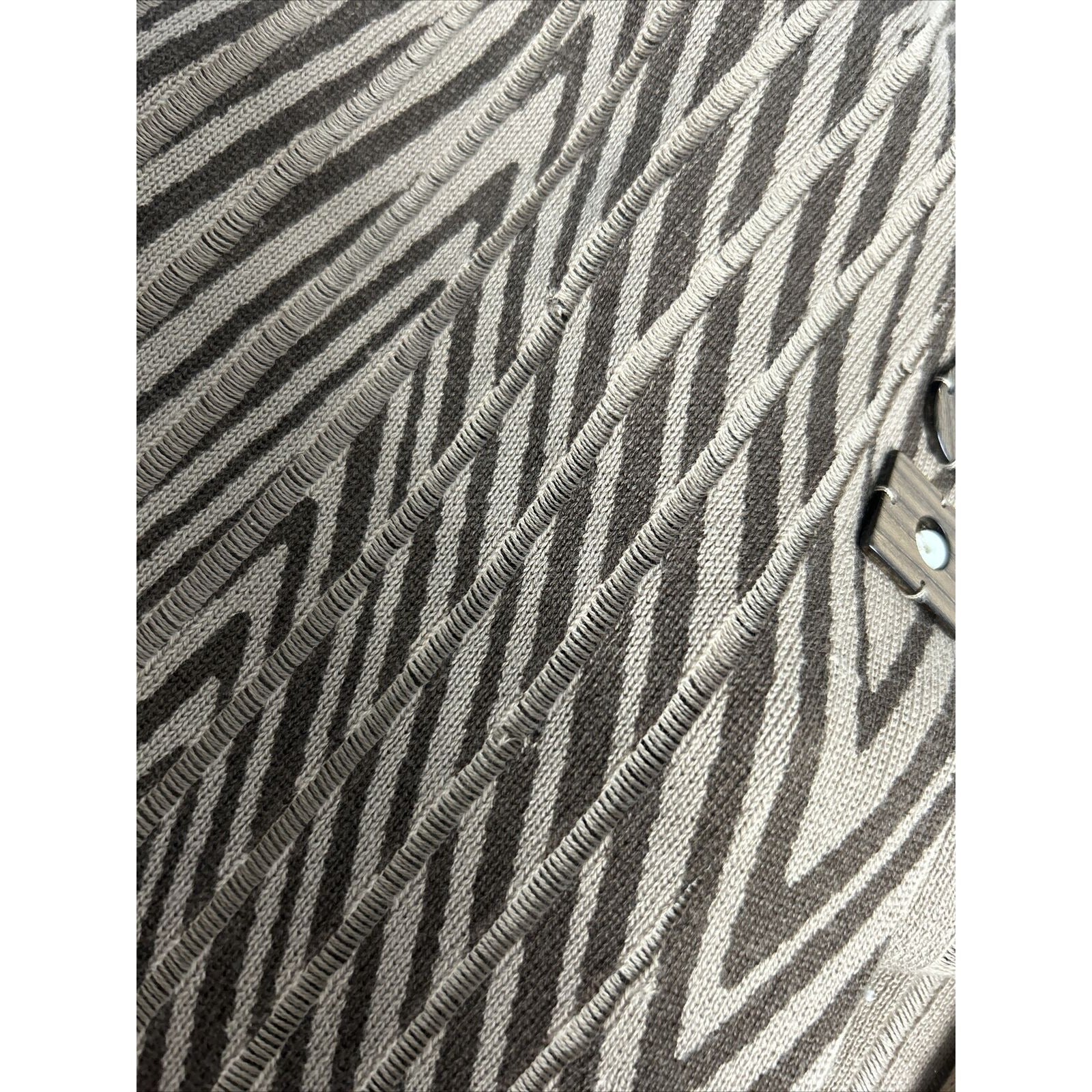 Chicos Chunky Beaded Short Sleeve Brown Striped Knit Cardigan Women’s M