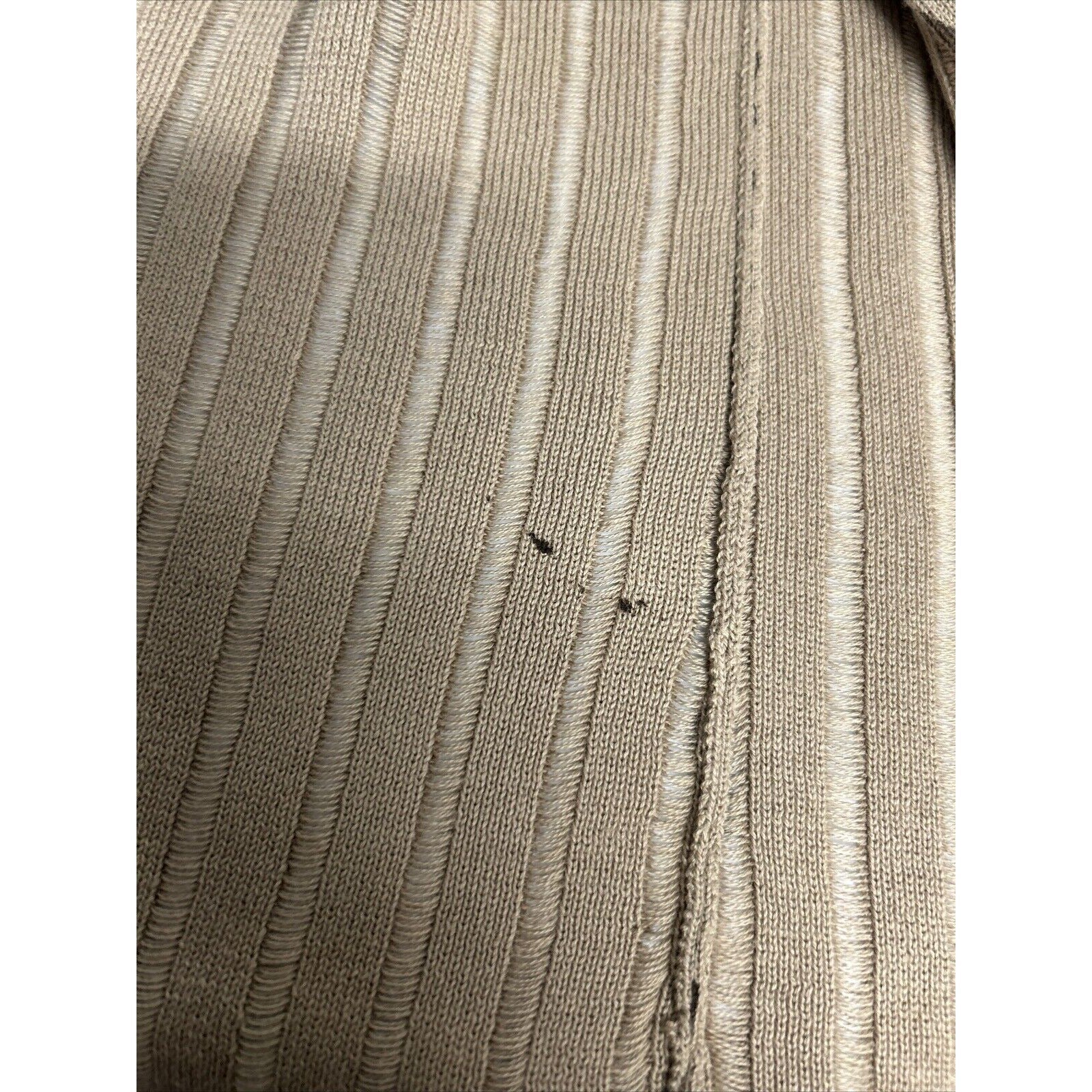 Several snags. Stain on inside of garment. See photos for reference.