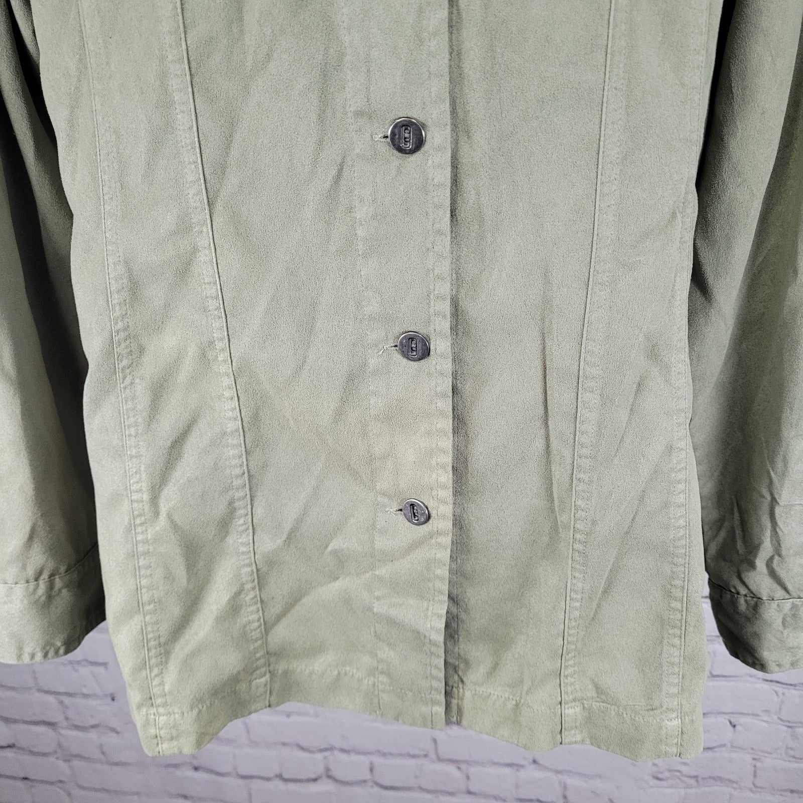 Chico's Green Suede Like Lightweight Button Up Long Sleeve Shirt Size 3 US 16