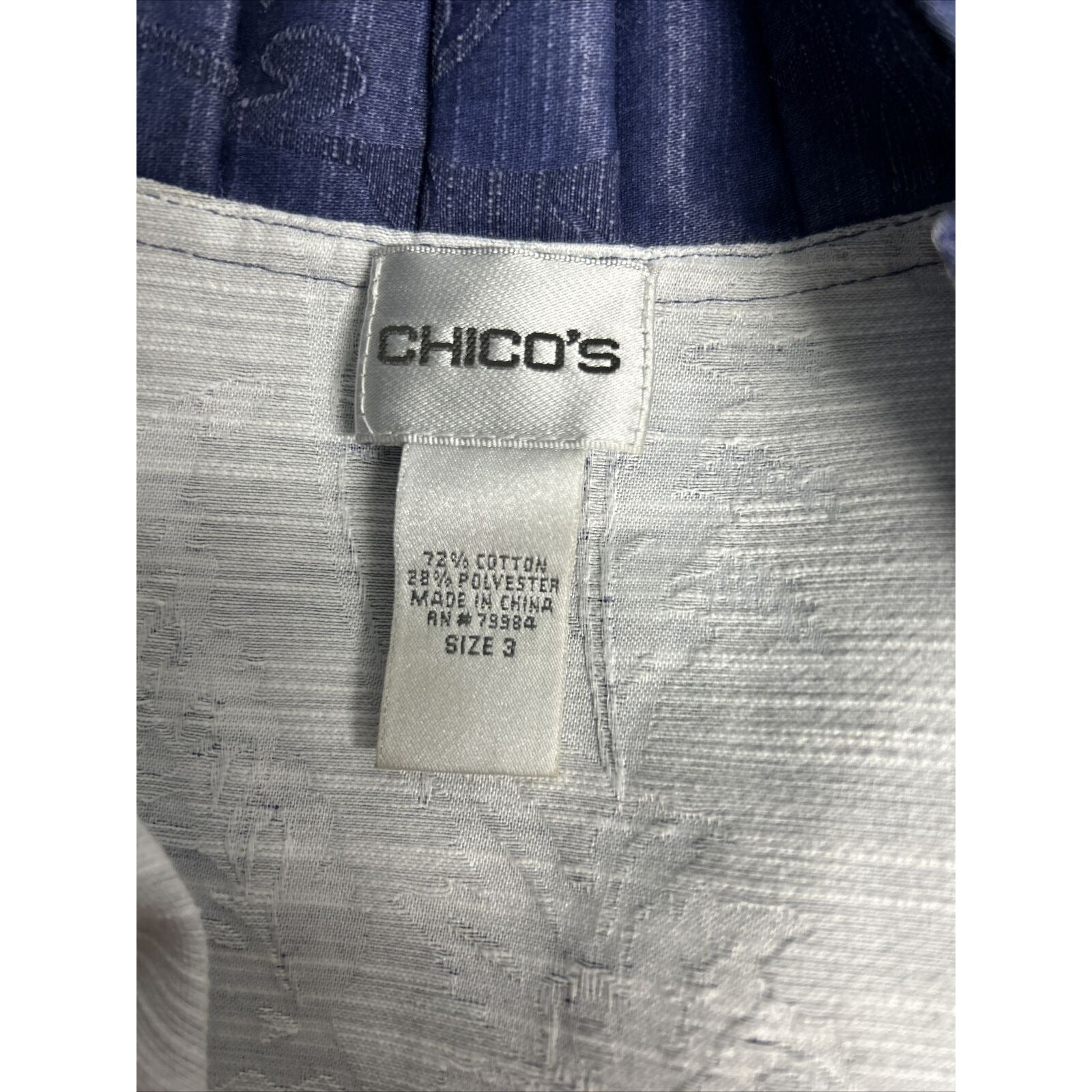 Chico's Open Front Blazer Jacket Blue Cotton Blend Floral Ruffle Women’s Size S