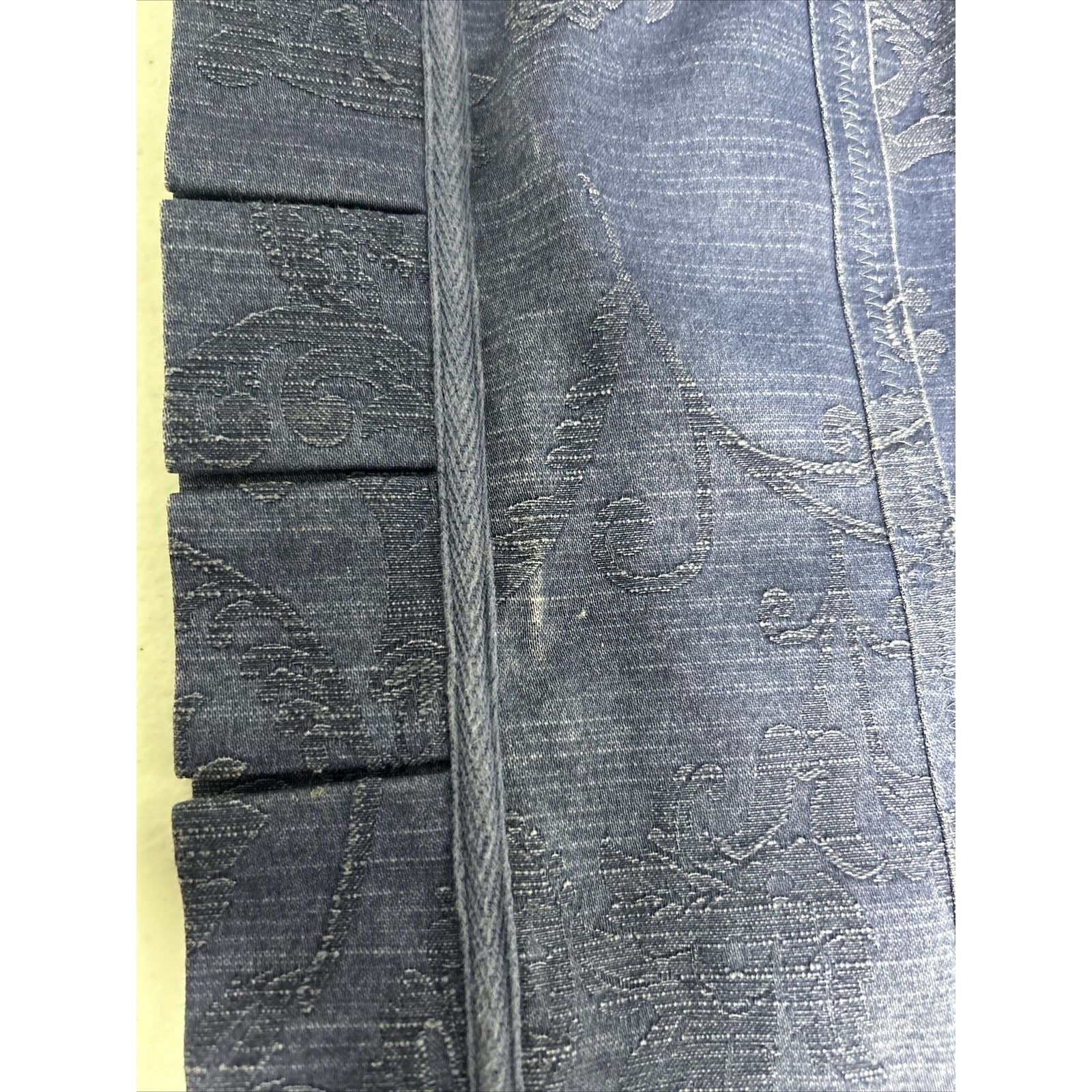 Small defect/ discoloration on front middle left side near ruffle. See photos for reference.