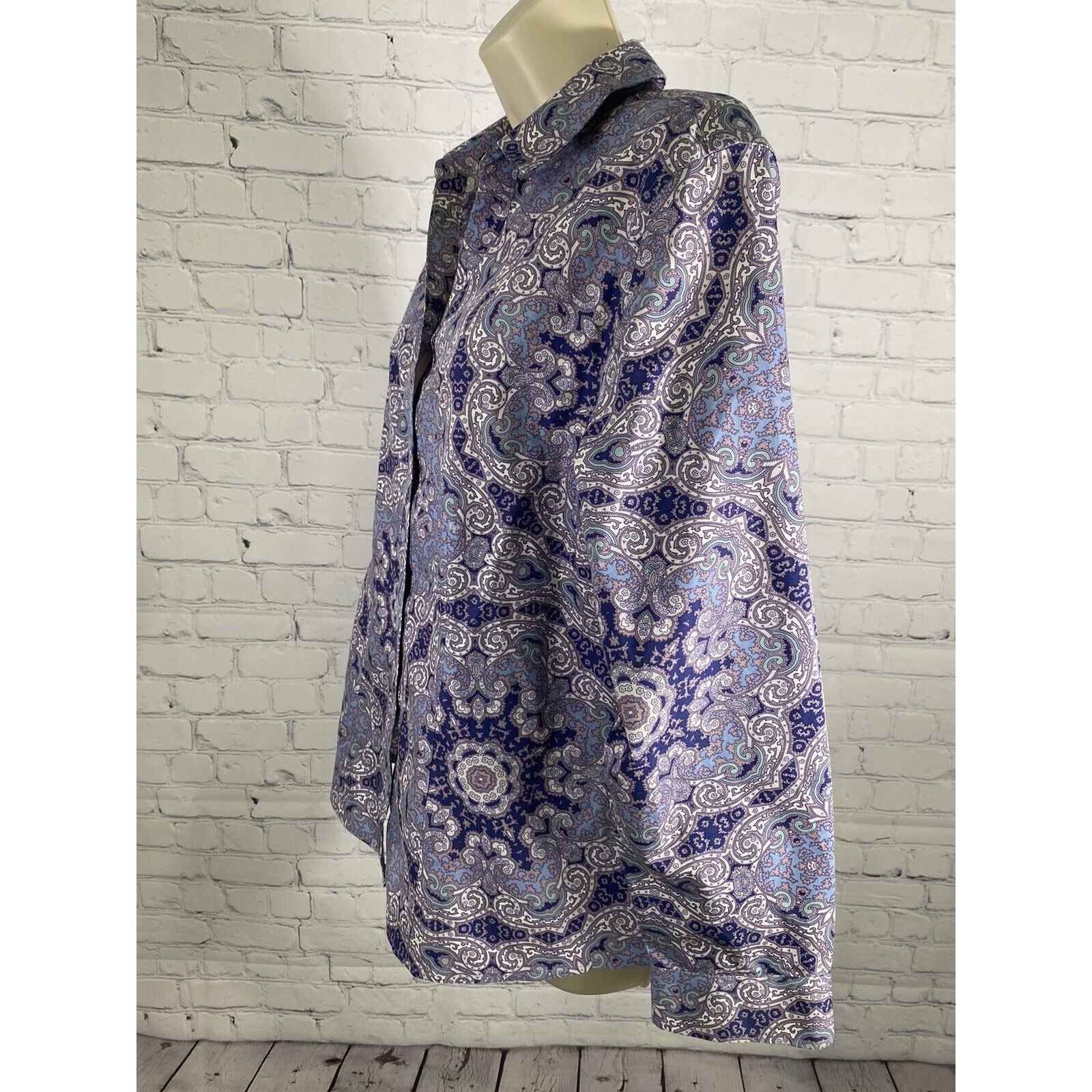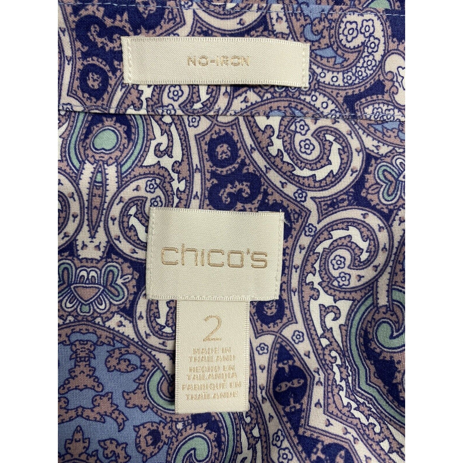 Chicos Purple White Blue Paisley Long Sleeve Collared Button Up Blouse Womens M