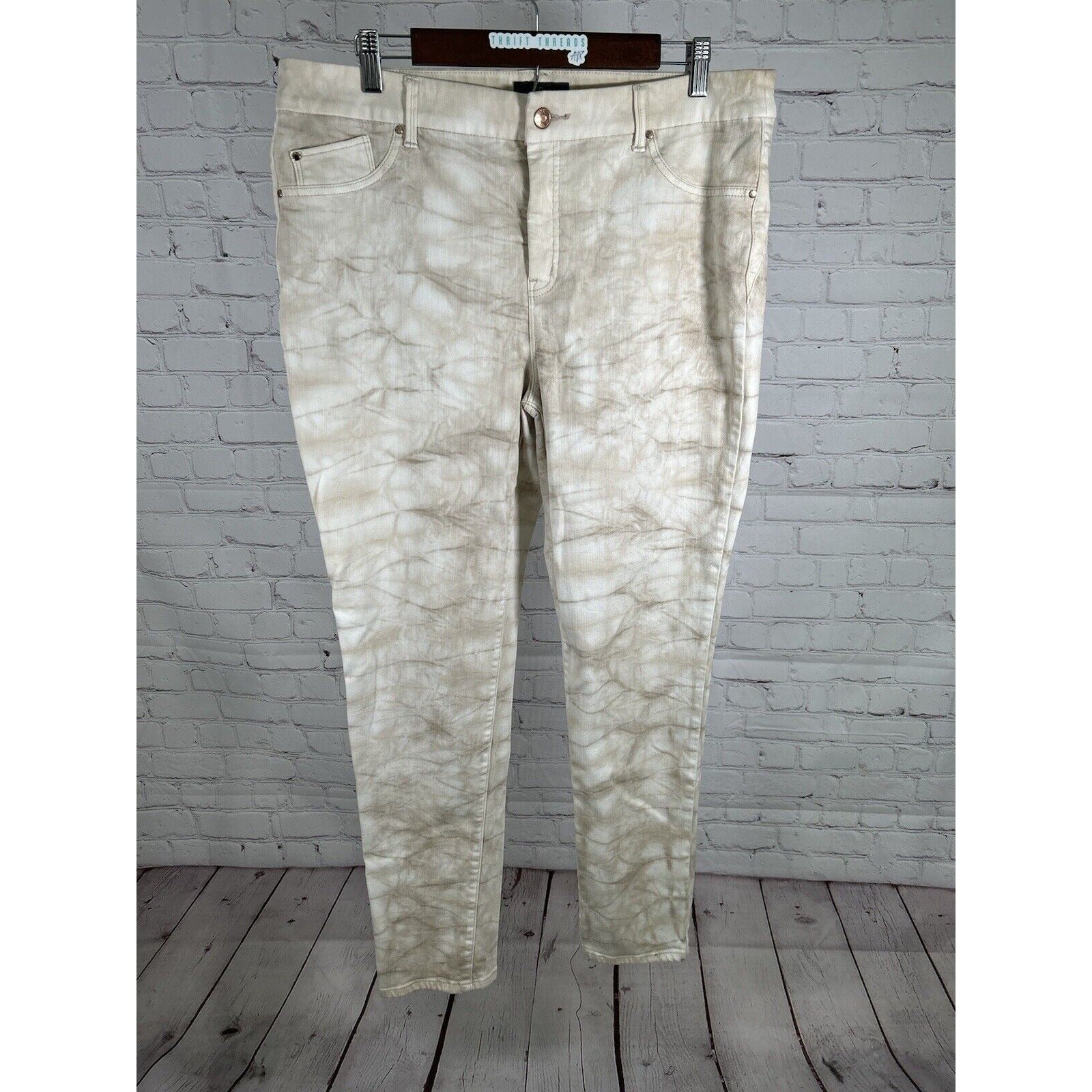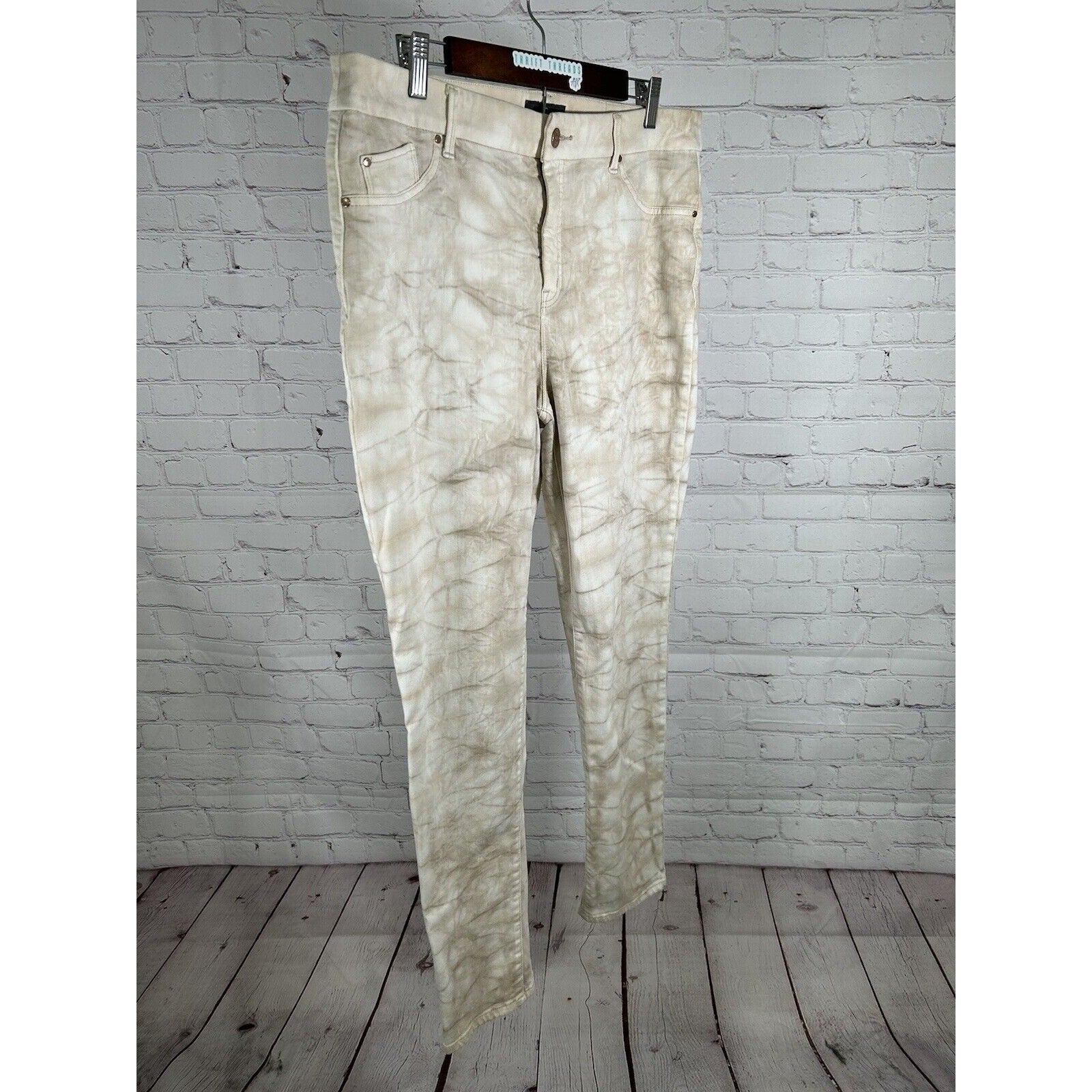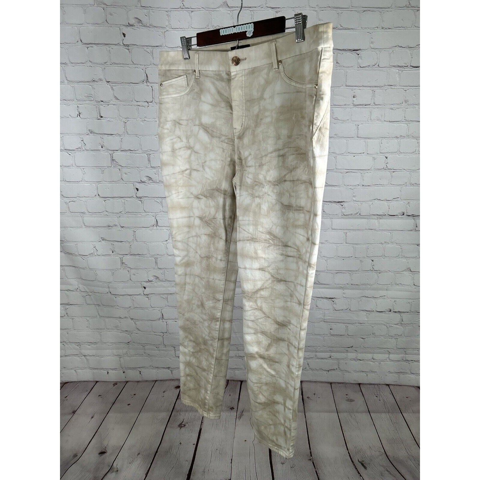 Chico's So Slimming White/Brown Tie Dye Tapered Leg Ankle Pants (35 x 30)