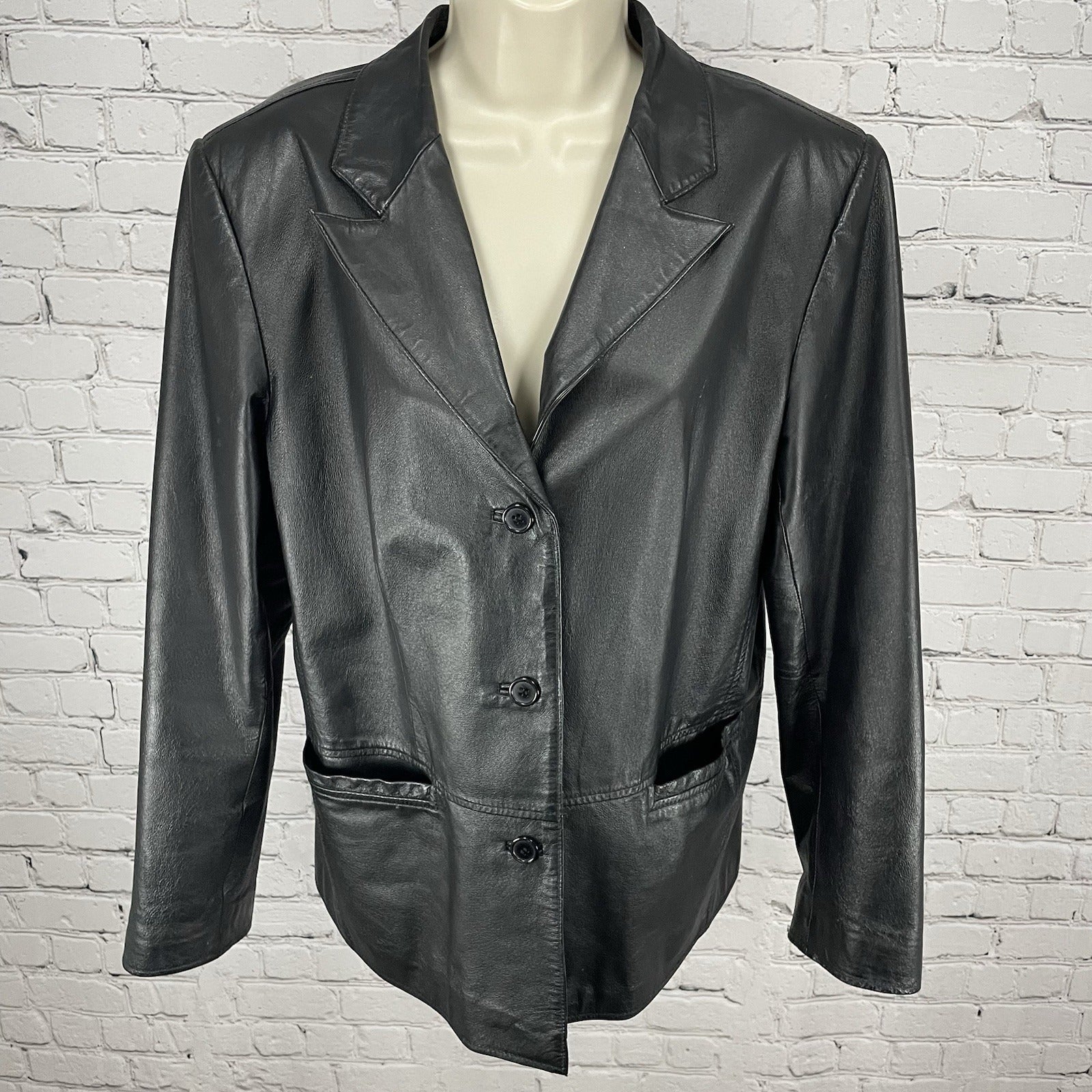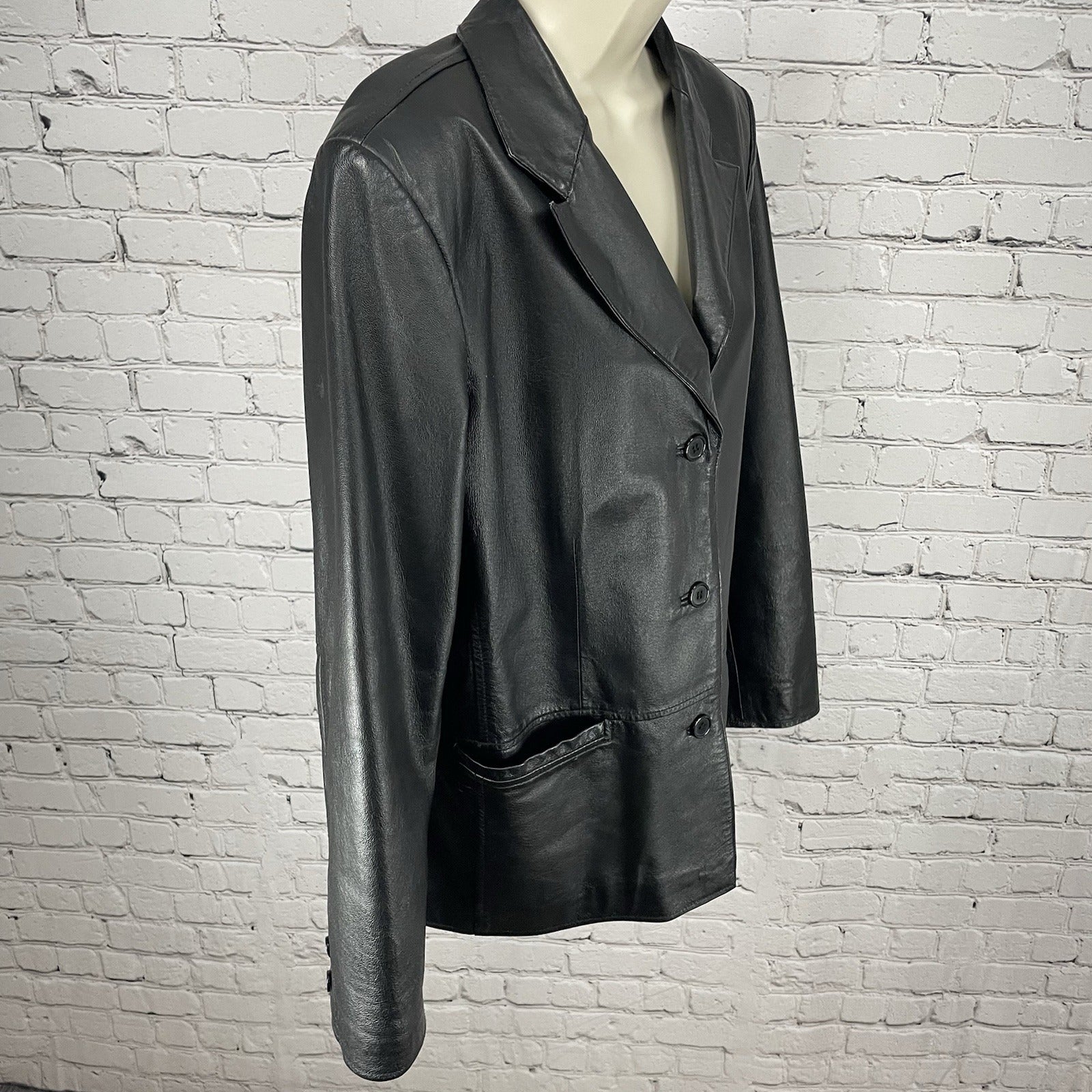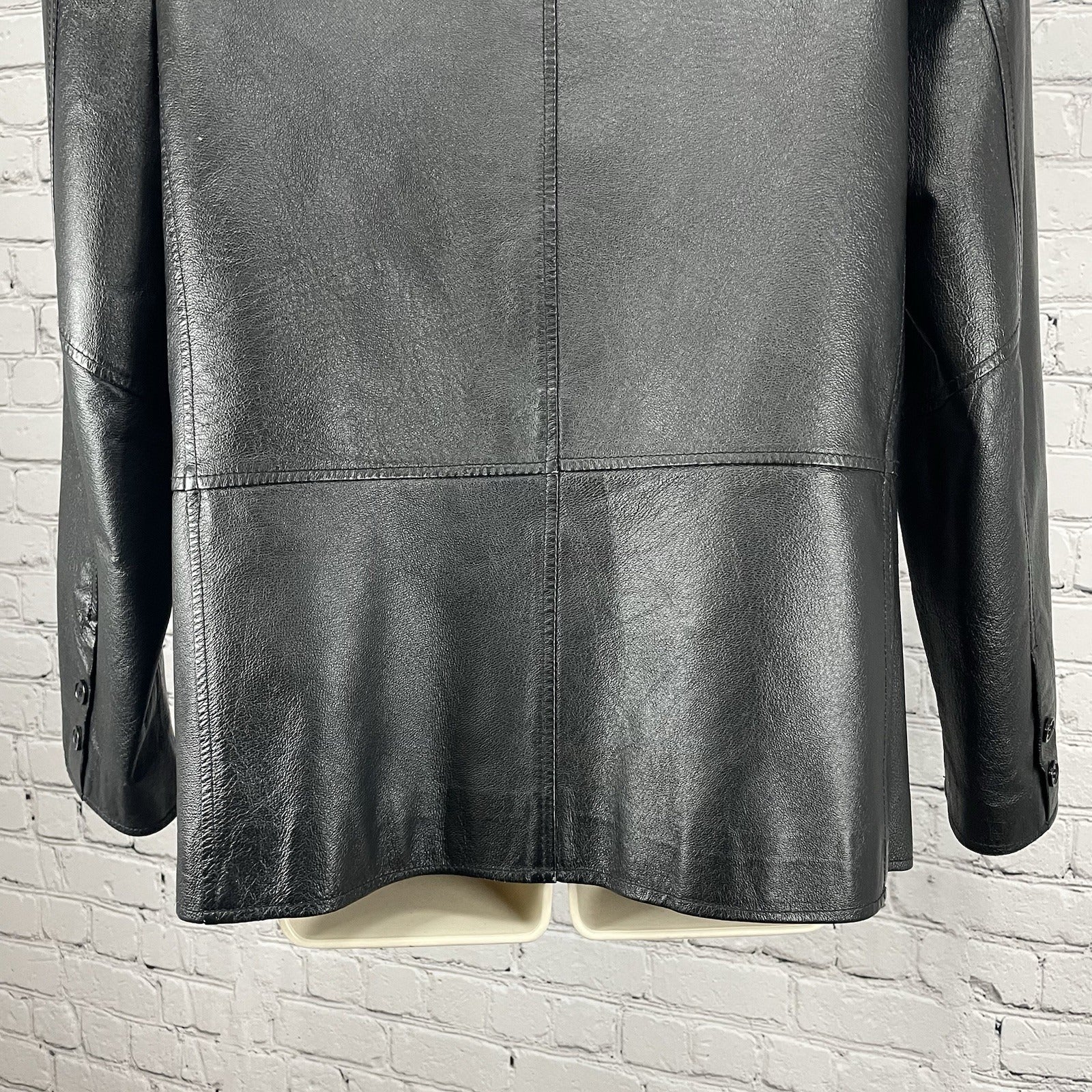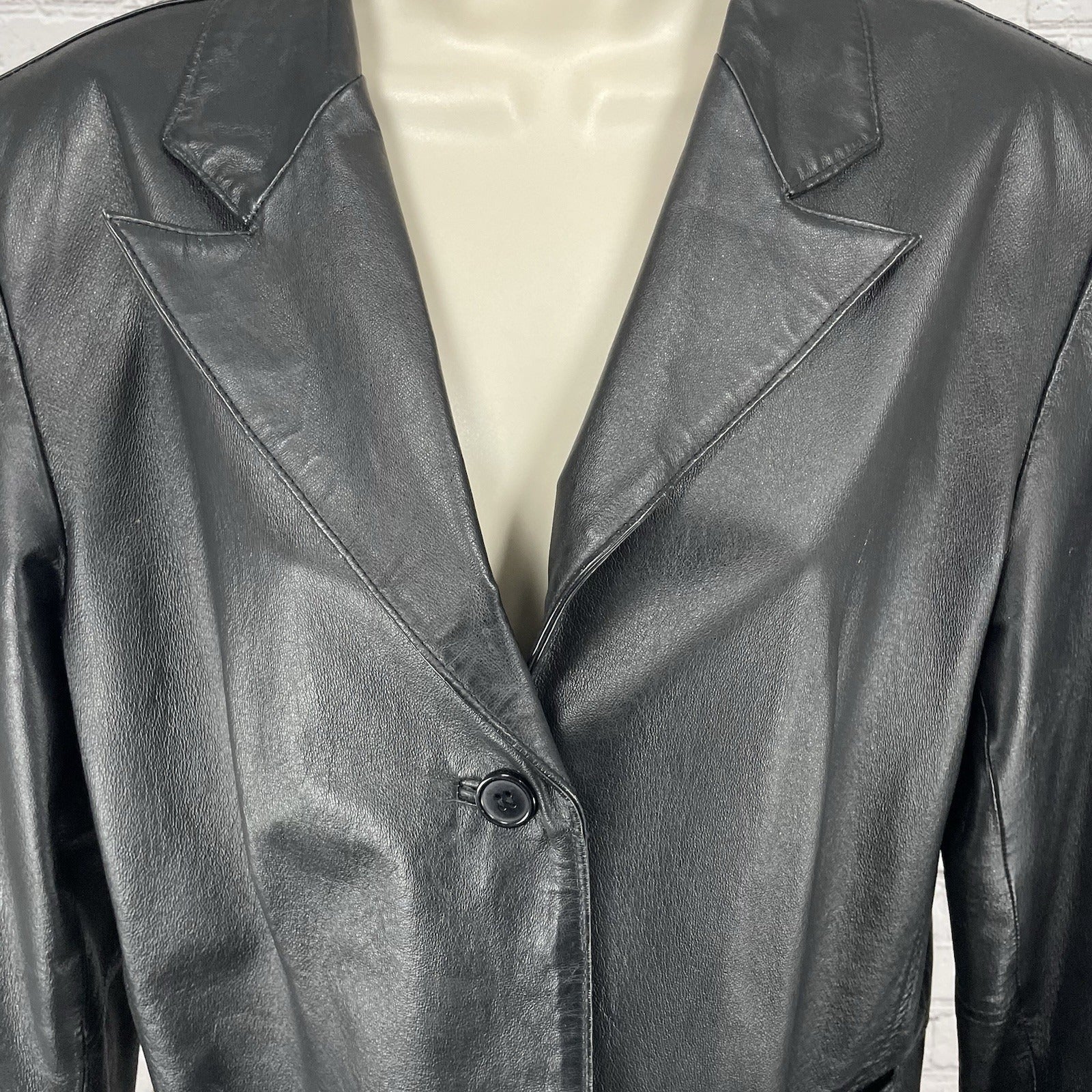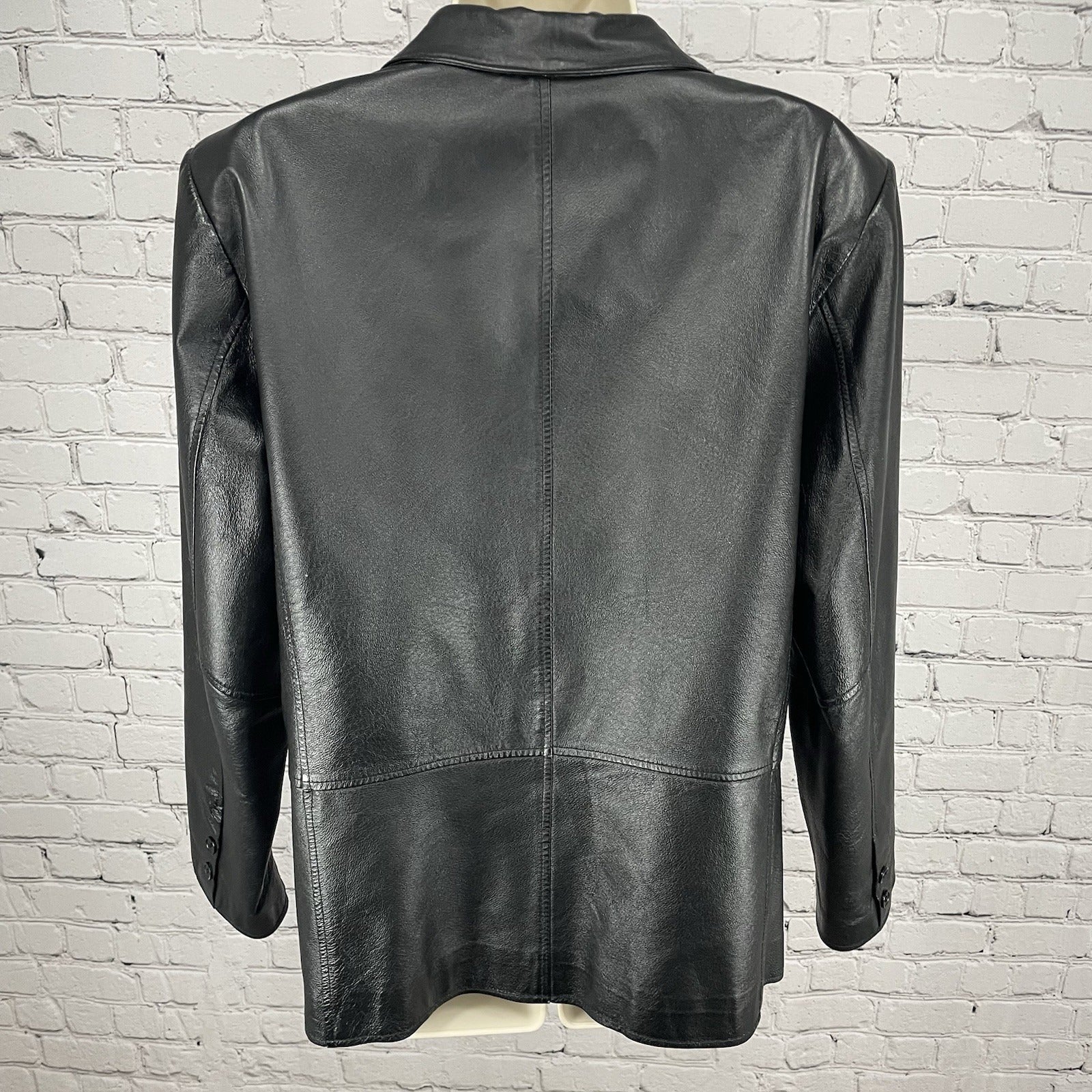 Clio Black Genuine Leather 3 Button Peak Collar Lined Jacket Size Medium M