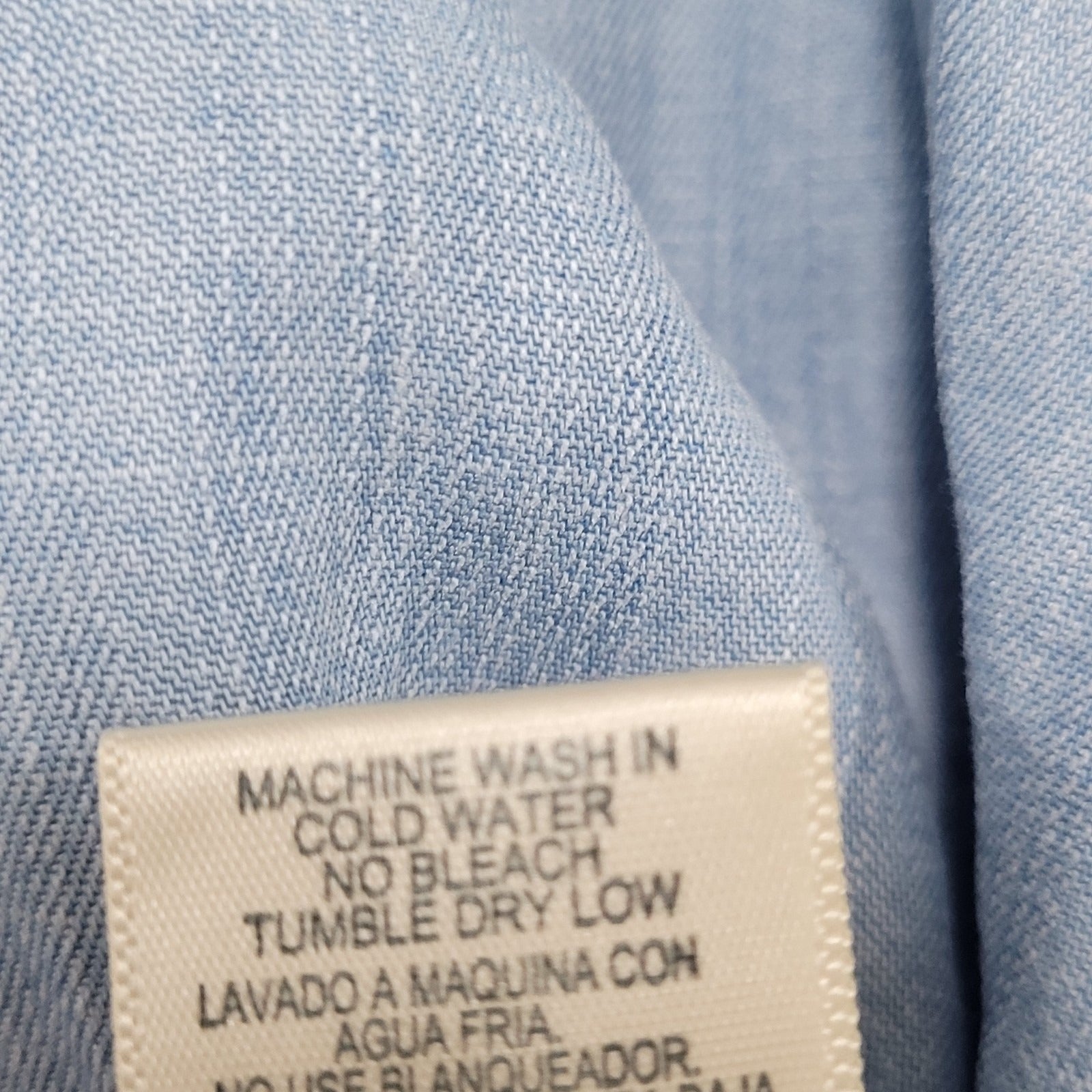 The Cloth & Stone Anthropologie Blue Chambray Short Sleeve Dress in size Large is a versatile and stylish addition to any wardrobe. Made from lightweight lyocell fabric with a chambray finish, this collared shirt dress features a button closure, pleated accents, and pockets for added convenience. Perfect for travel or casual occasions, the solid blue color adds a classic touch while the short length and short sleeves make it ideal for wearing in the summer, fall, or spring.