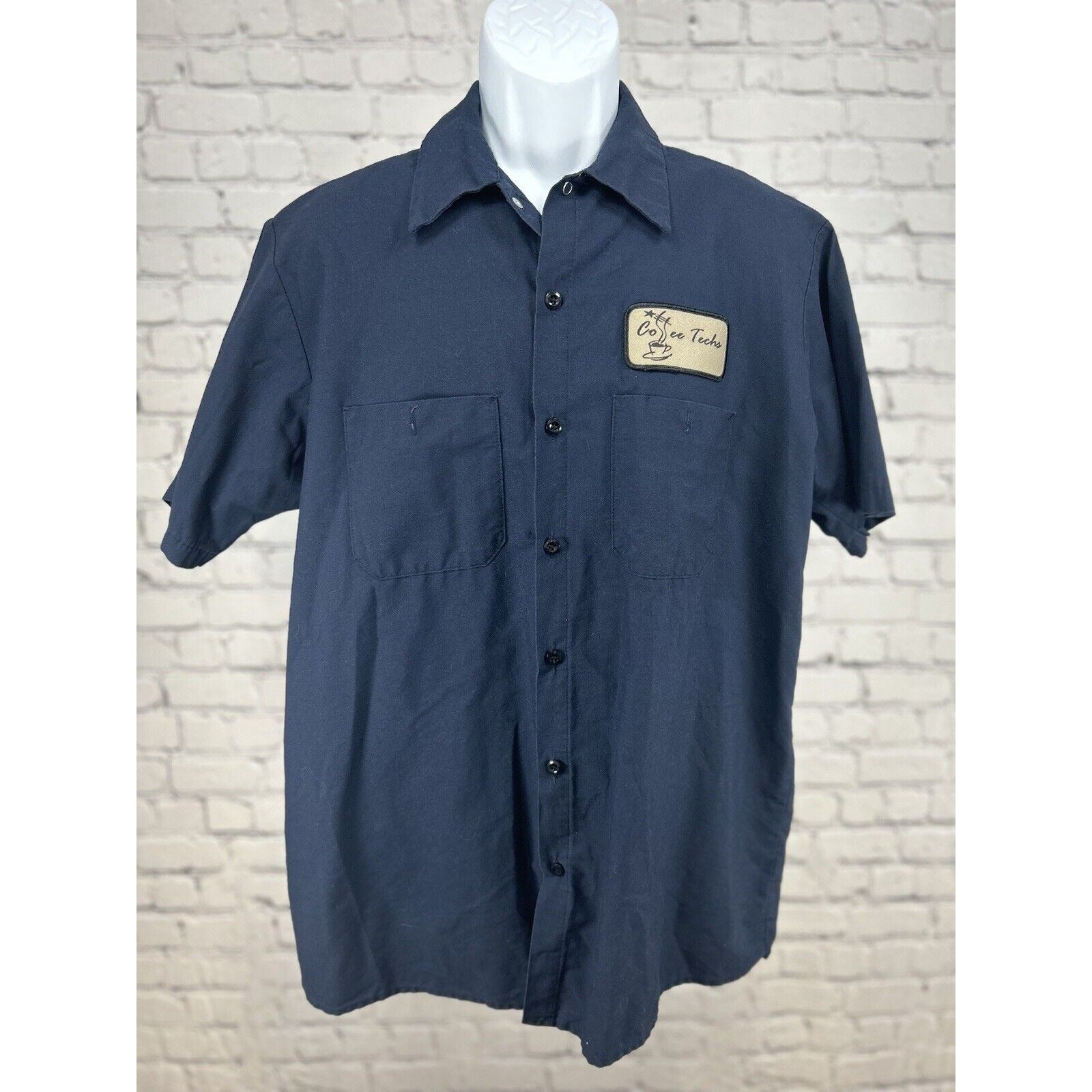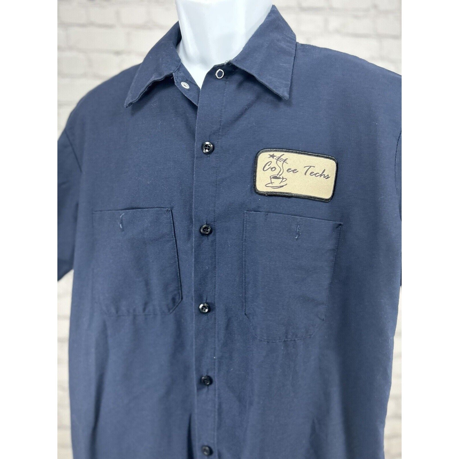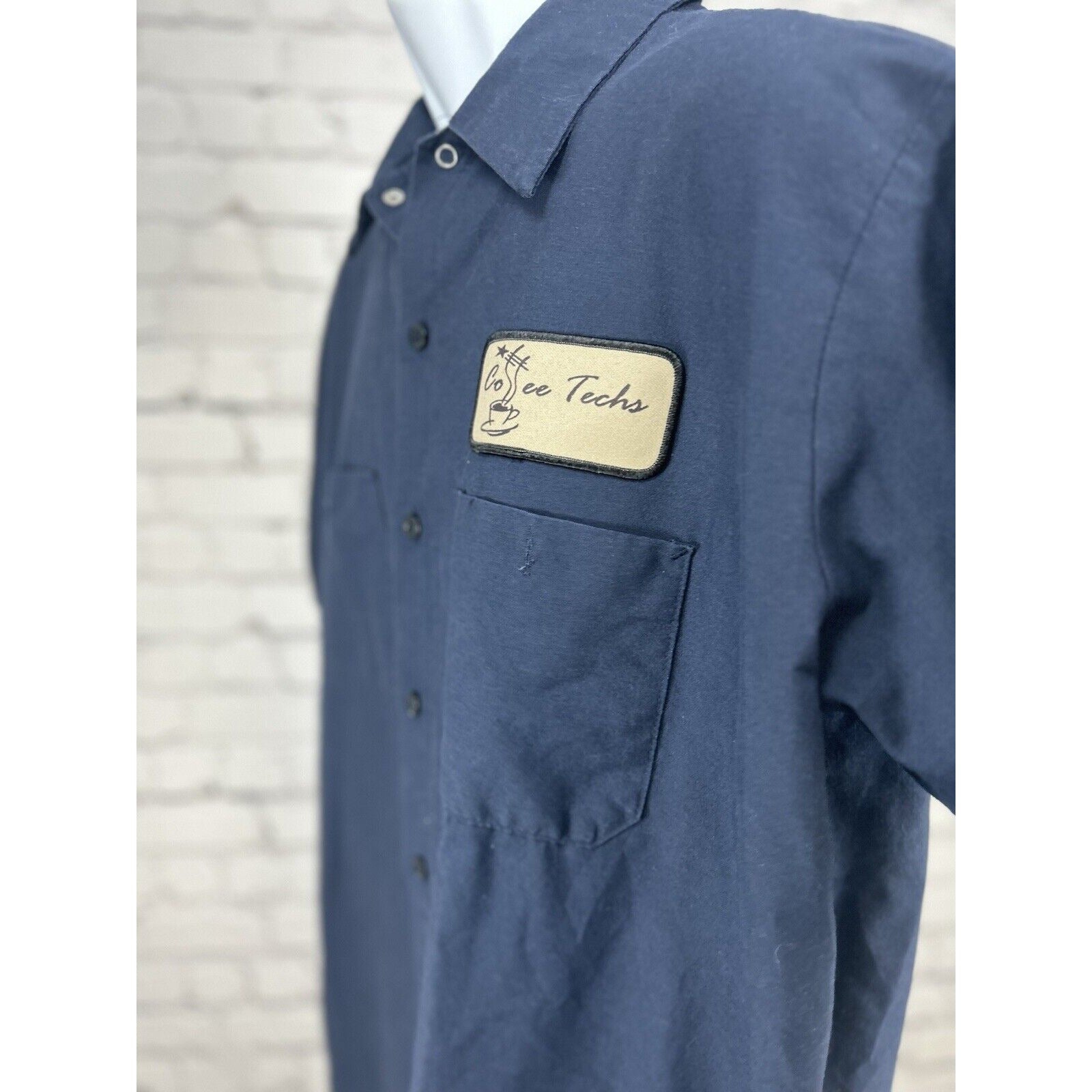 Coffee Techs Admiral Linen & Uniform Blue Button Up Collard Shirt Size Large L
