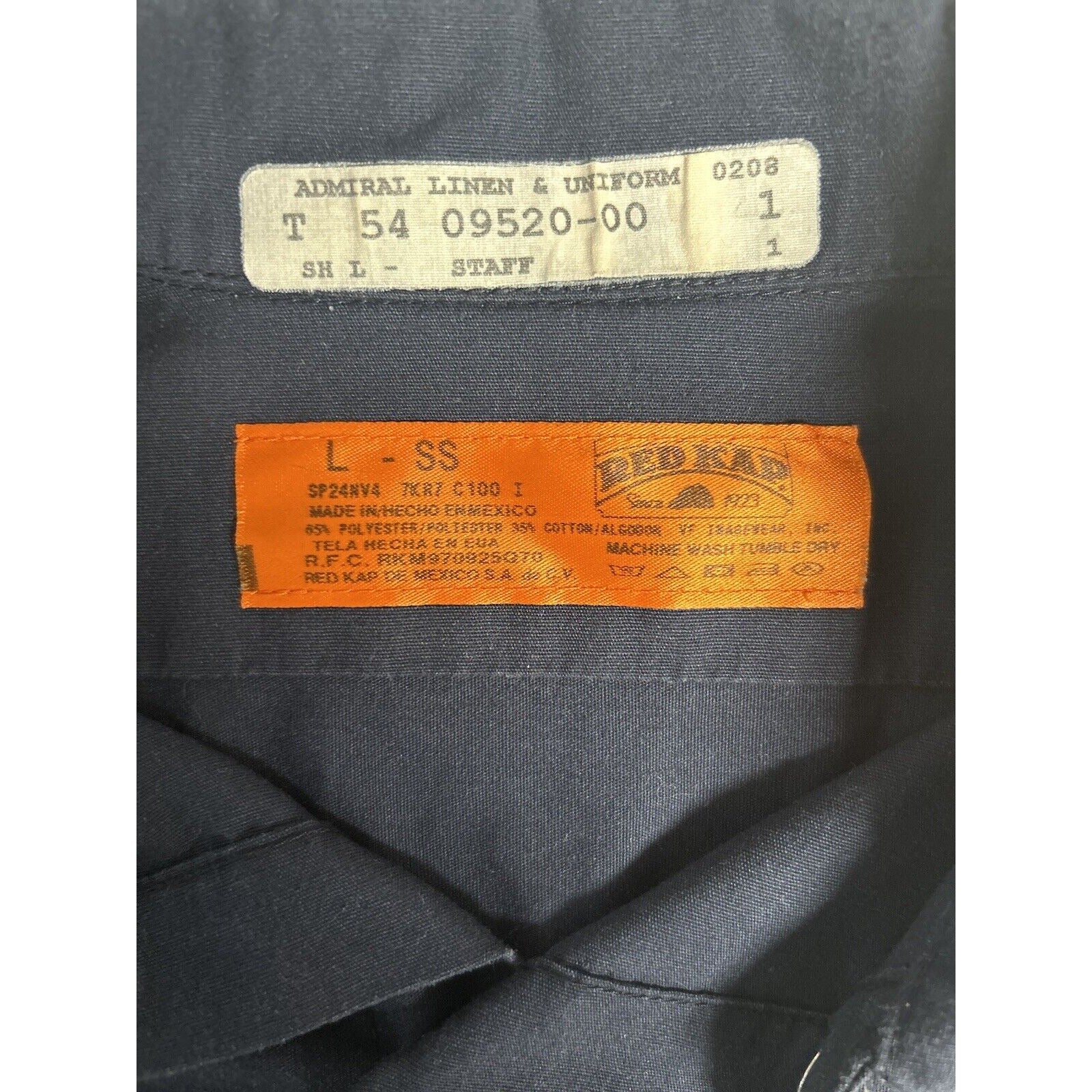This Coffee Techs Admiral Linen & Uniform Blue Button Up Collard Shirt in size Large is a versatile addition to any wardrobe. With a solid pattern and short sleeves, it's perfect for a variety of occasions, including travel, parties, casual outings, workwear, and business meetings. The shirt features a collared neckline with a band style and a button closure, as well as accents and a fit that add a touch of nature, college, and preppy style.