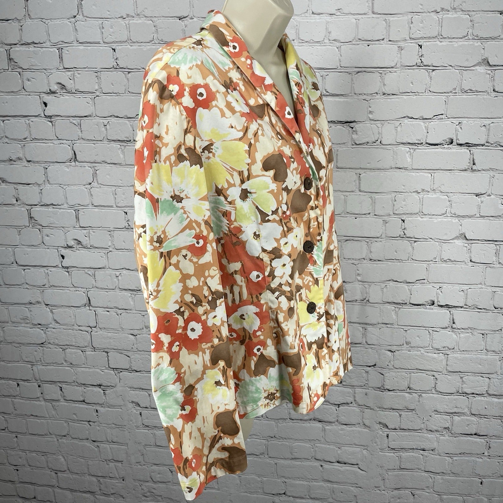 Coldwater Creek Floral Cotton Lightweight 3 Button Blazer Jacket Size Large L