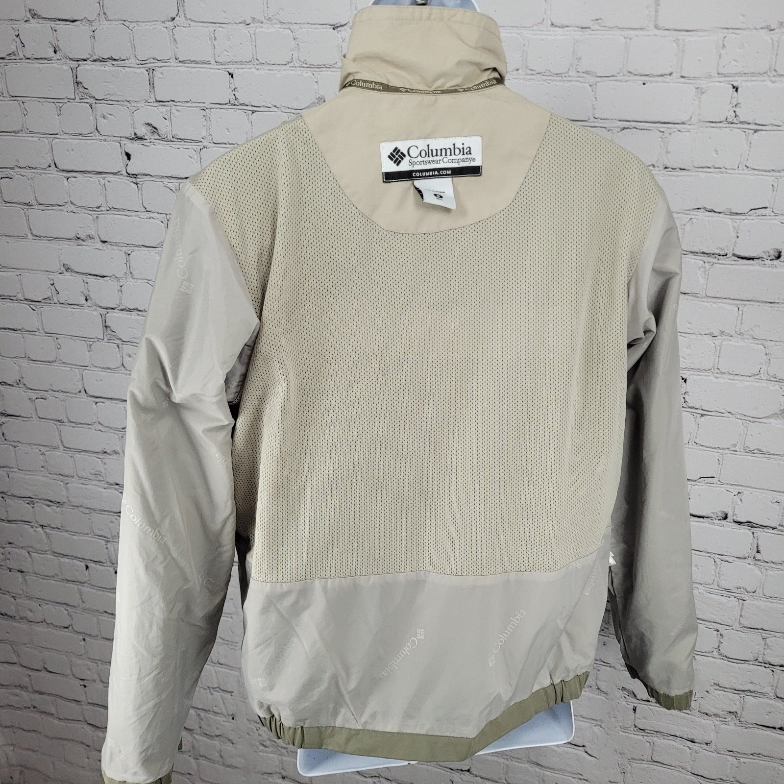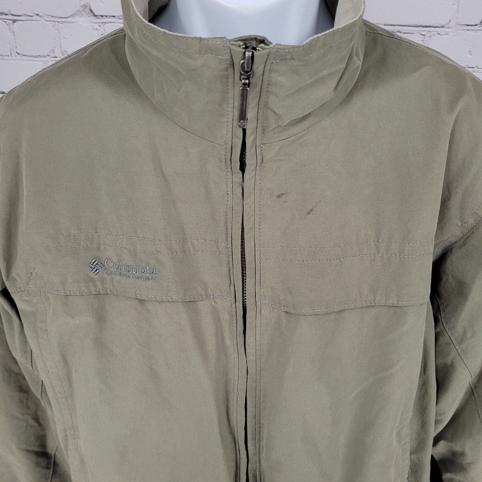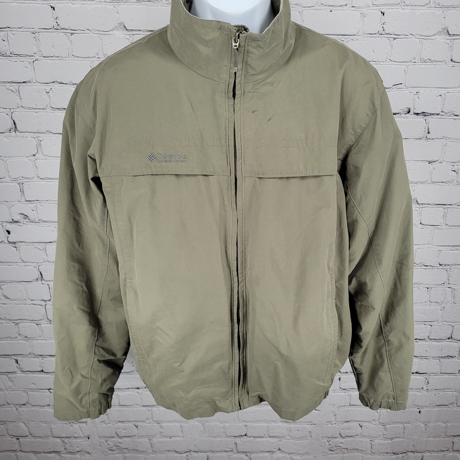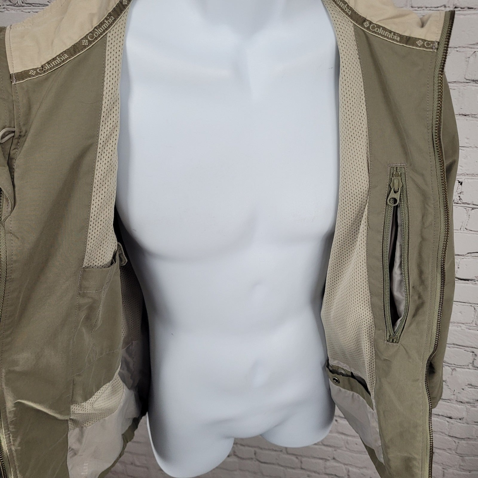Columbia Green Khaki Mesh Lined Zipped Pockets Windbreaker Jacket Size Medium M
