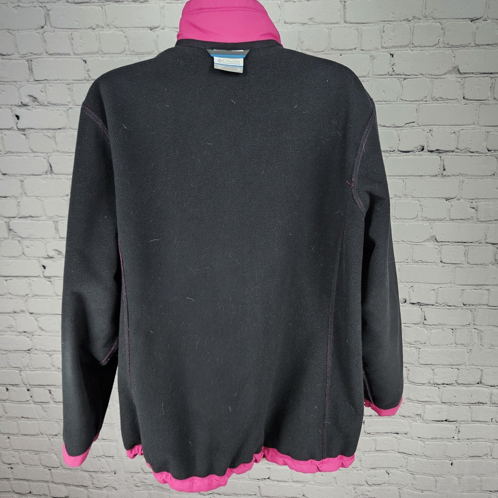 The Columbia Pink Breast Cancer Logo Fleece Lined Full Zip Mock Neck Jacket in size 1X is a stylish and comfortable women's jacket. Made with fleece lining for added warmth, this jacket features a full zip closure, mock neck collar, and the signature Columbia logo on the front. The pink color and breast cancer logo accent make it a chic and supportive choice for women looking to stay cozy and show their support for breast cancer awareness.