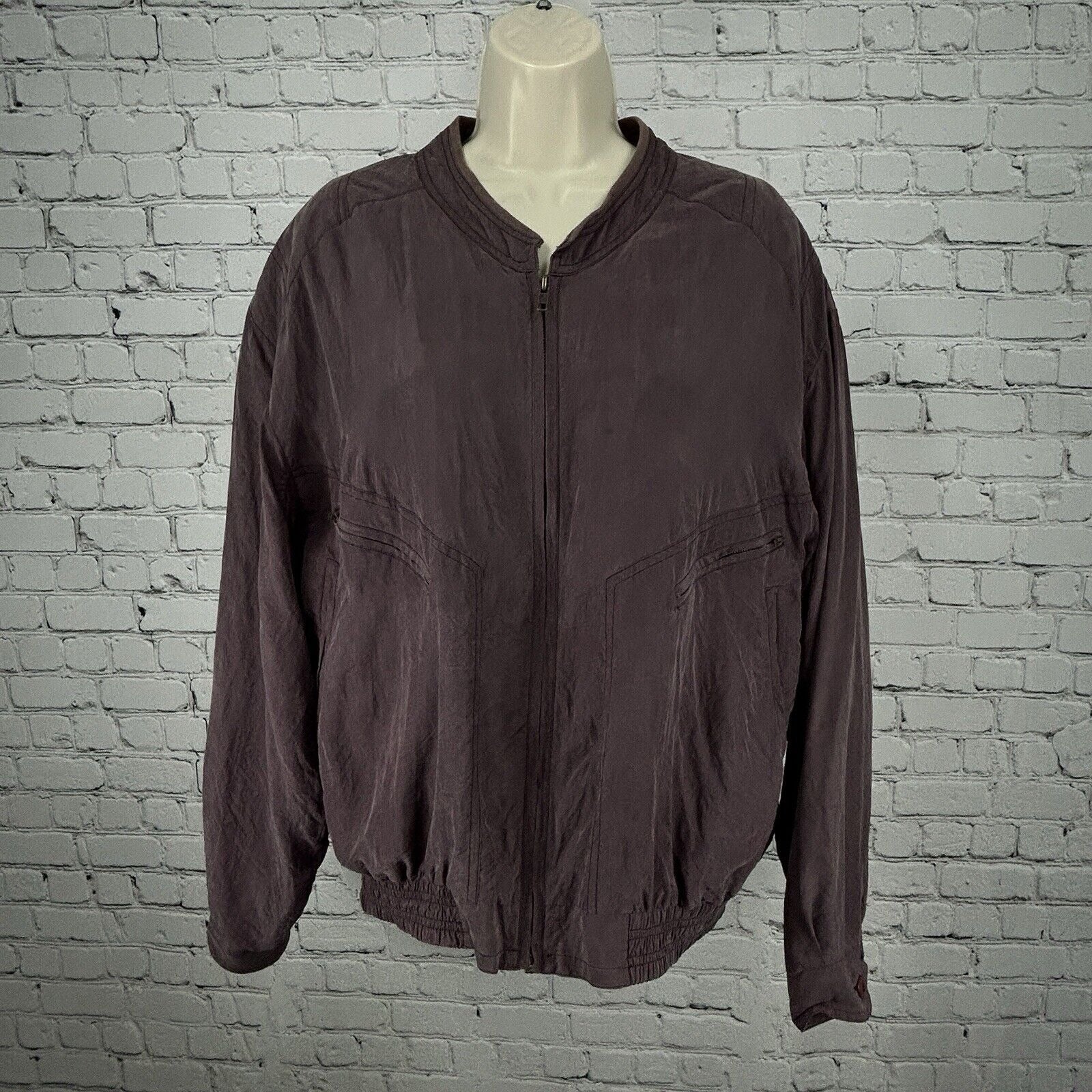 Commander Purple 100% Silk Zip Up Softshell Bomber Jacket Women’s Size Large L