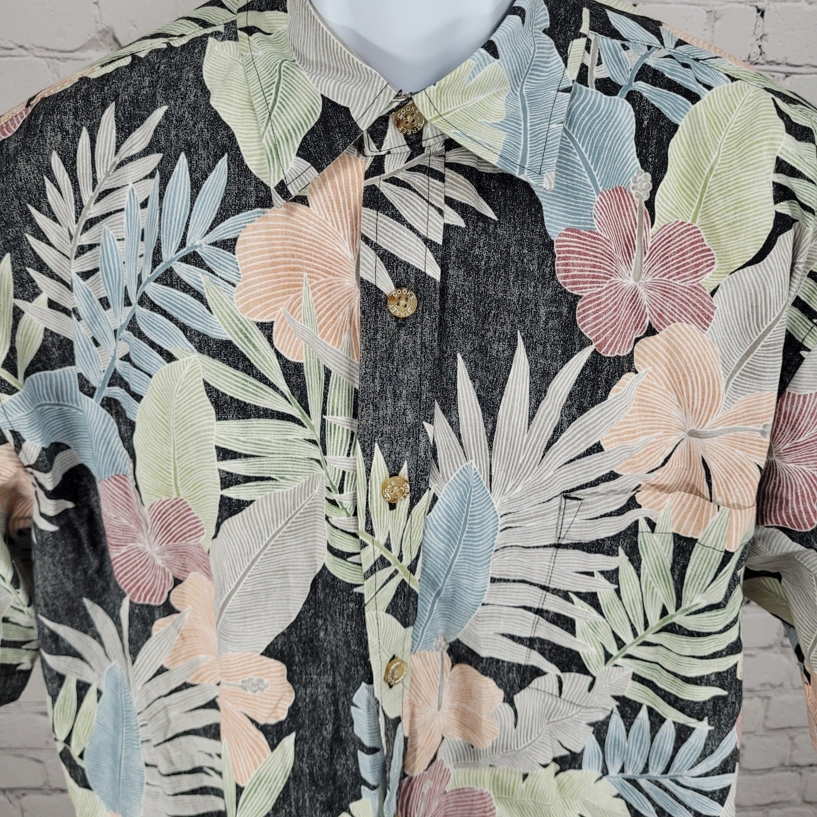 Cooke Street Honolulu Tropical Floral Hawaiian Button Up Cruise Shirt Large L