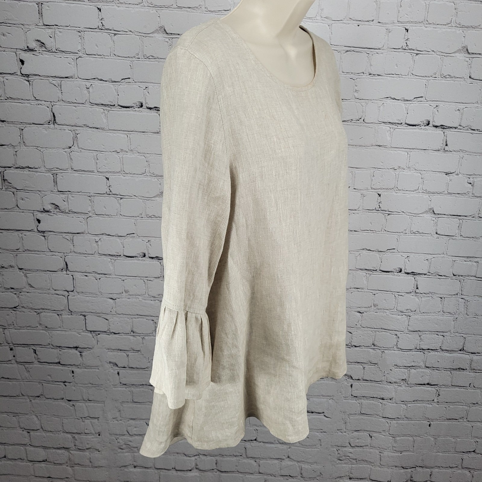 Crown Linen Beige 100% European Linen 3/4 Bell Sleeve Tunic Top Size Small S