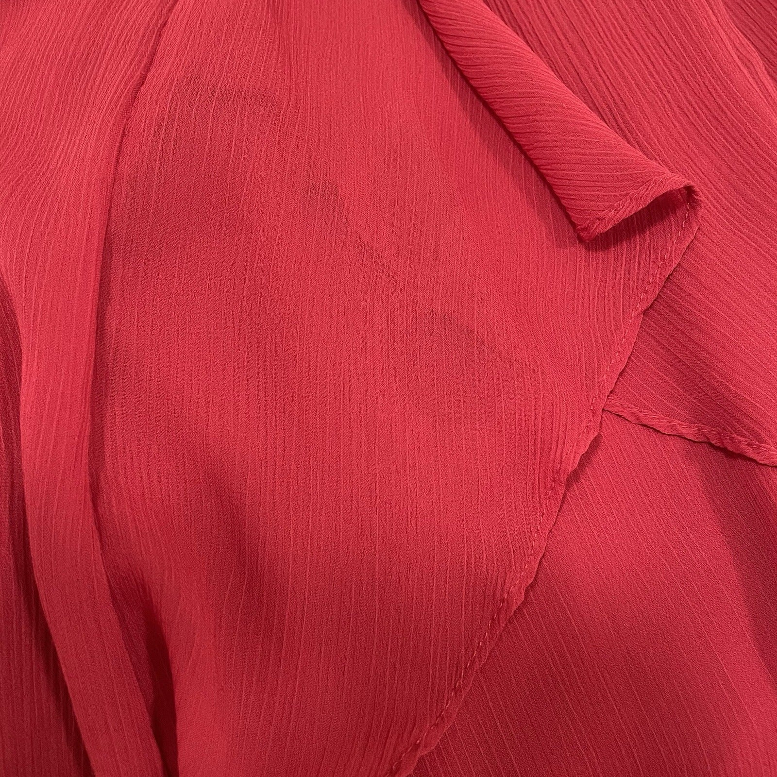 The dress is a short fit and flare style, with a solid red color that is sure to make a statement. Hand wash only garment care is recommended. This dress is a regular size 2.