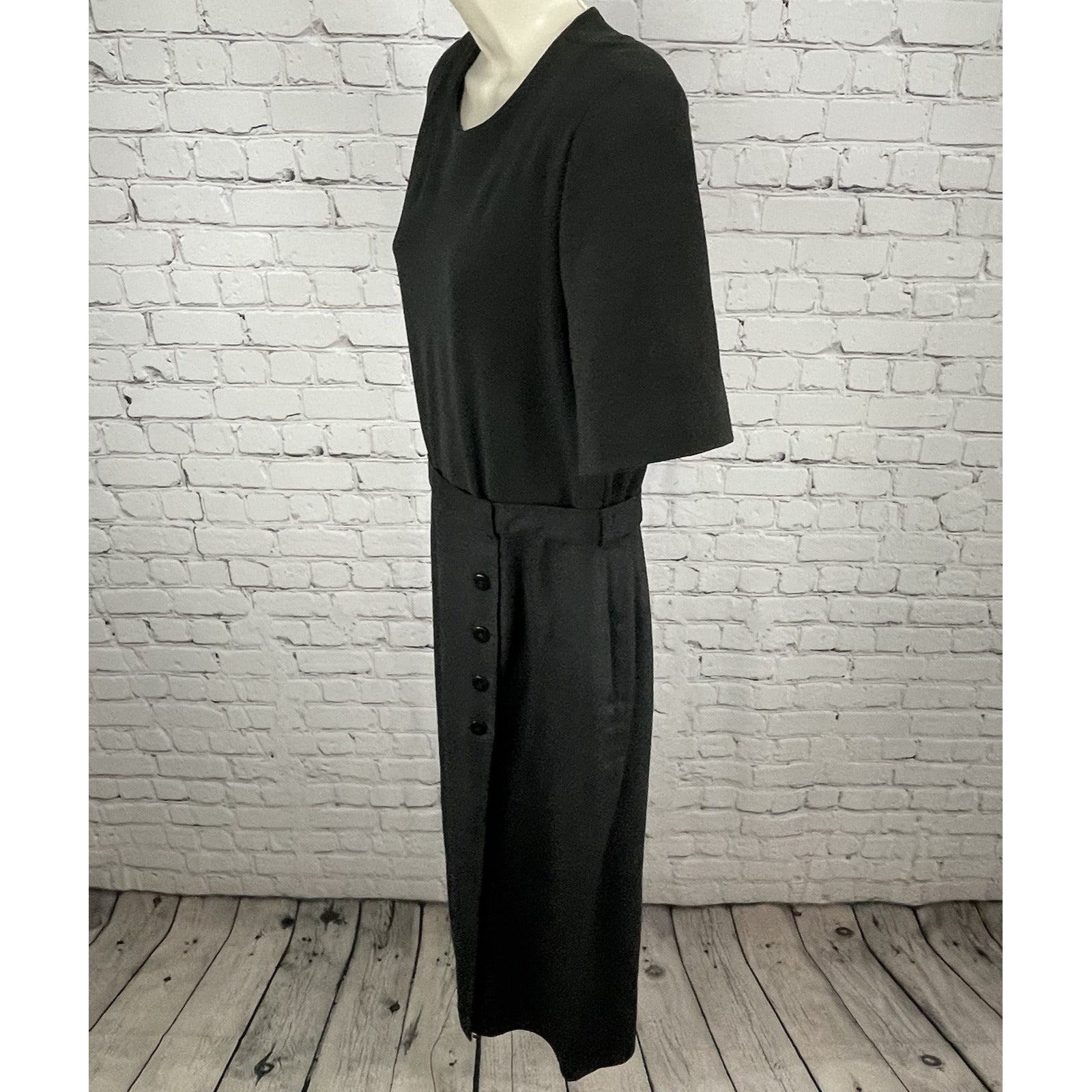 David Warren Black Linen Blend Buttoned Lined Zipped Sheath Midi Dress Size 10