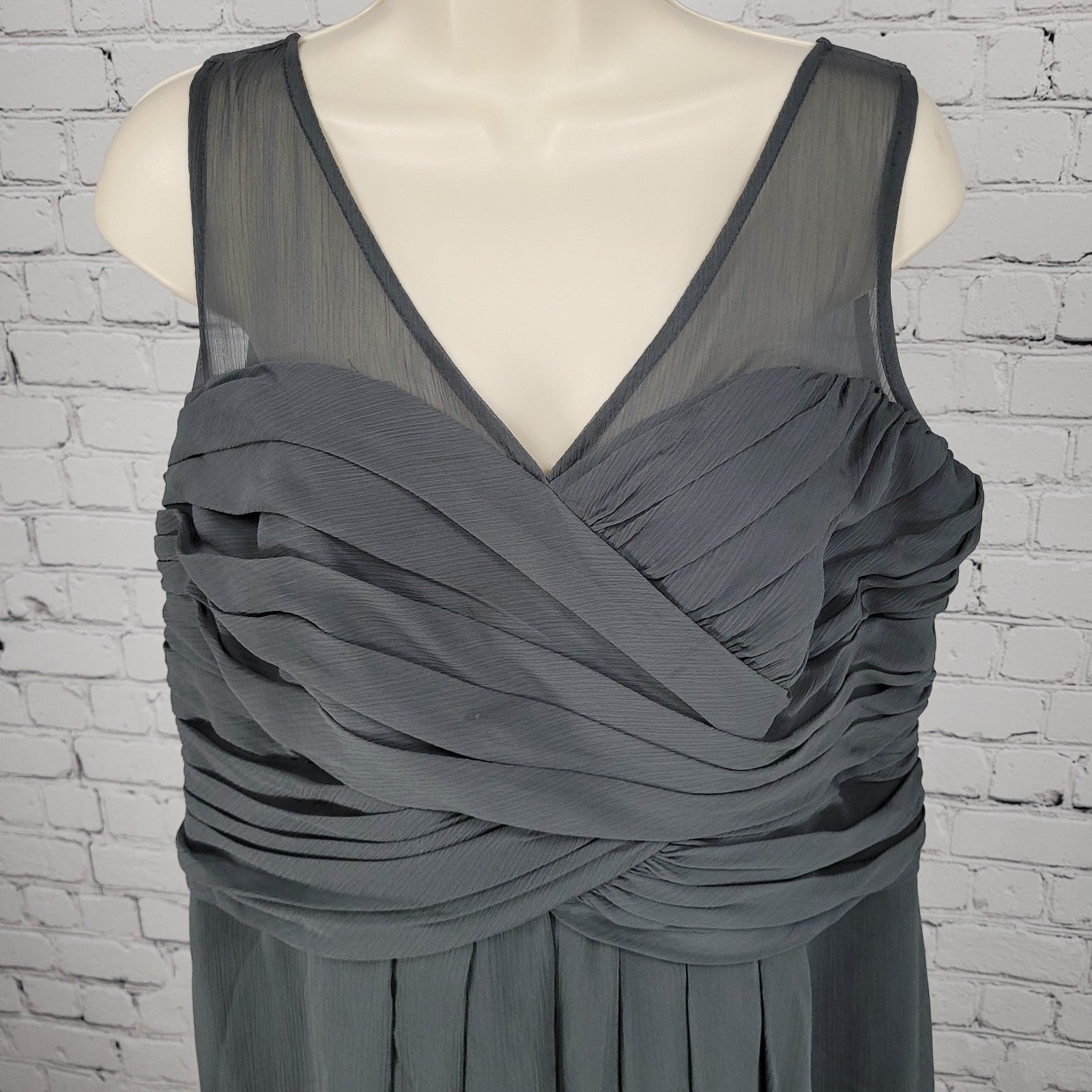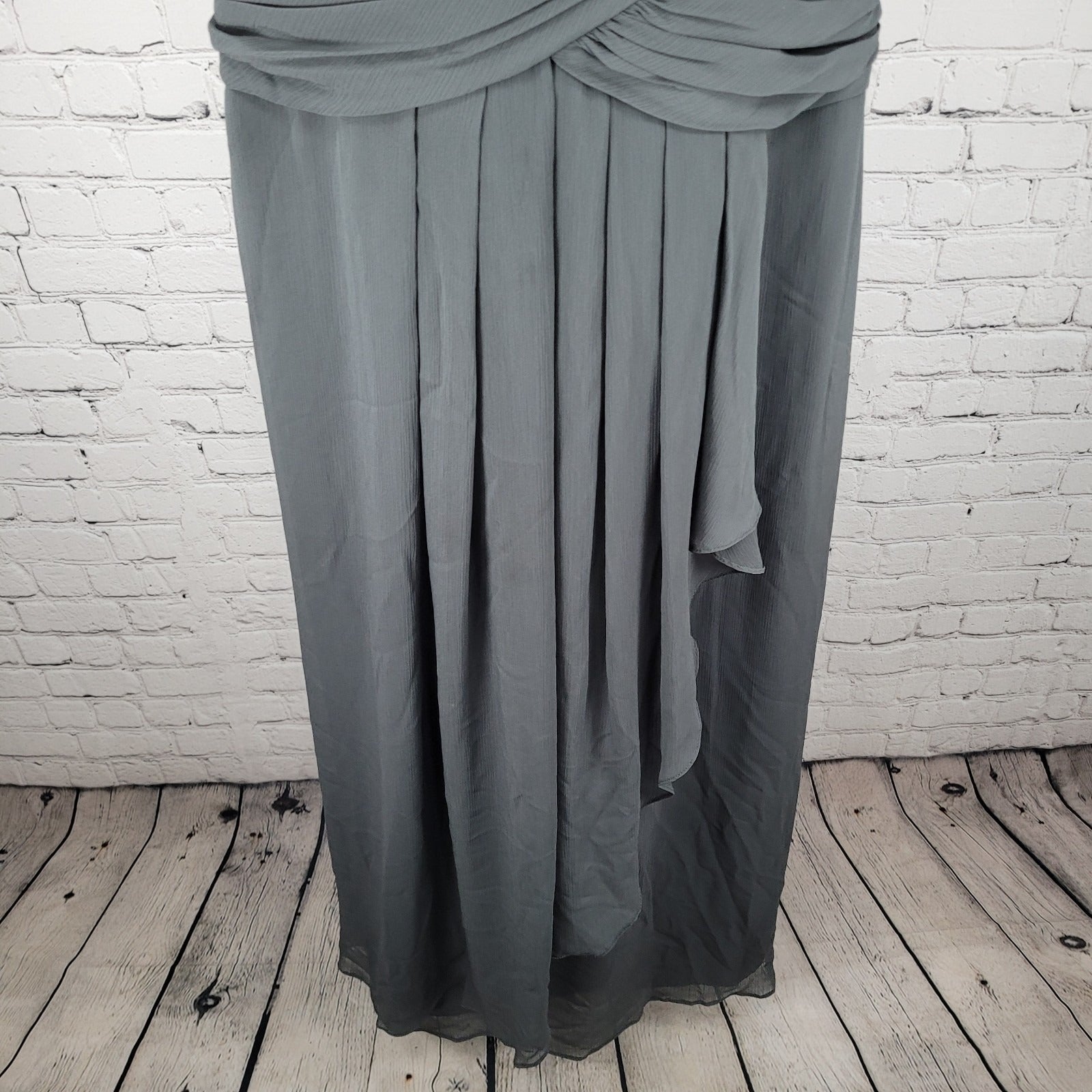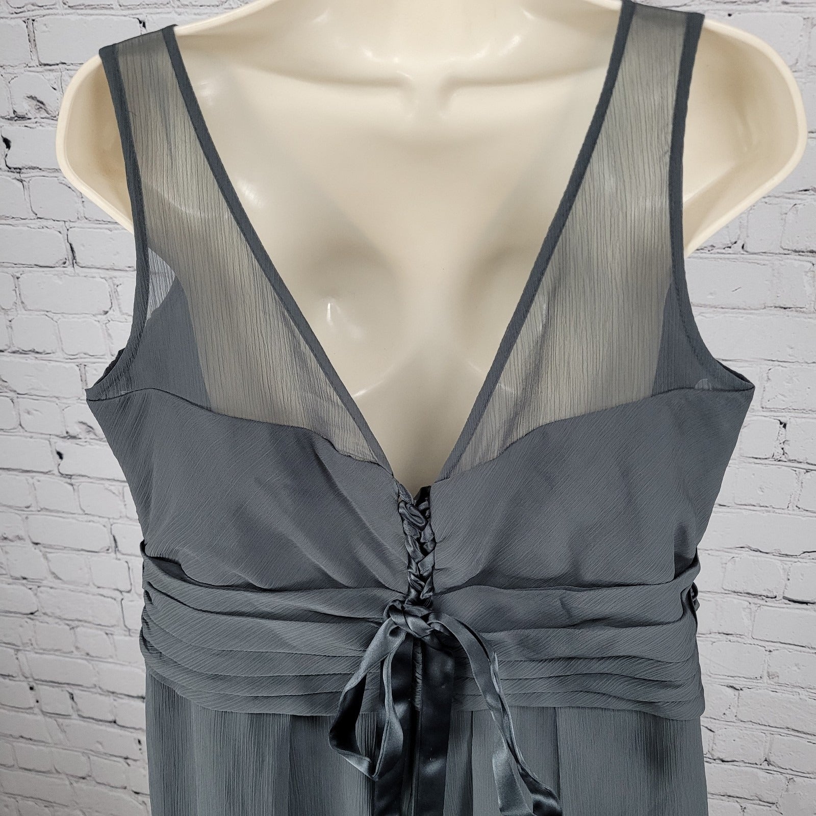 David's Bridal Graphite Grey Chiffon Pleated Back Tie Bridesmaid Dress Size 16
