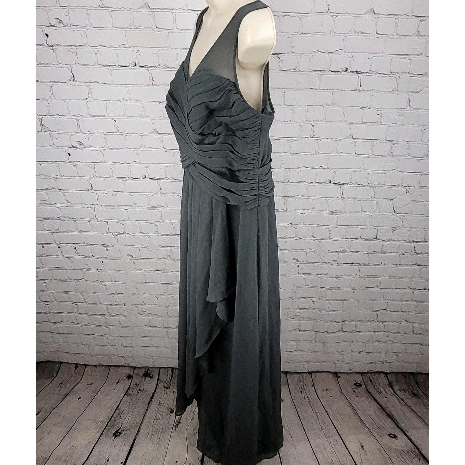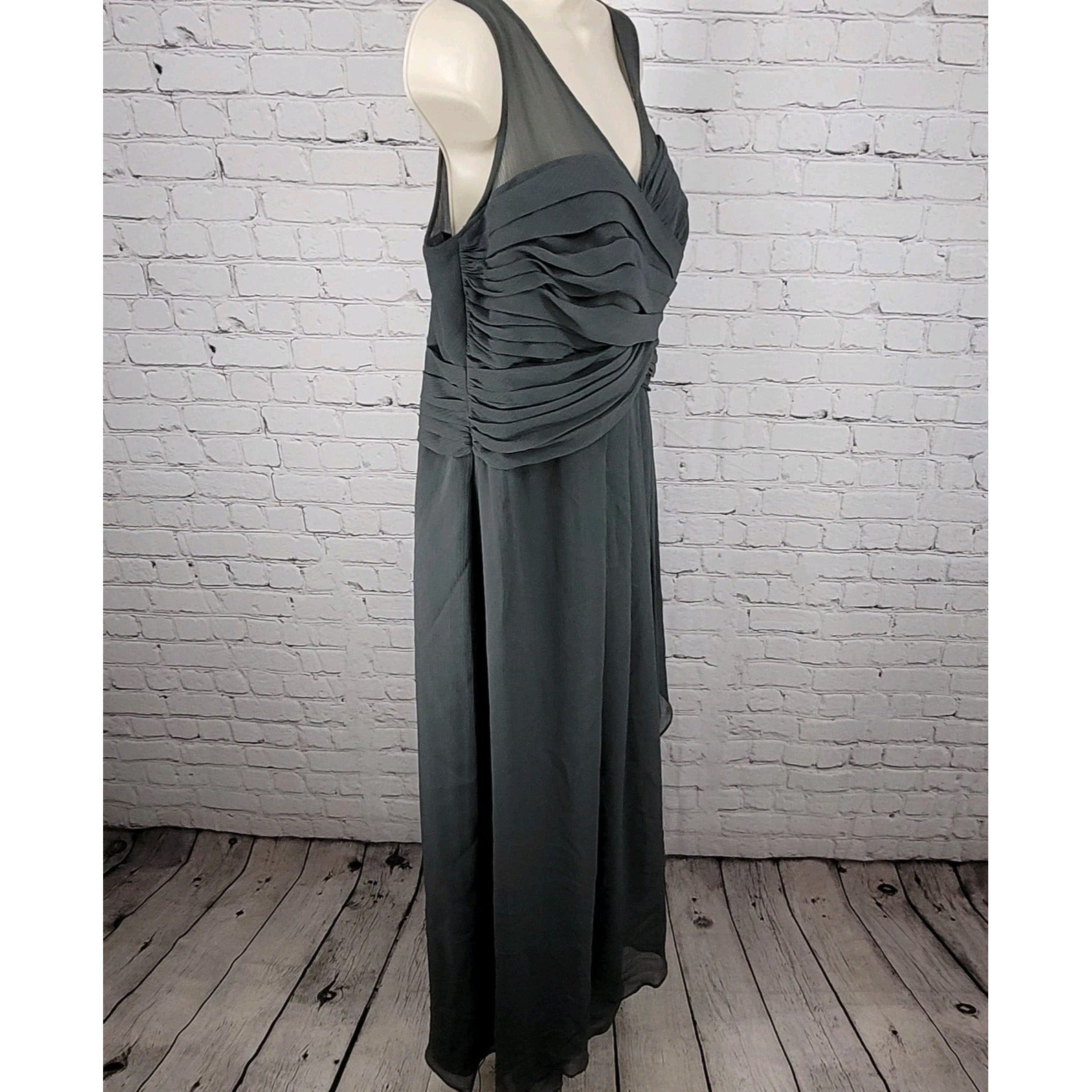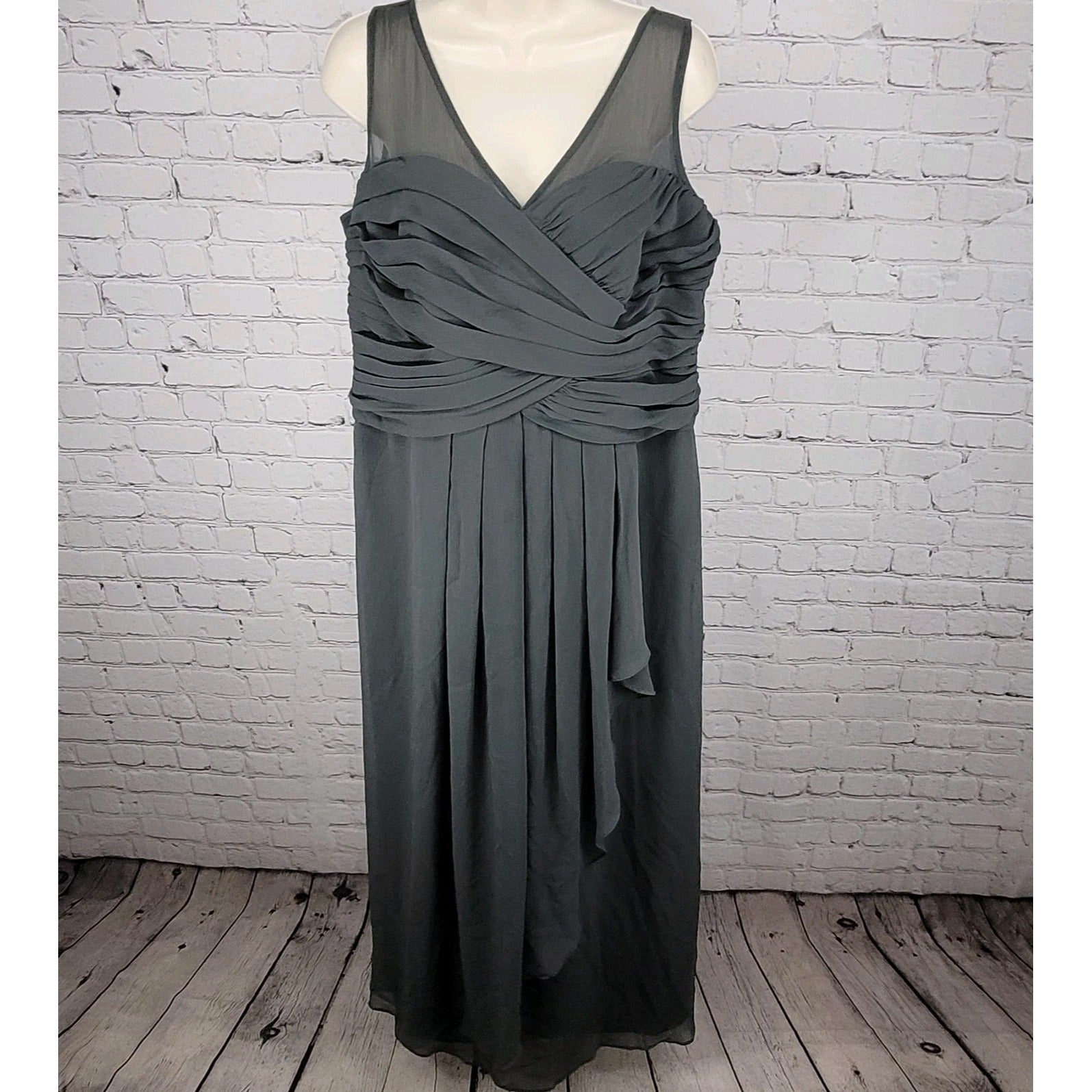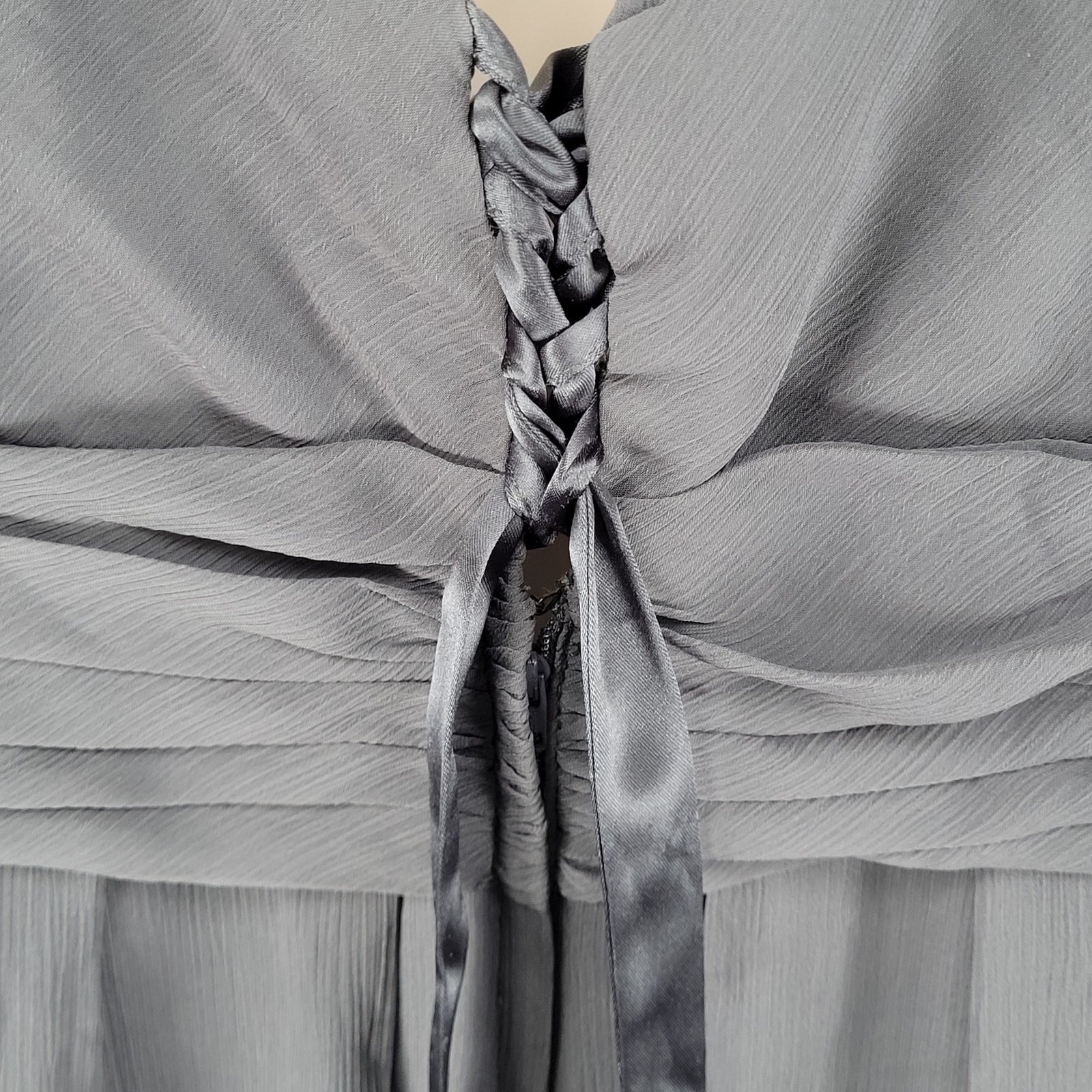 David's Bridal Graphite Grey Chiffon Pleated Back Tie Bridesmaid Dress Size 16