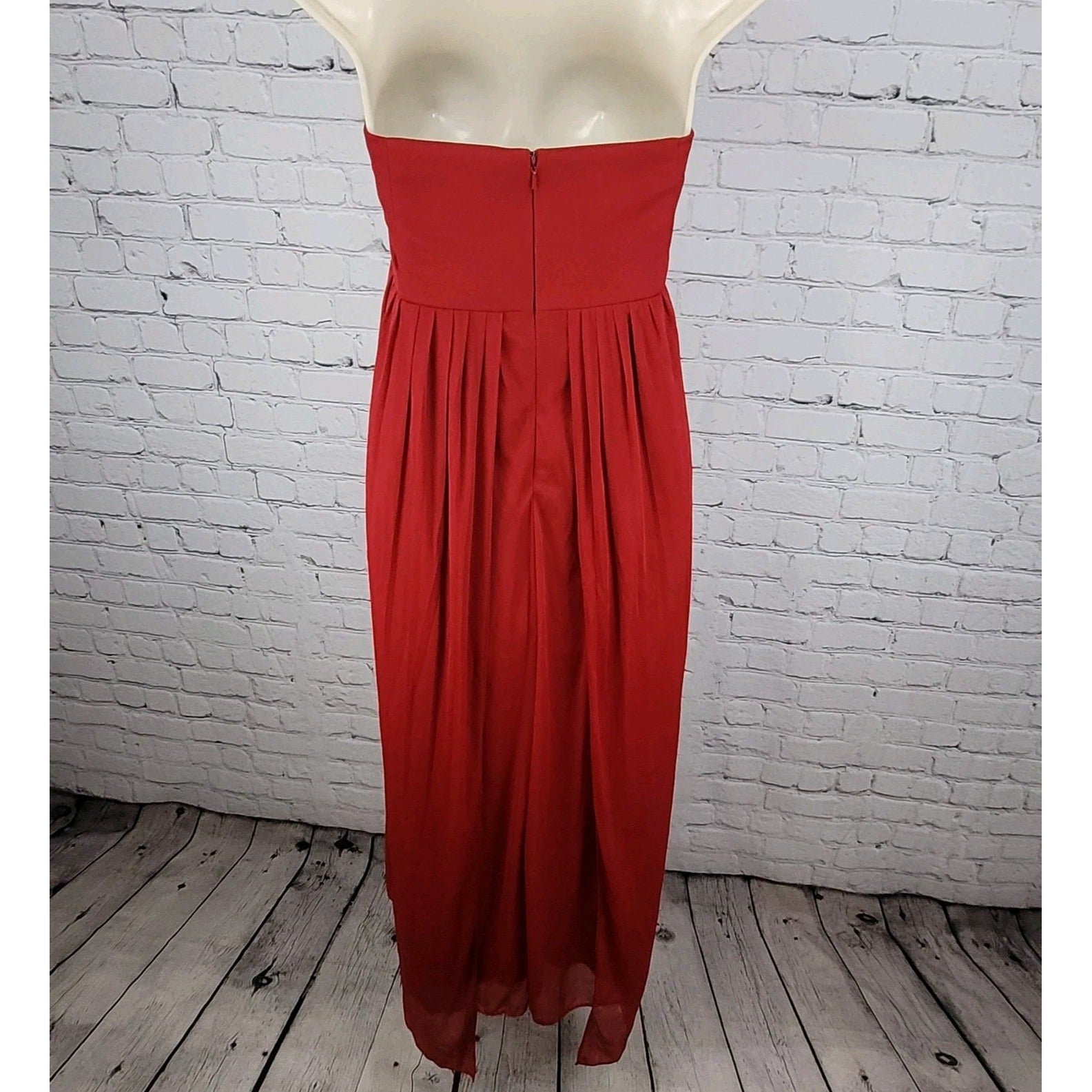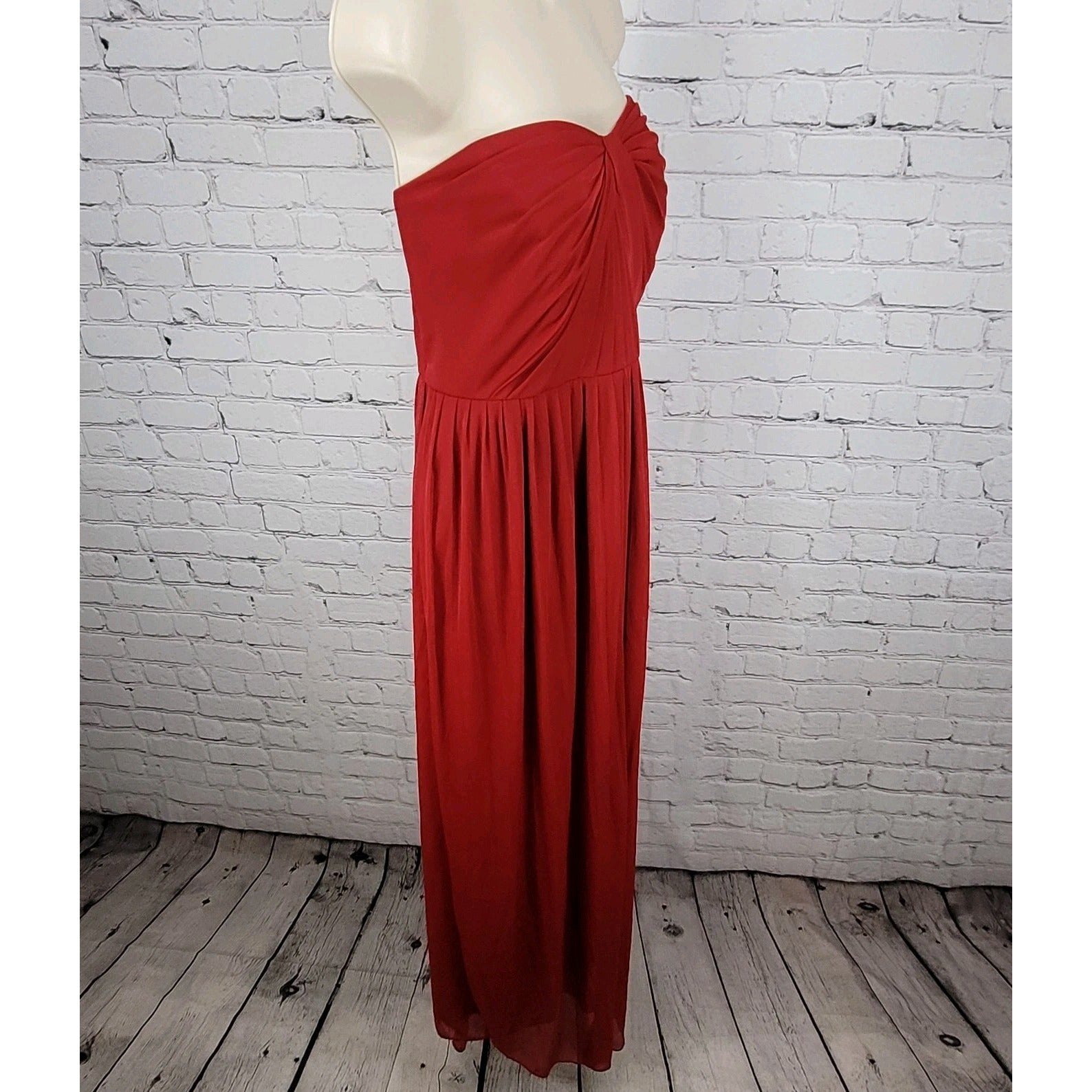 David's Bridal Apple Red Chiffon Empire Waist Pleated Strapless Gown Maxi Dress 18