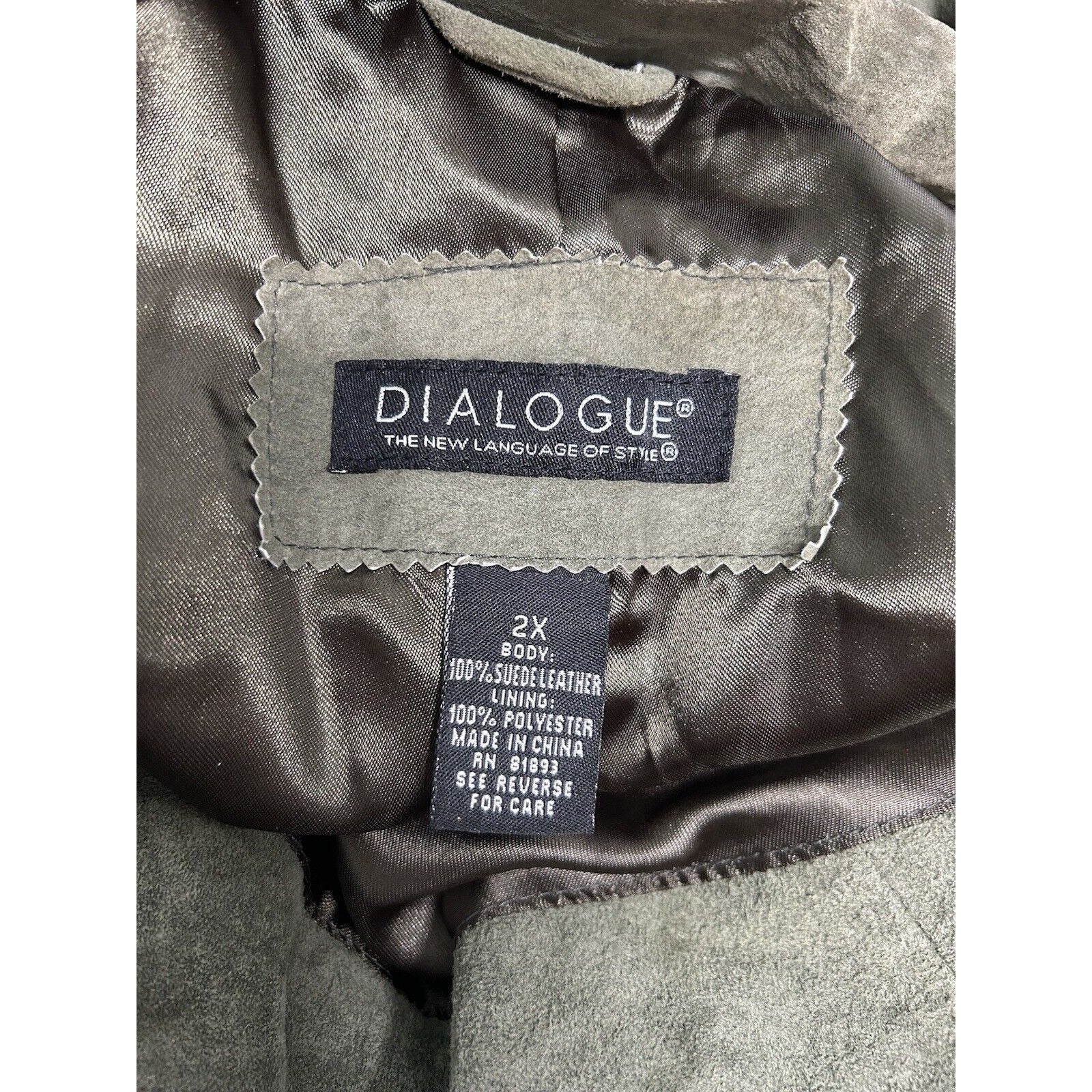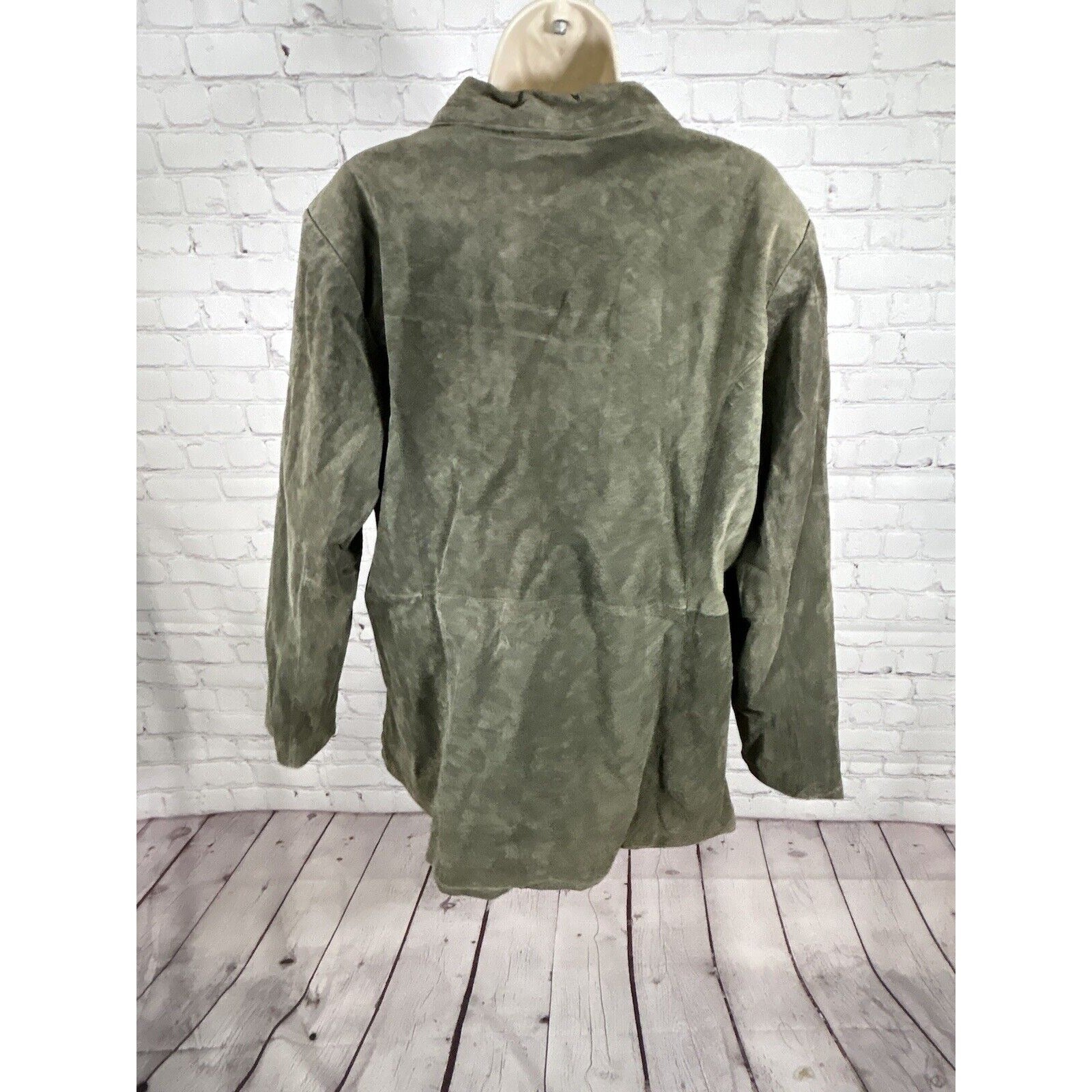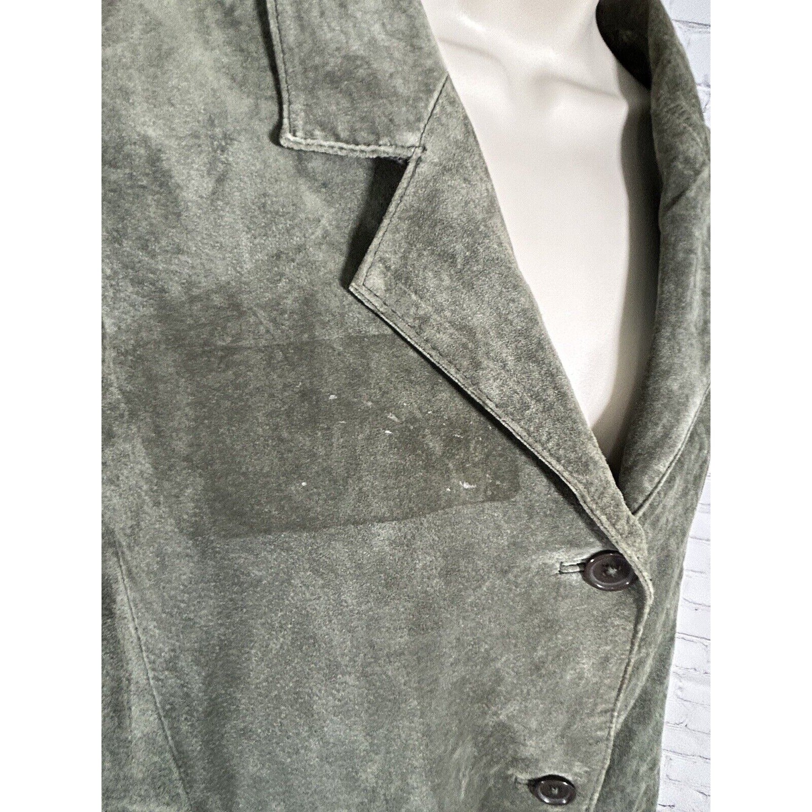 Dialogue Green Button Up Lined Washable Suede Leather Jacket Women’s Size 2X