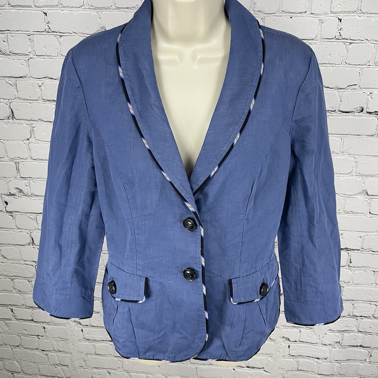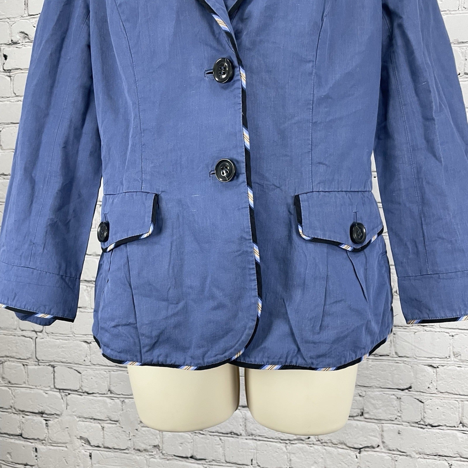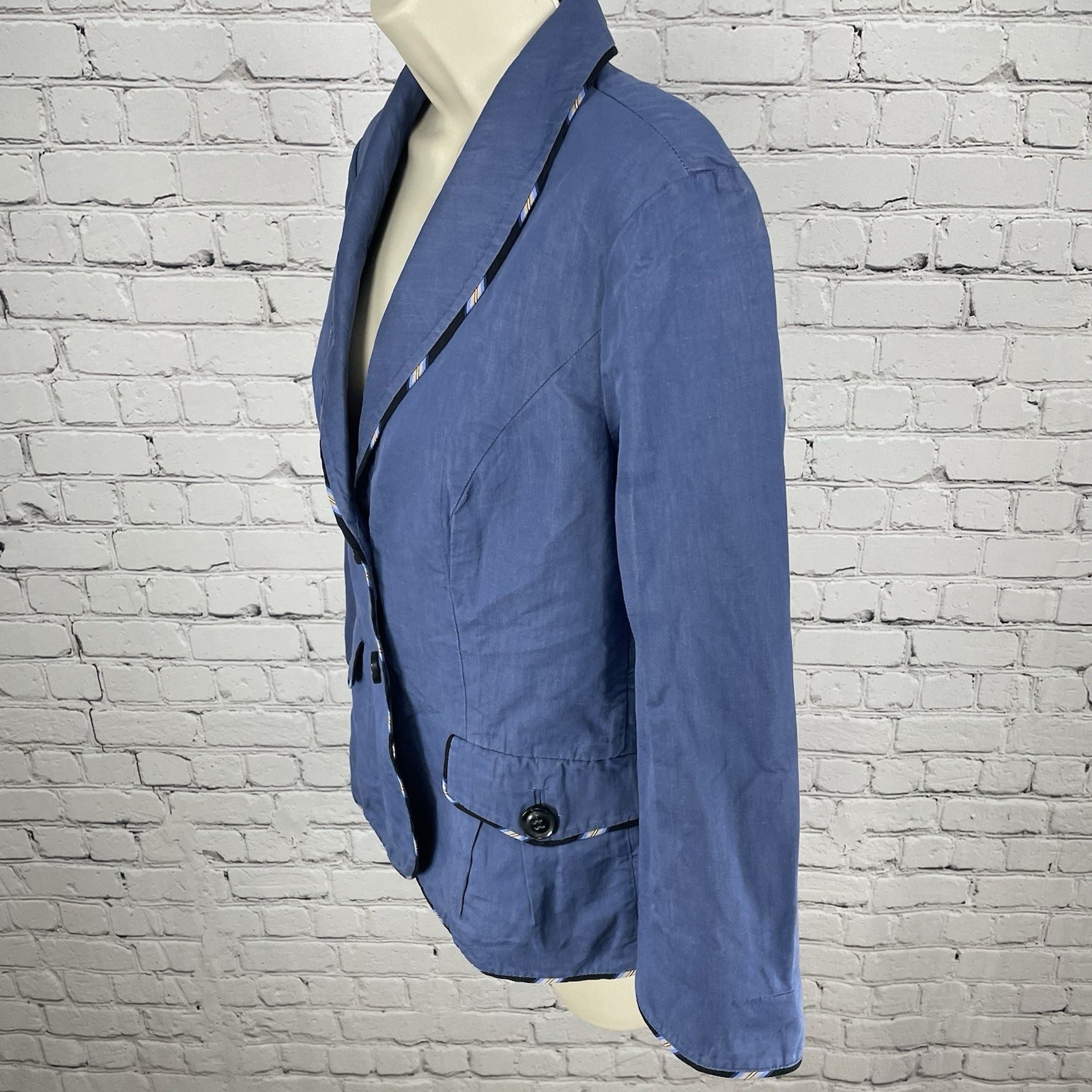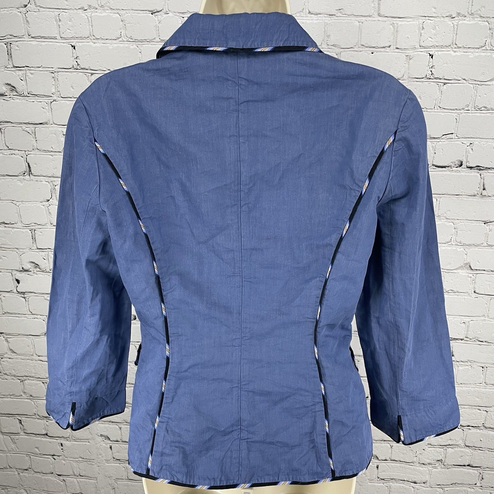 Diane Von Furstenberg Blue Cotton Blend Collared Lightweight Unlined Jacket 8