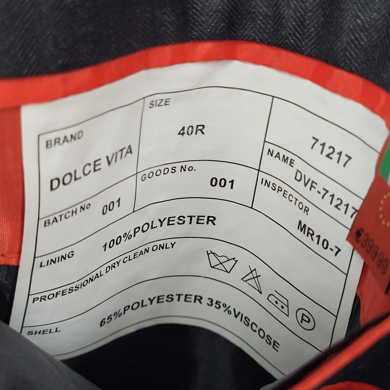 Dolce Vita Italy Black 2 Button Notch Double Vented Blazer Sport Coat Size 40R