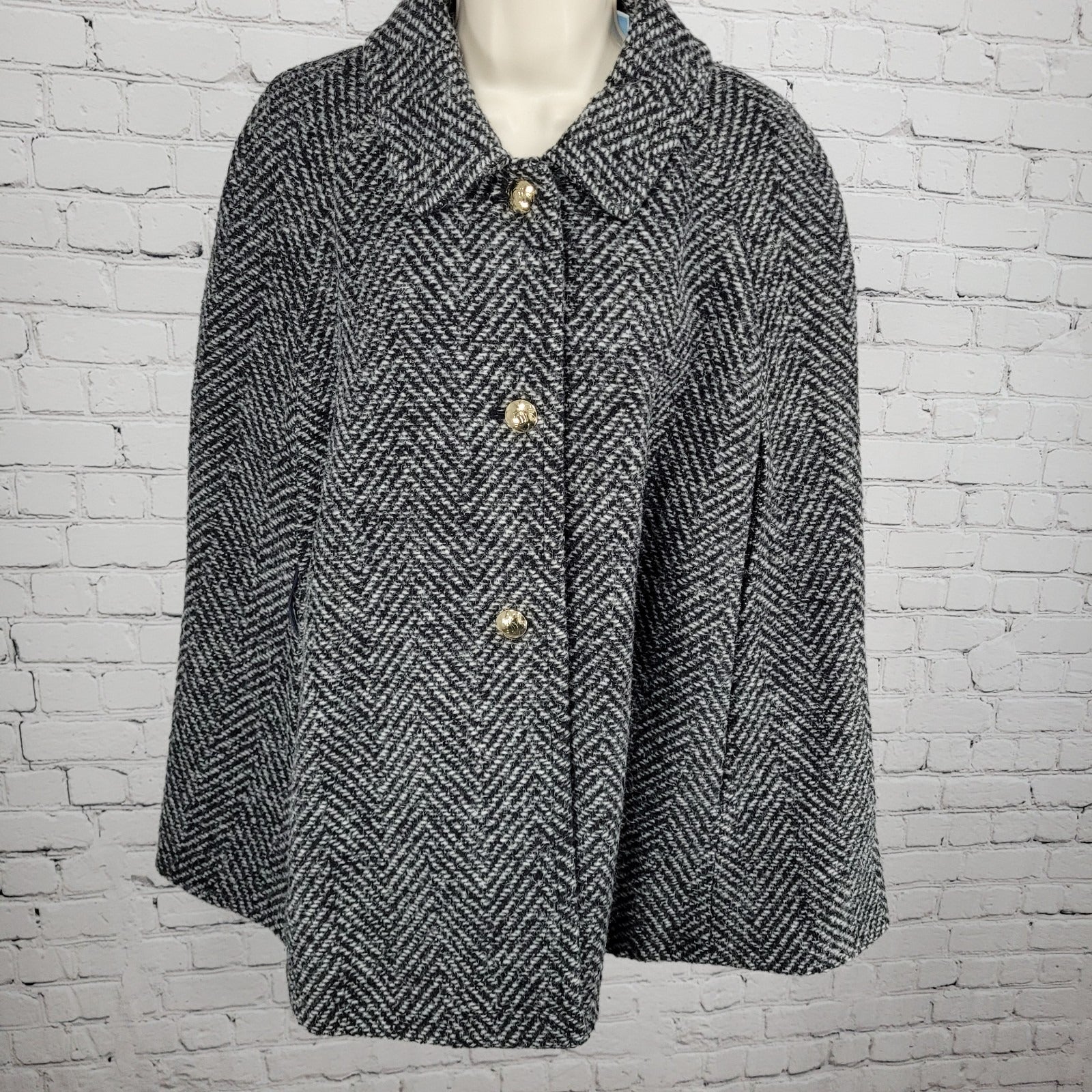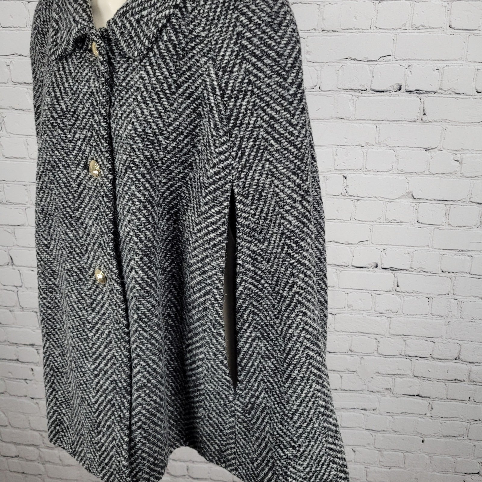 Draper James Black White Wool Blend Tweed Belted Sleeveless Cape Coat Size M/L