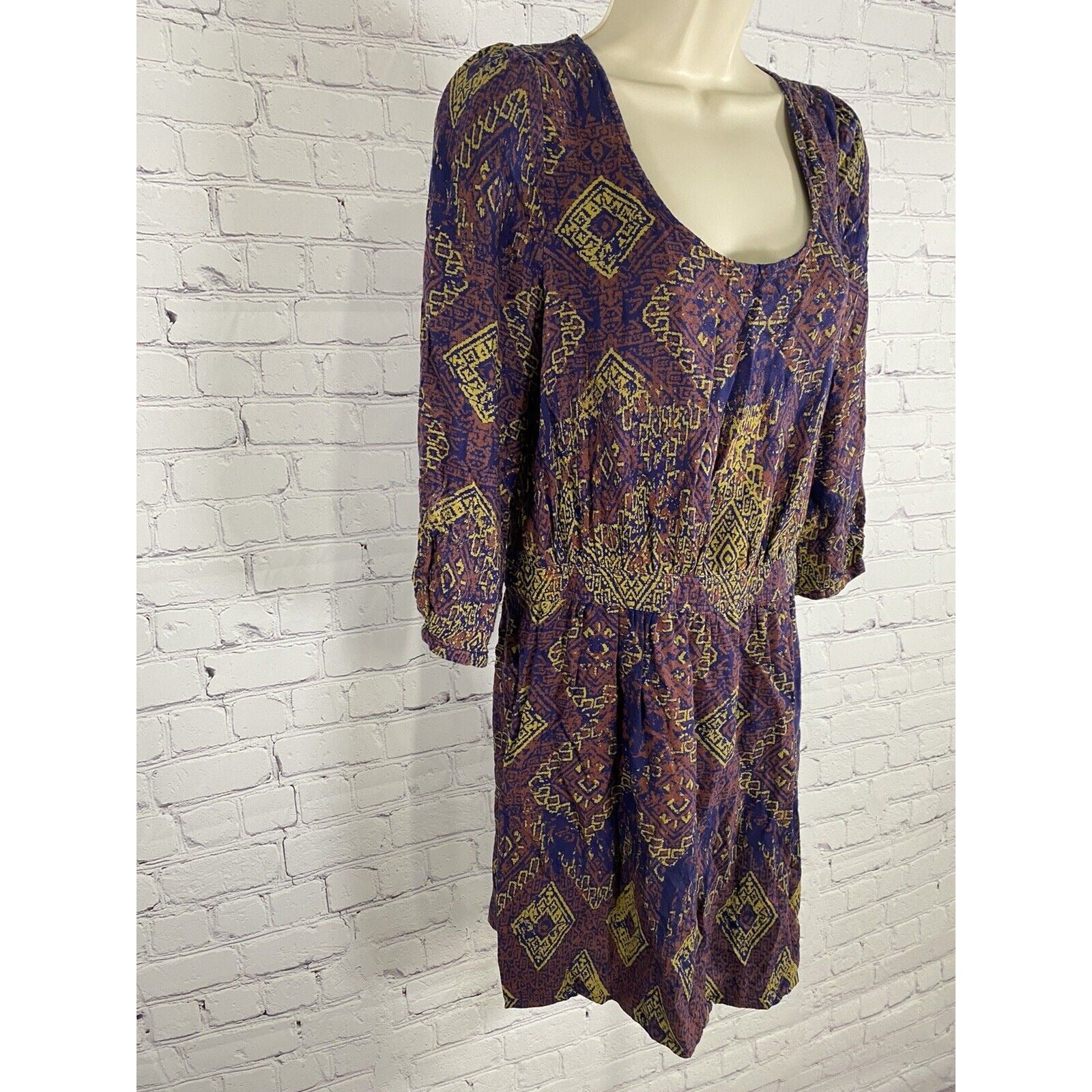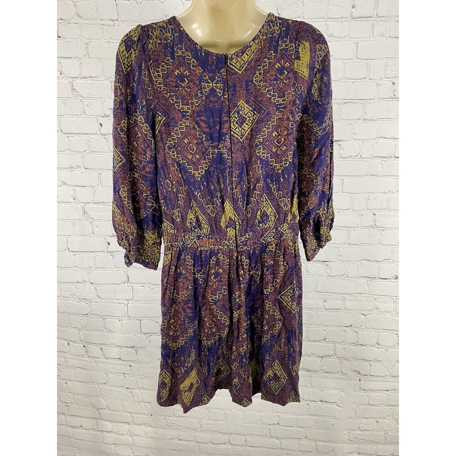 Ecote Urban Outfitters Blue Aztec Print Blouson Back Zip Knee Length Dress S