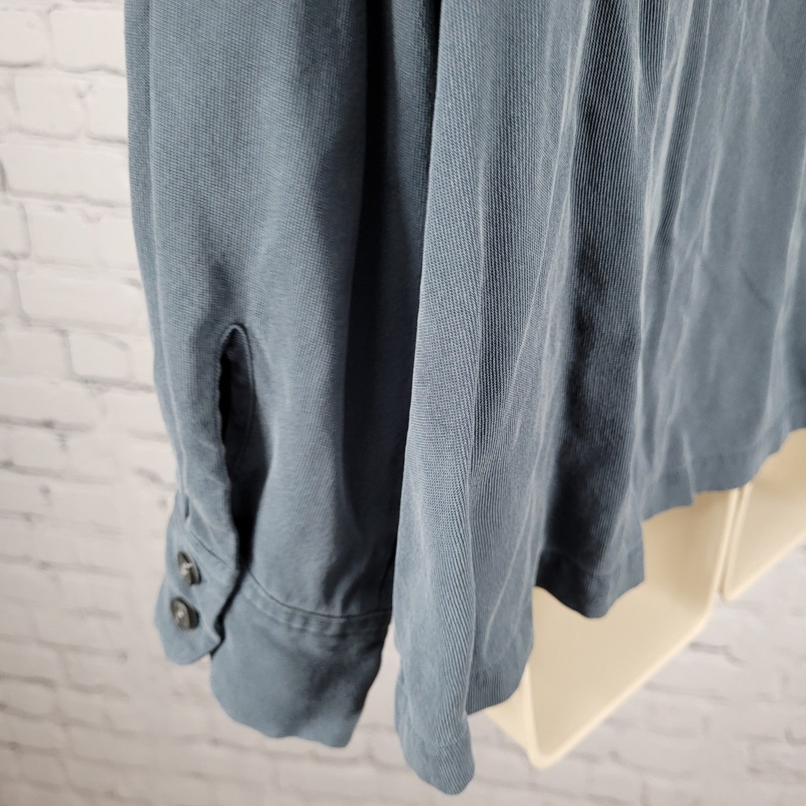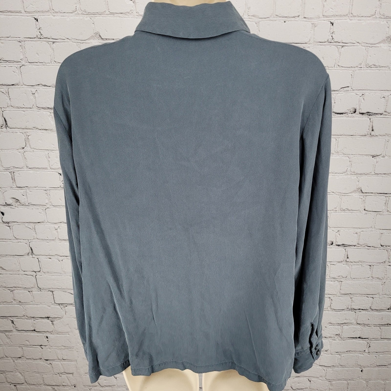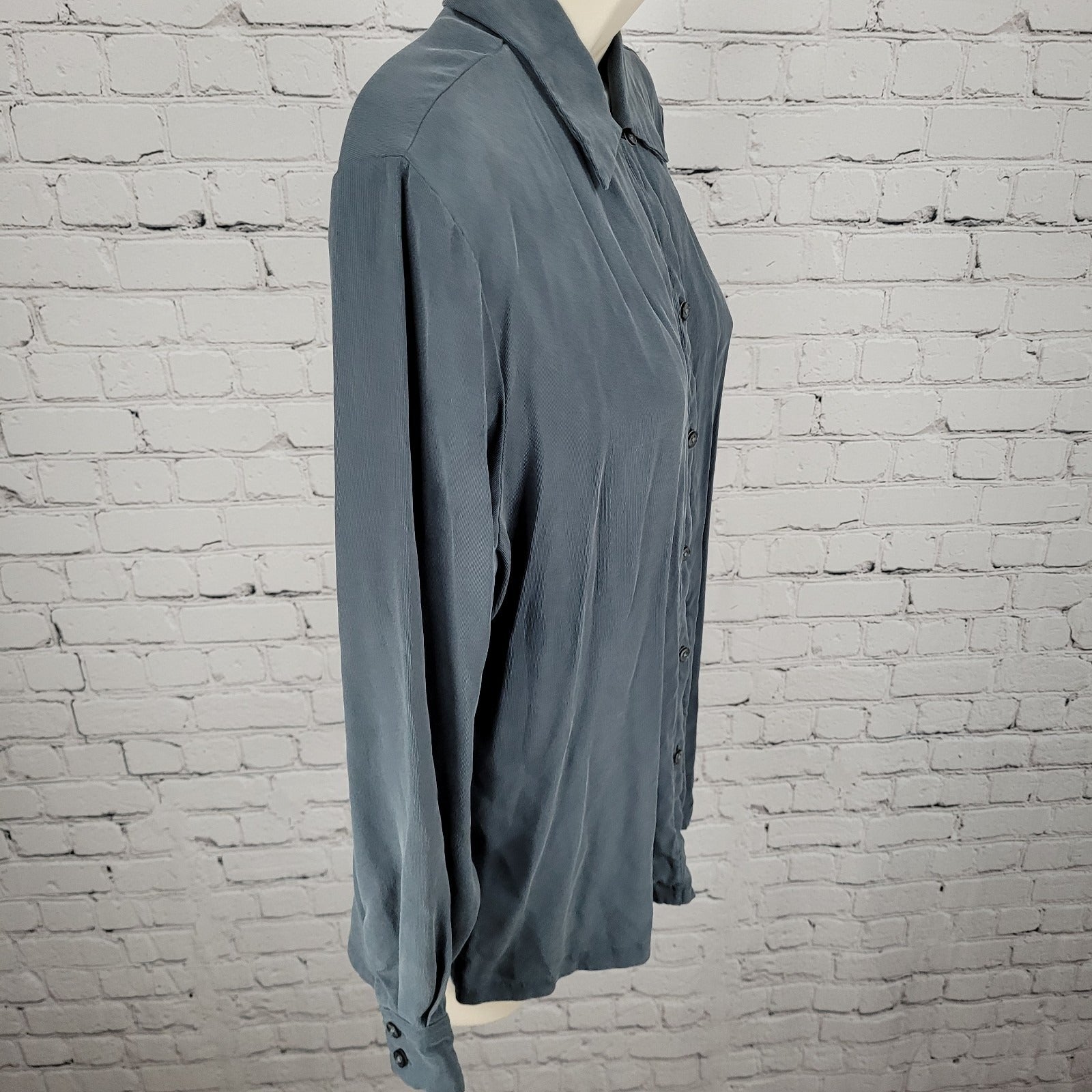 Eddie Bauer Blue Grey 100% Silk Button Up Long Sleeve Collar Shirt Size Large L