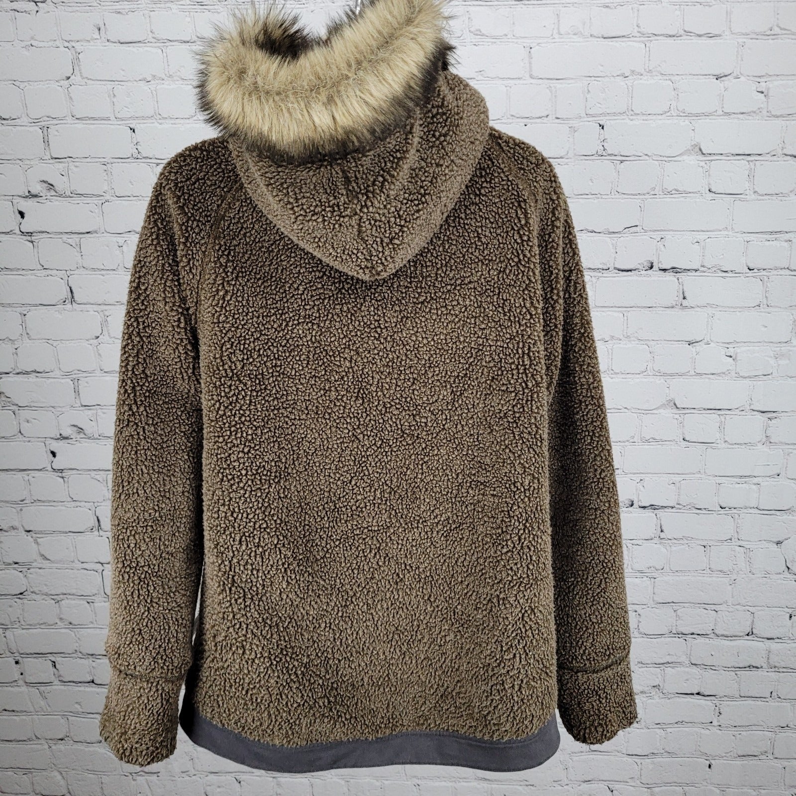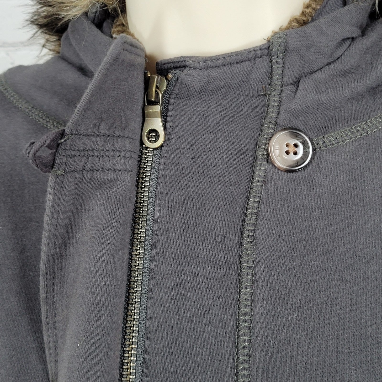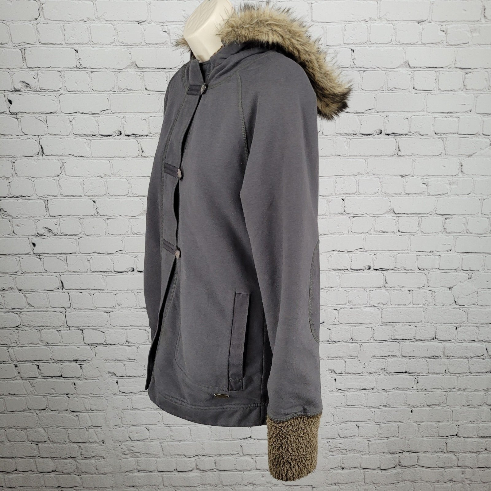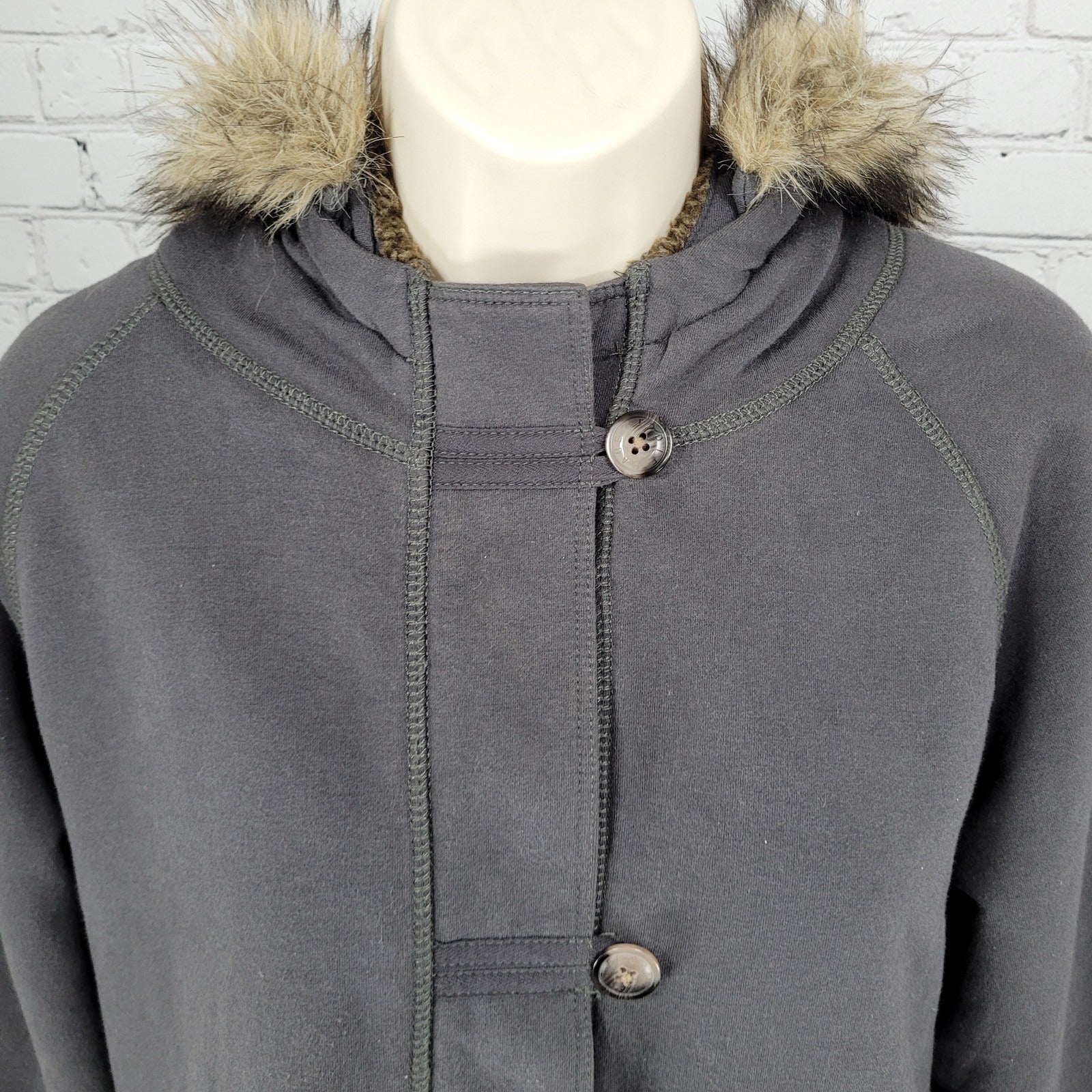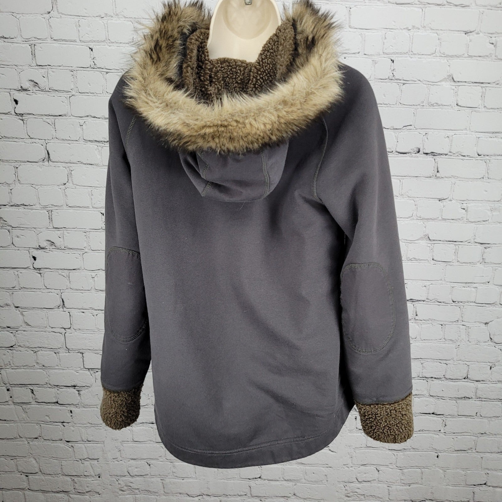 Eddie Bauer Grey Sherpa Lined Hooded Fur Trim Full Zip Jacket Size Medium M