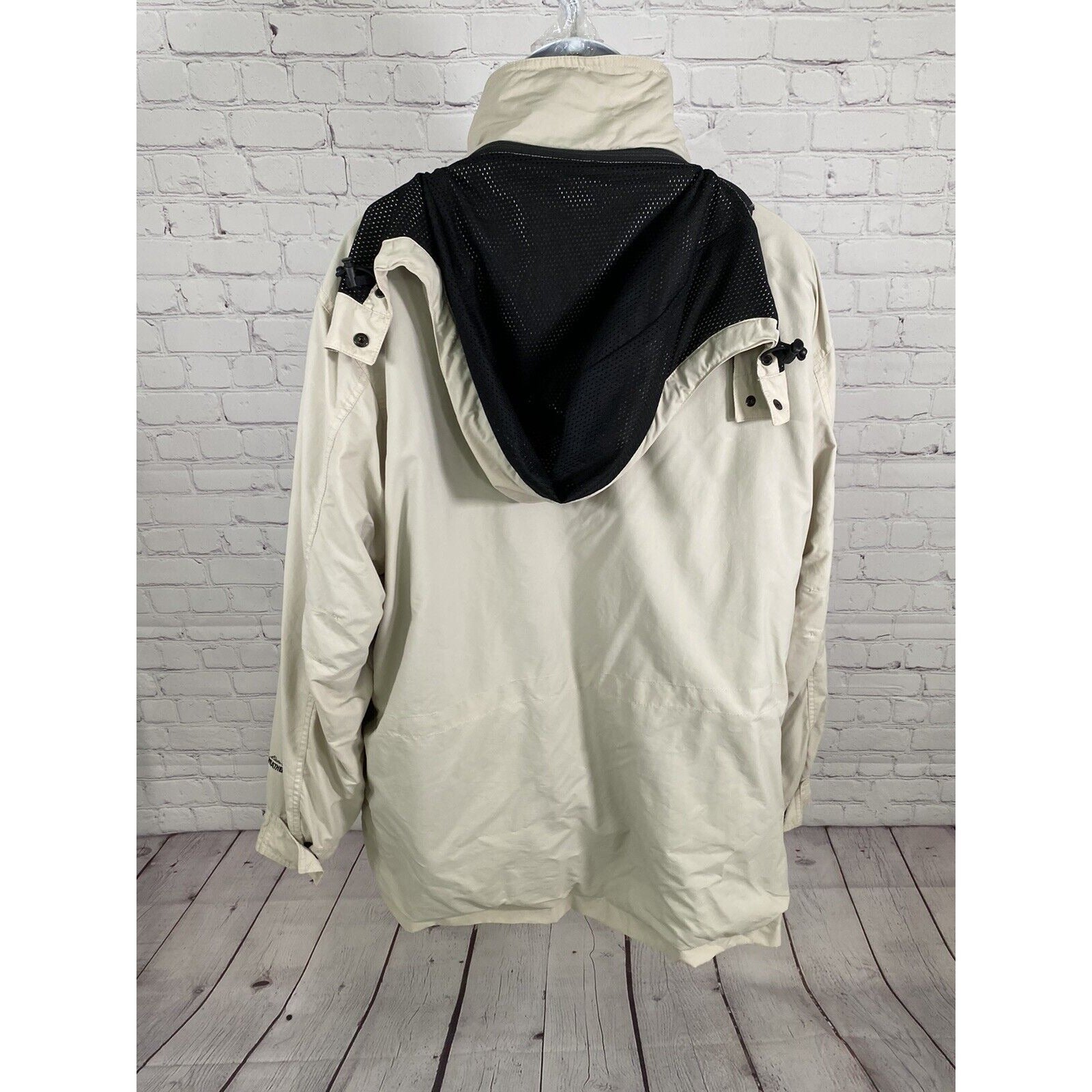 Eddie Bauer Weatheredge Beige Full Zip Zip Off Hood Rain Coat Jacket Men’s XL