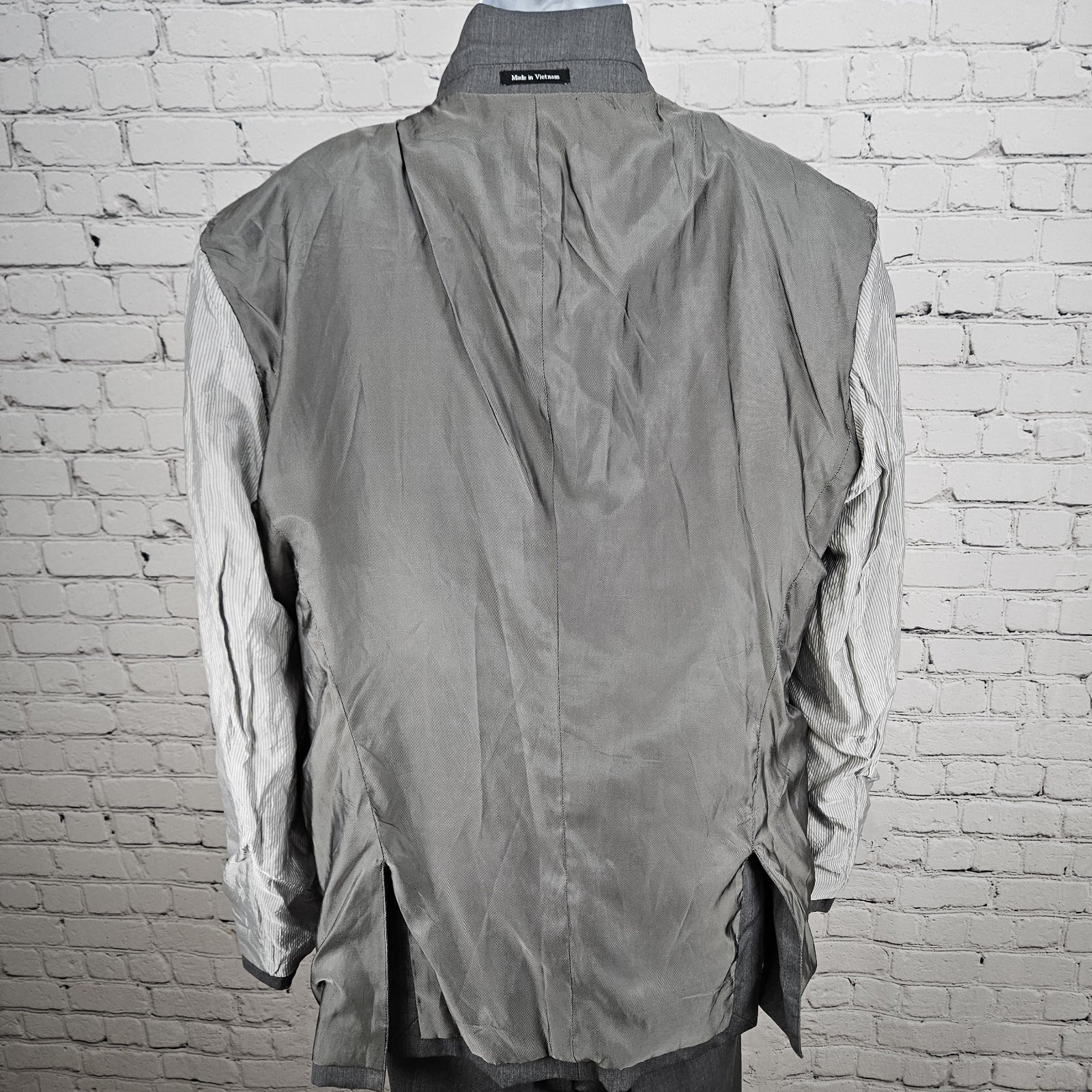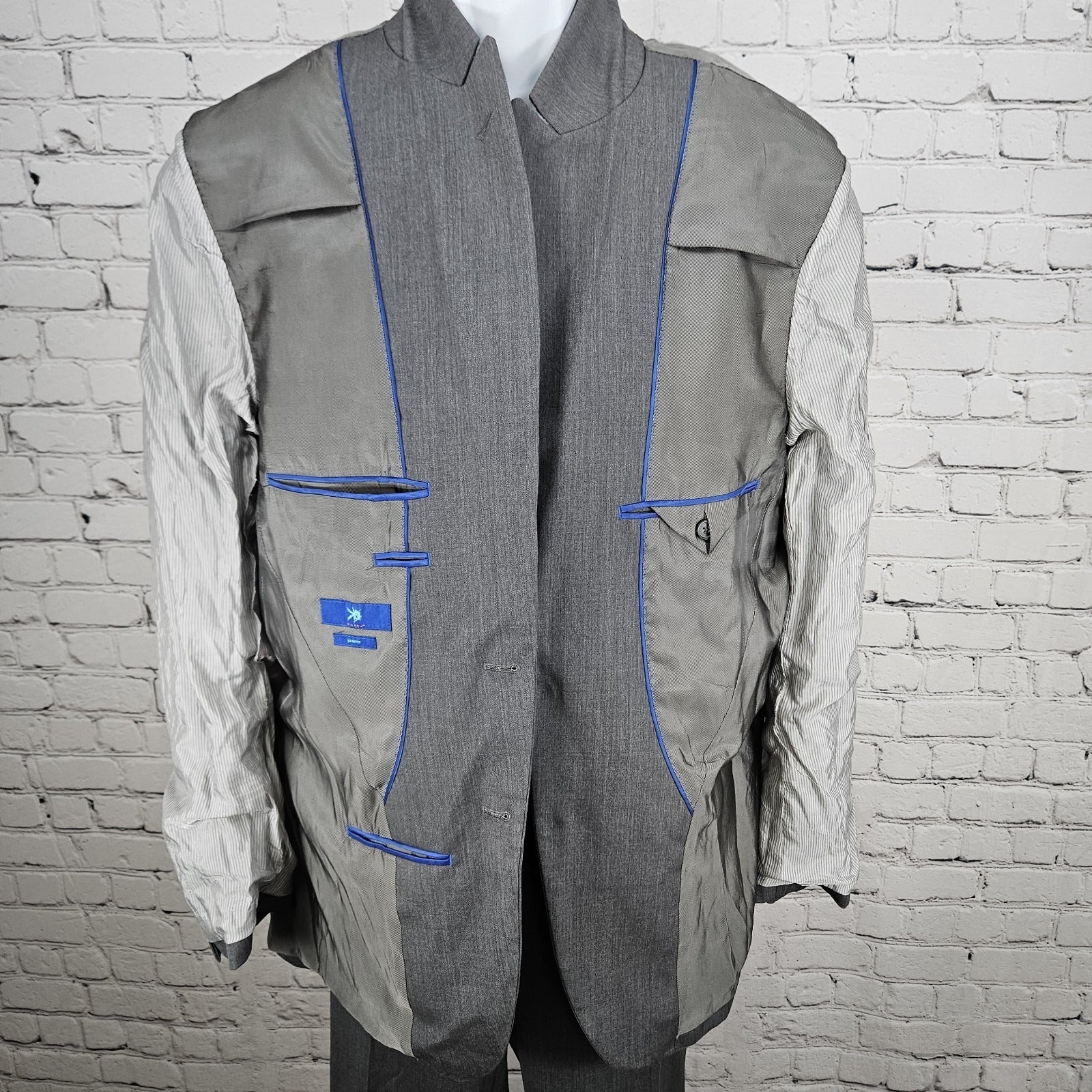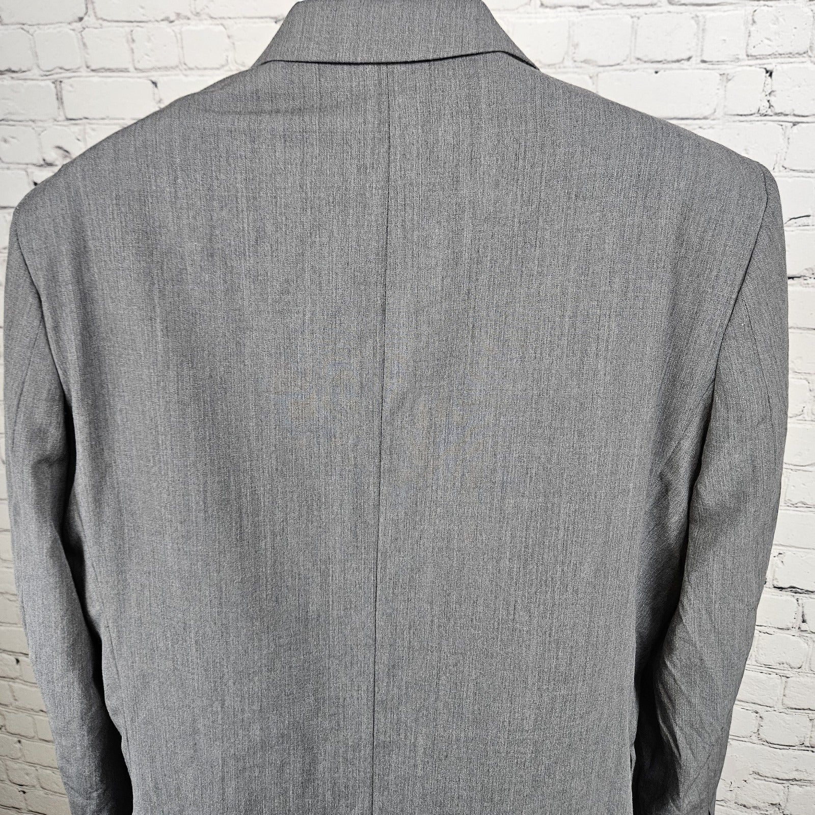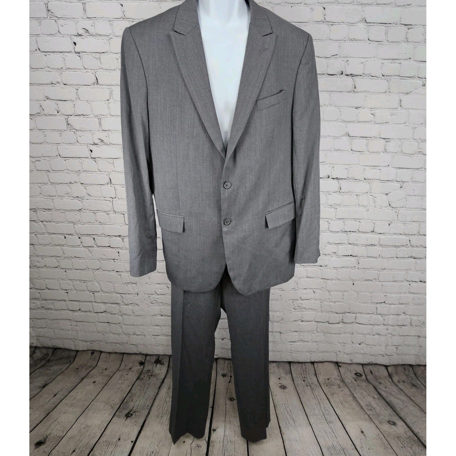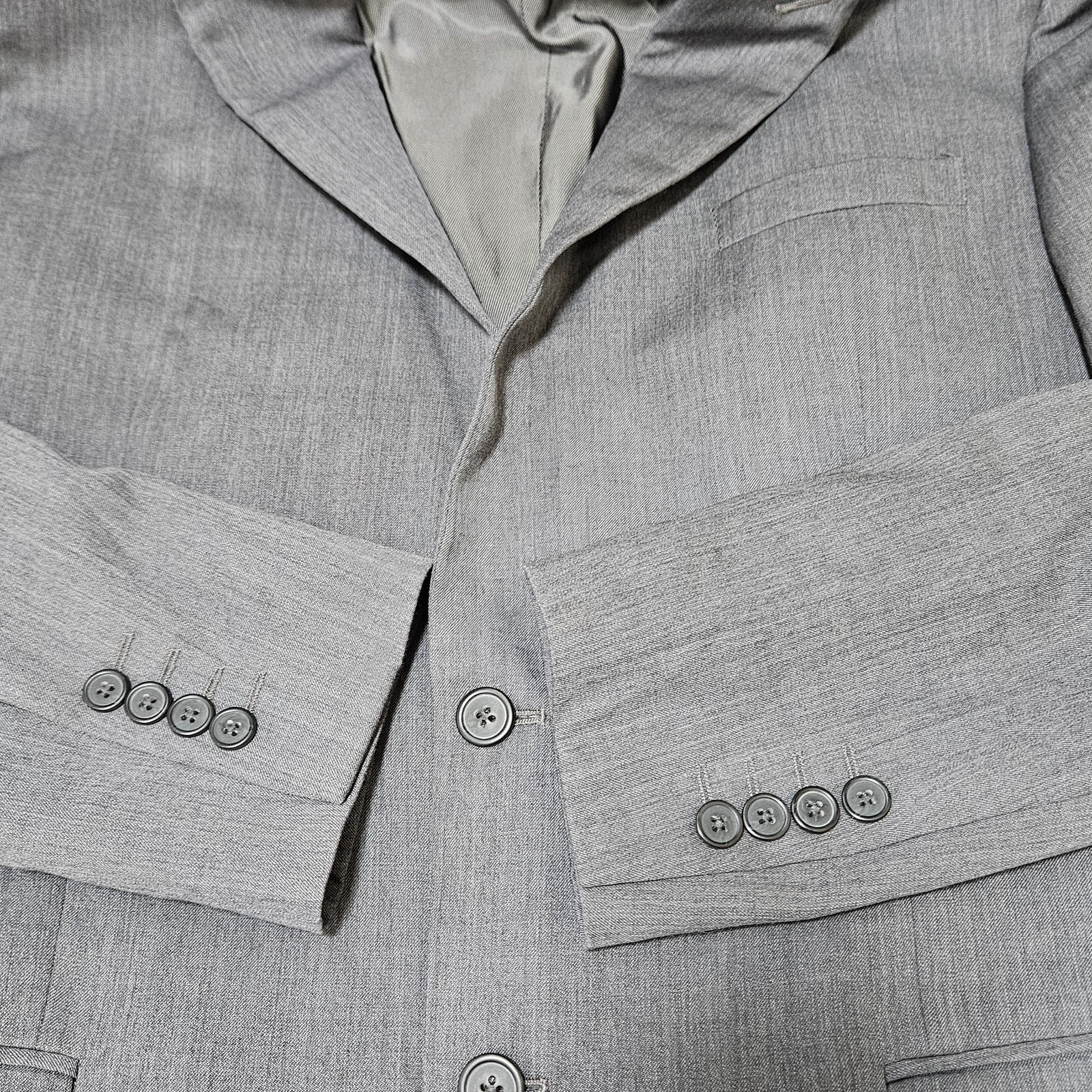 Egara Grey 100% Wool Full Suit Set 2 Piece Peak 2 Button Slim Fit Blazer 44L/38