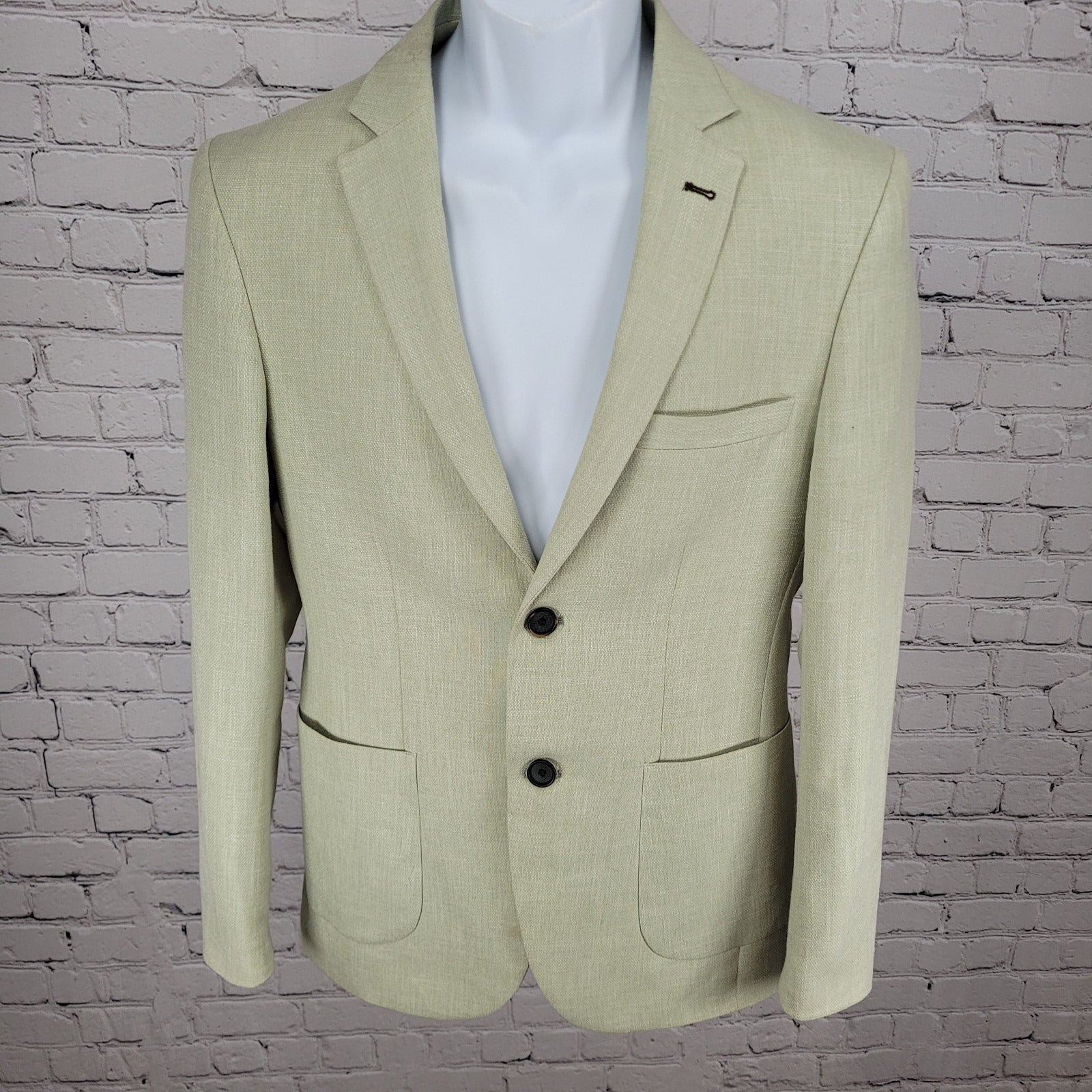 Eleganza Black Light Green Super 140's Slim Fit Blazer Sport Coat Size 36R