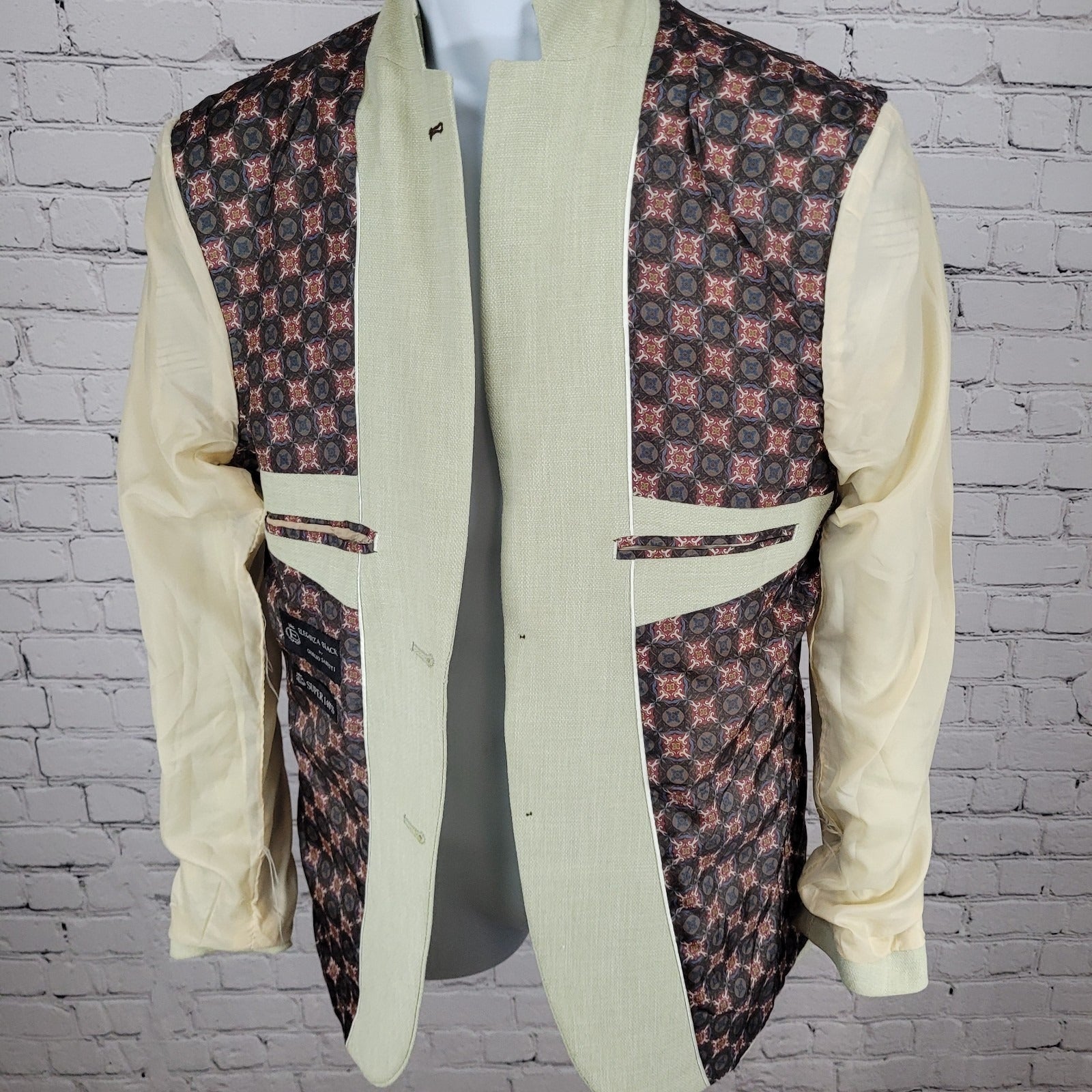 The Eleganza Black Light Green Super 140's Slim Fit Blazer Sport Coat in size 36R is a stylish and sophisticated addition to any man's wardrobe. Made from high-quality materials, this blazer features a slim fit design that is perfect for achieving a sleek and tailored look. The light green color adds a subtle pop of color to your outfit, making it versatile for various occasions.