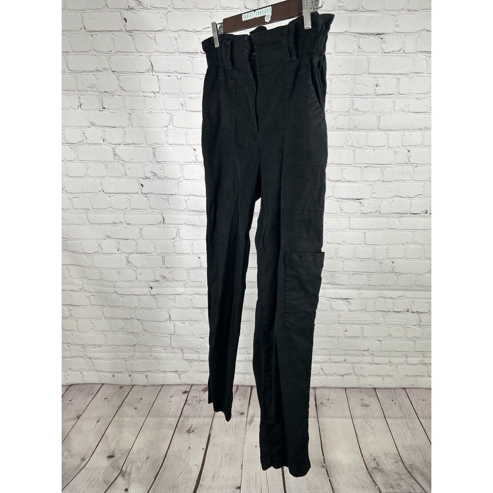 Elevenses Anthropologie Black Linen Blend Elastic Waist Cargo Pants S (28 x 30)
