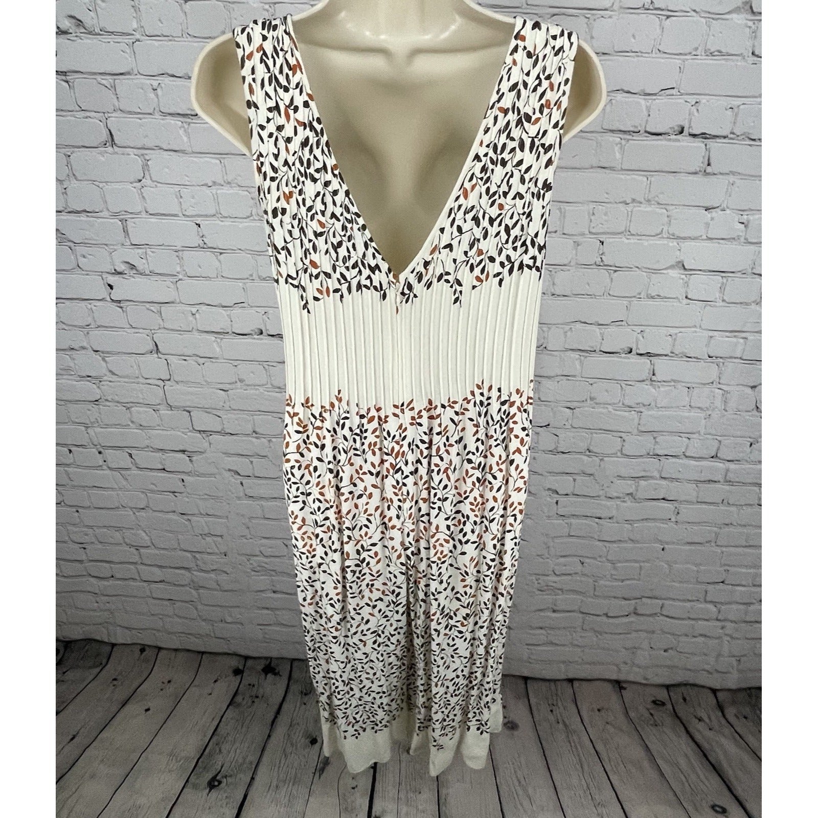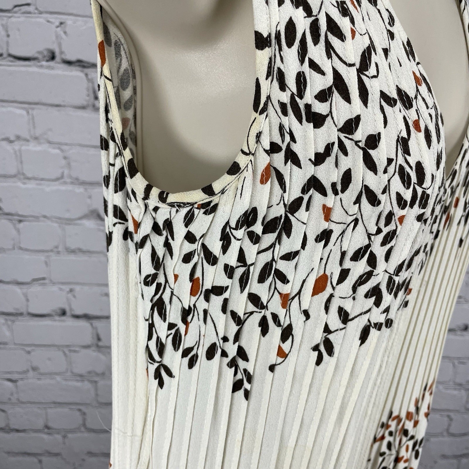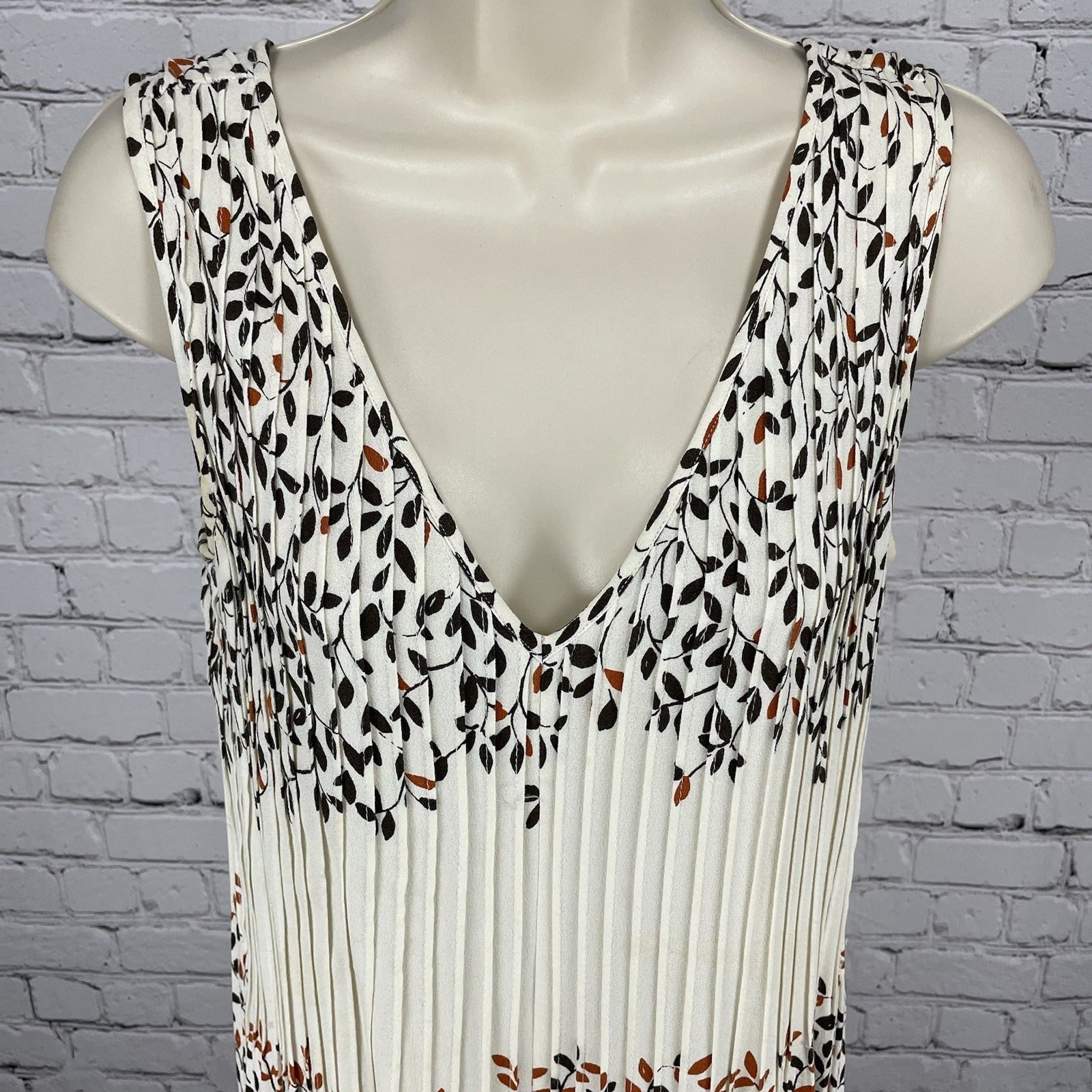 Elevenses Anthropologie Ivory Leaf Printed Pleated Sleeveless Jumper Size XS