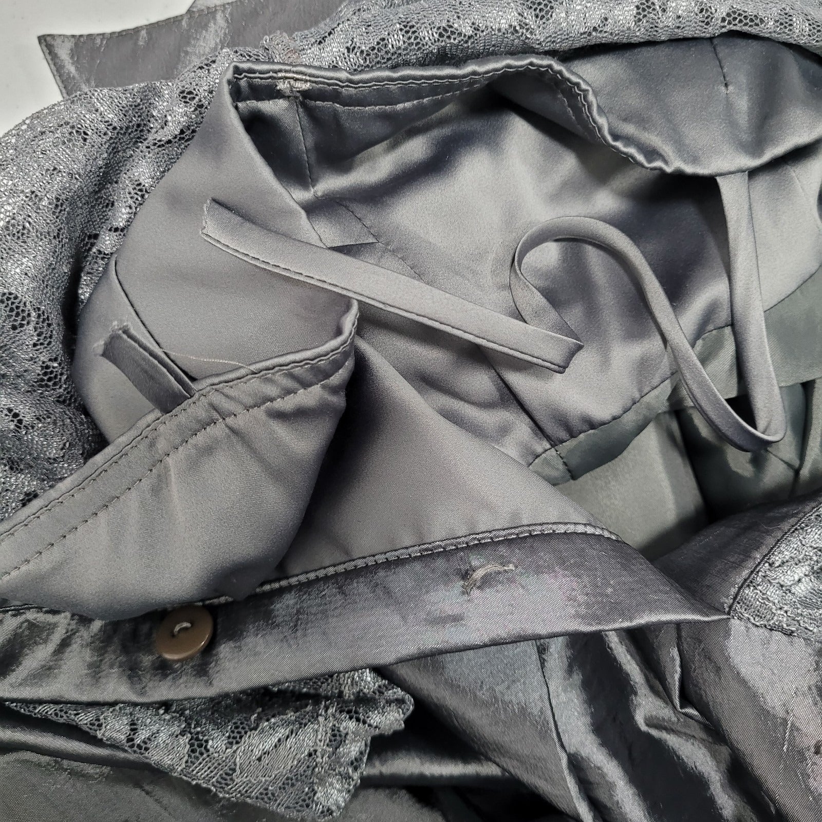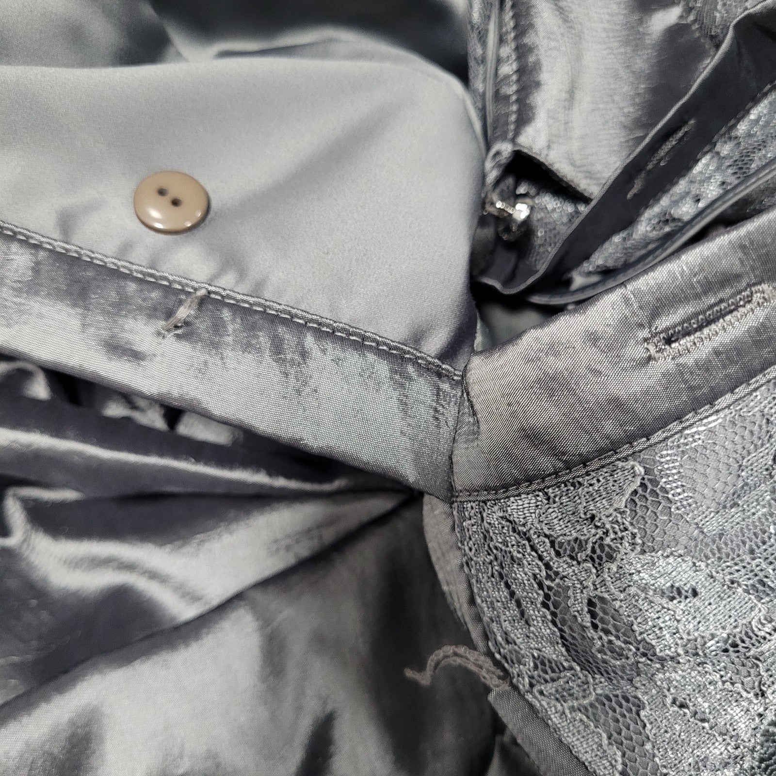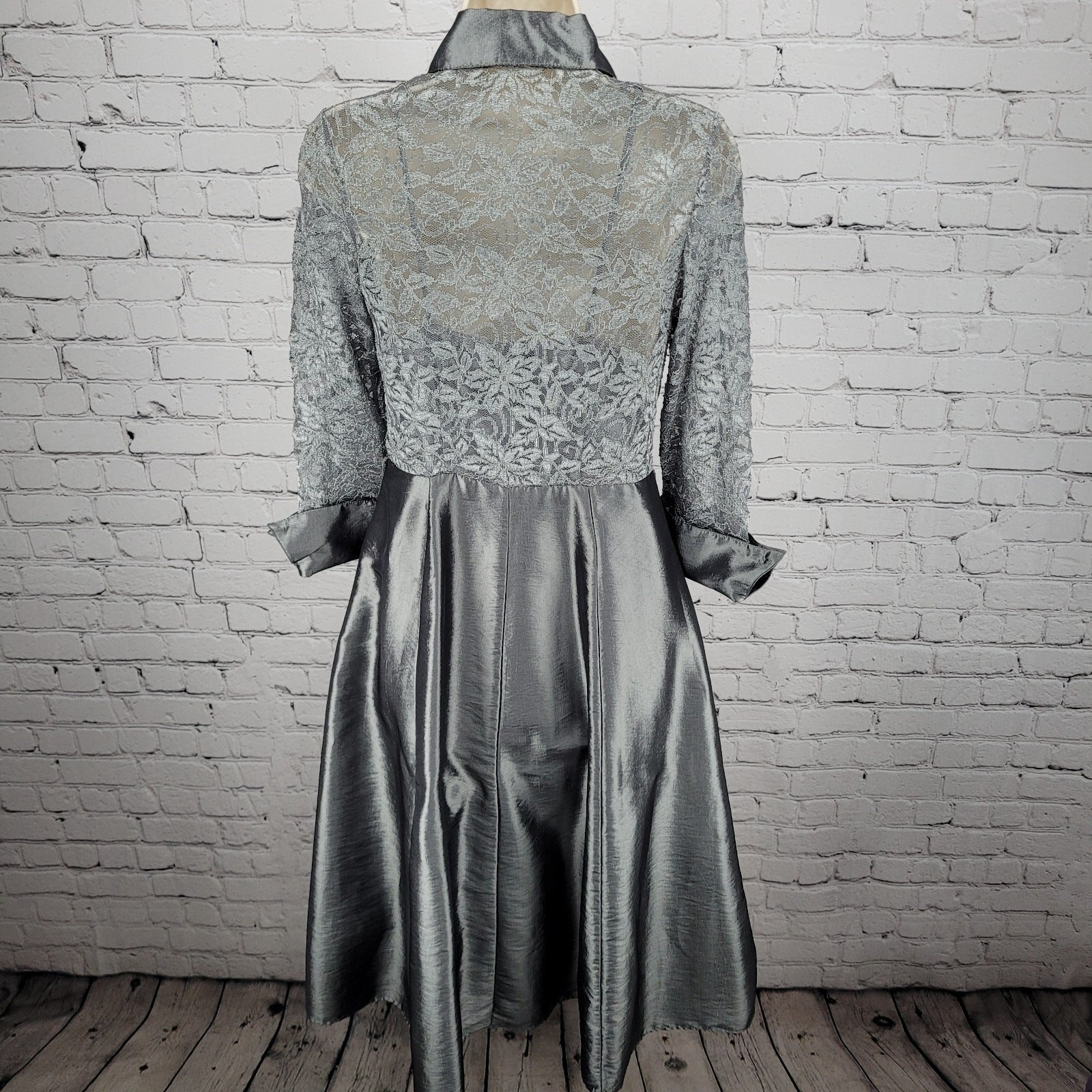 Eliza J Grey Lace 3/4 Sleeve Overlay Rhinestone Button A-Line Dress 2 *cut strap