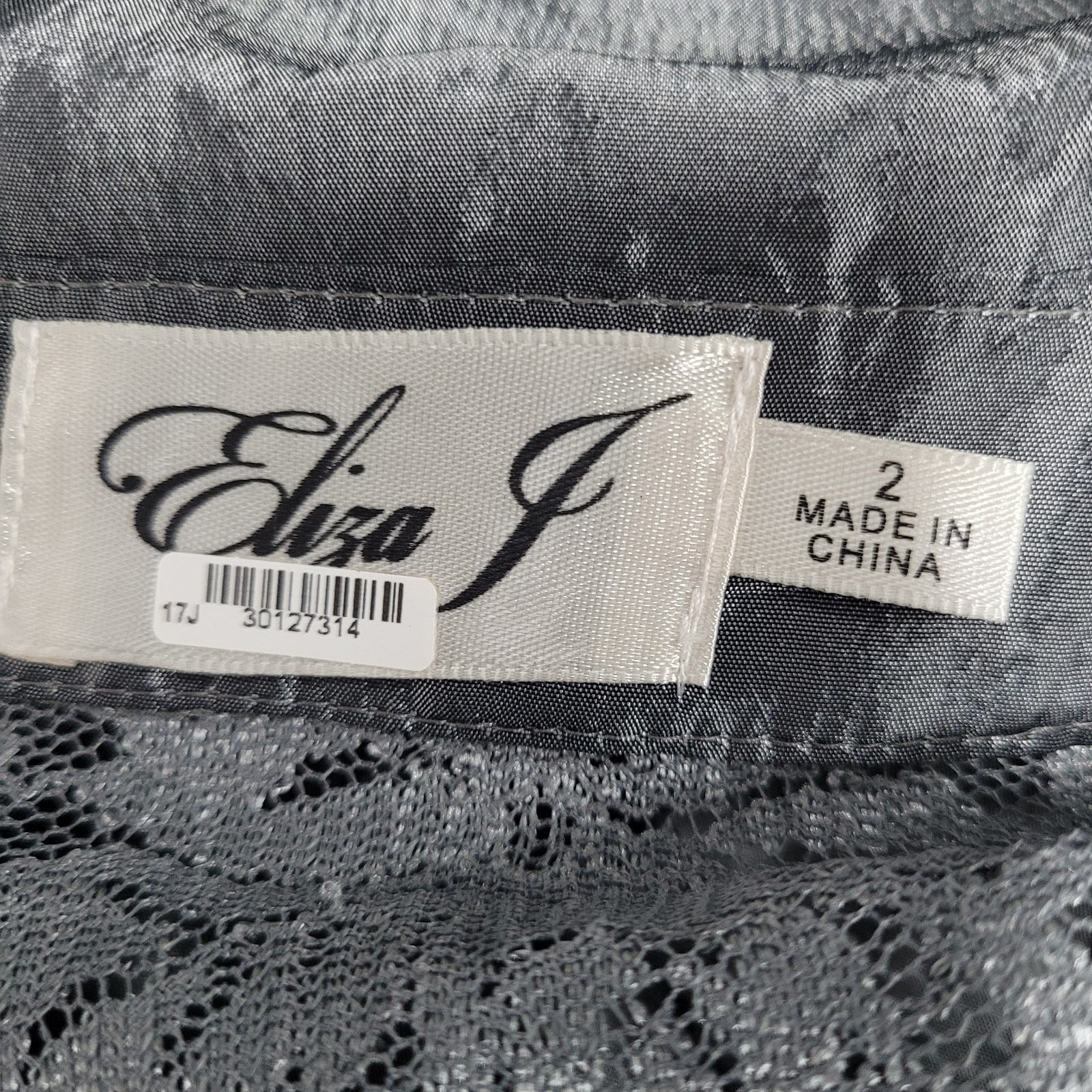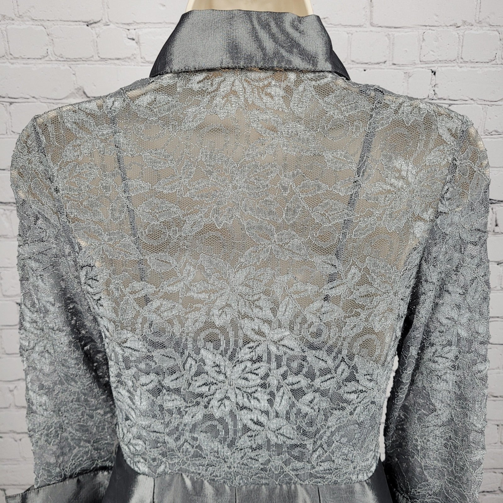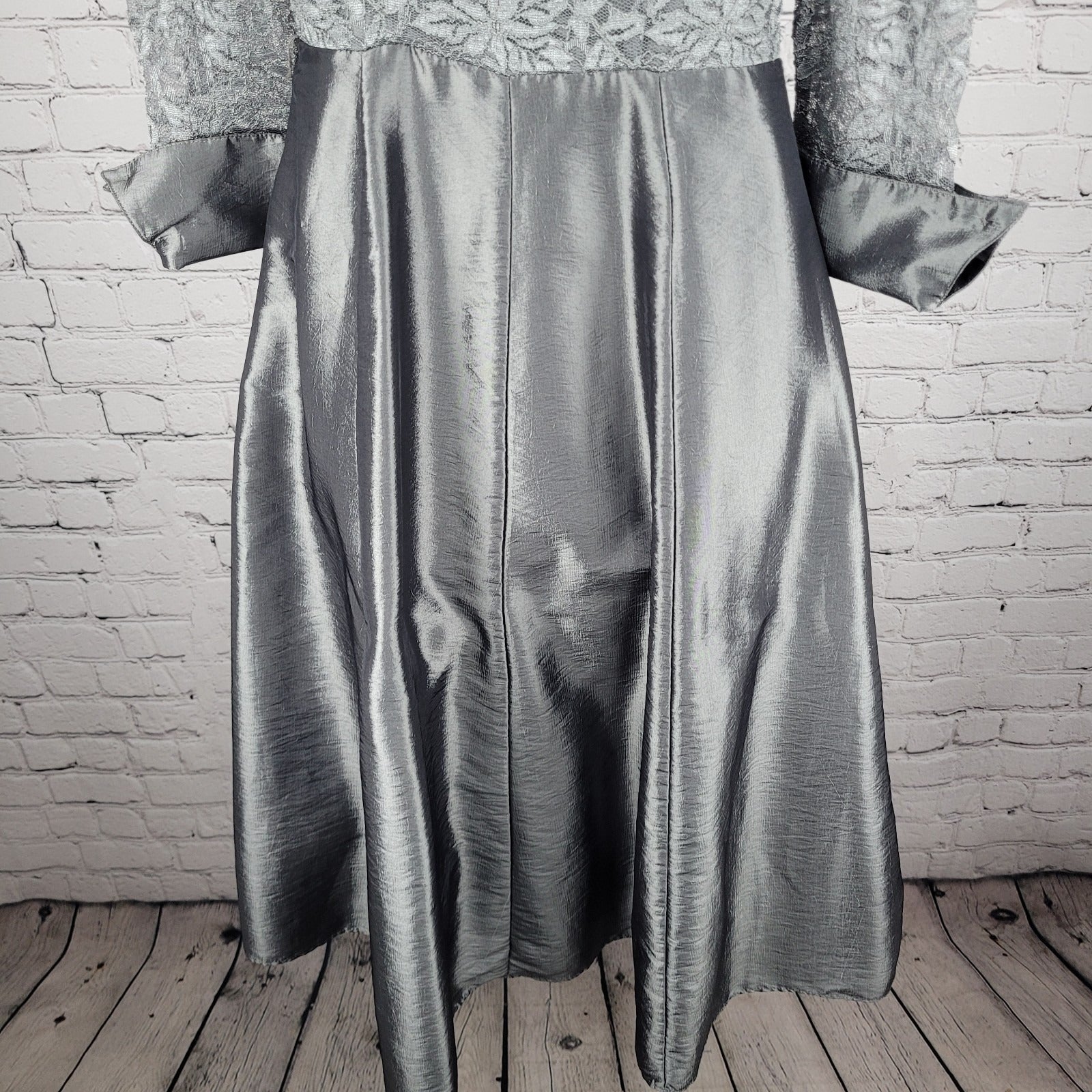 Eliza J Grey Lace 3/4 Sleeve Overlay Rhinestone Button A-Line Dress 2 *cut strap