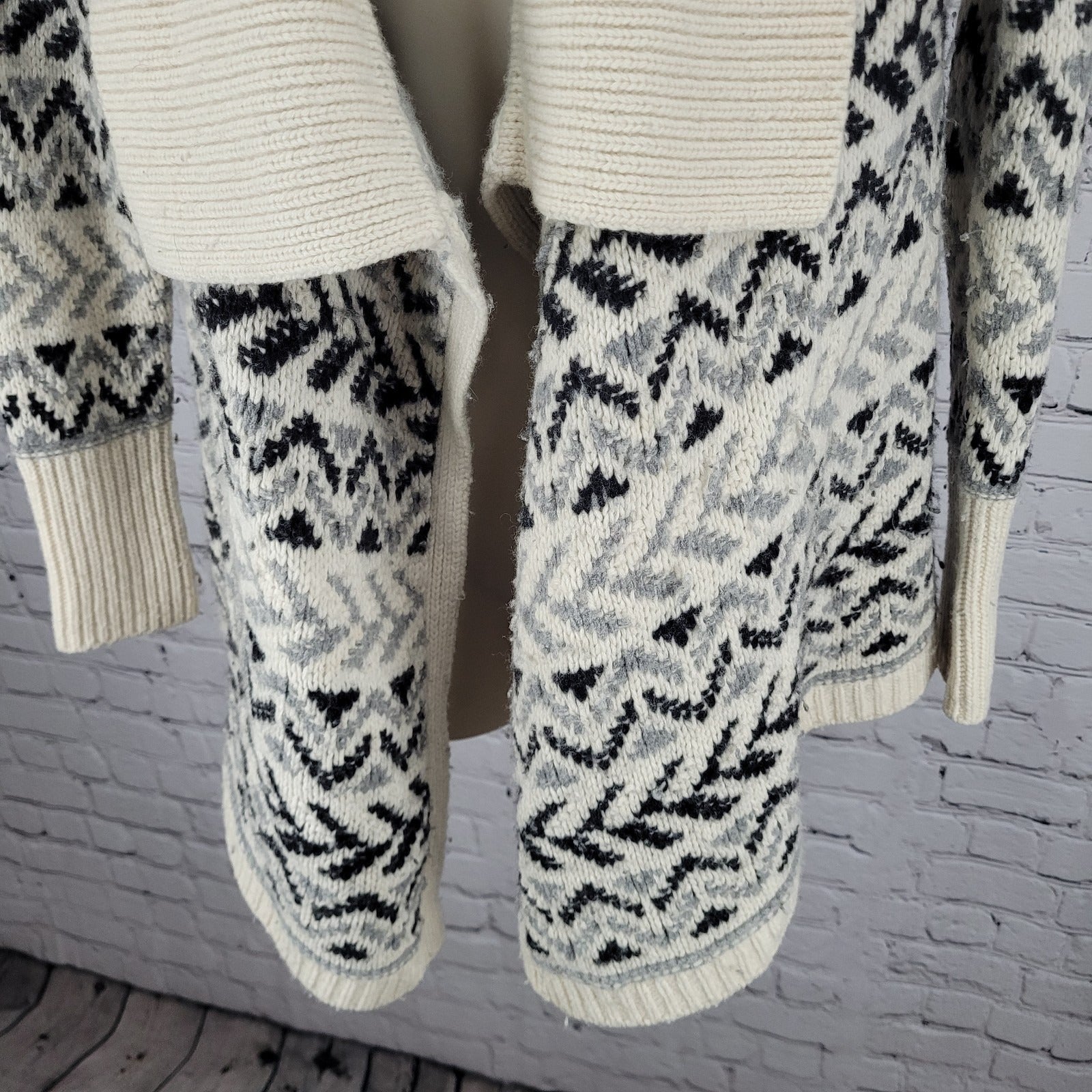 Ellen Tracy Lambswool Blend Ivory & Grey Geometric Open Cardigan Size Small S