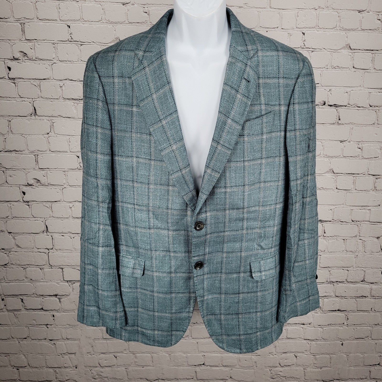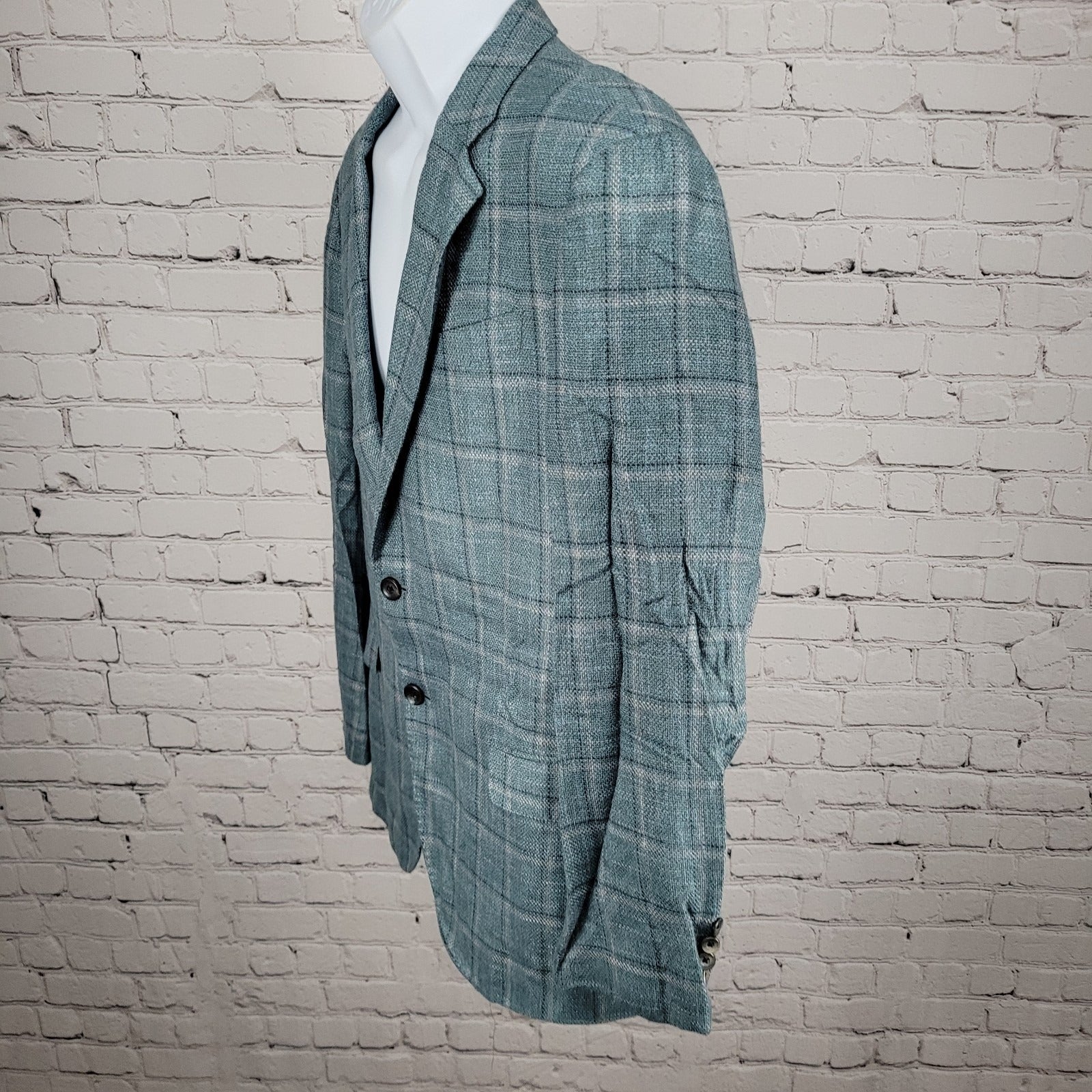 Emporio Armani G Line Blue Check 2 Button Notch Vented Blazer Sport Coat Size 41
