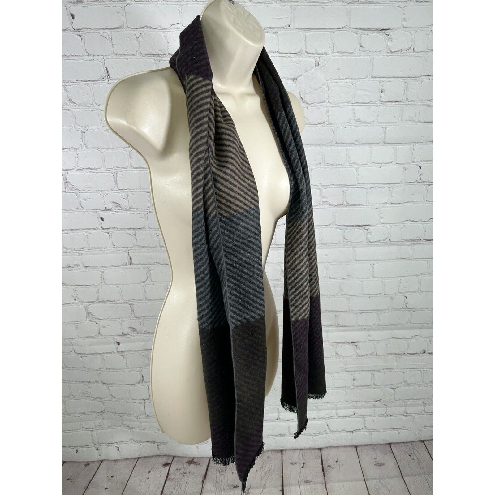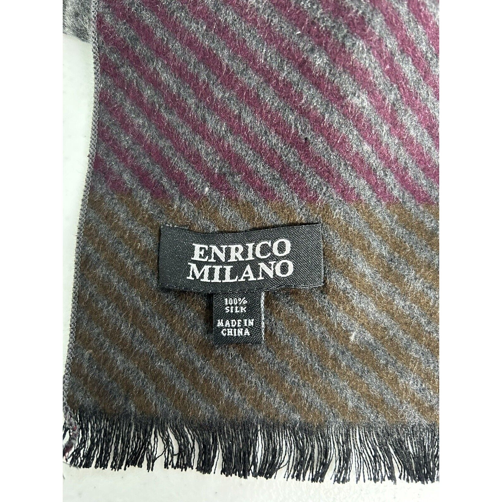 Enrico Milano 100% Silk Striped Multicolored Fringe Rectangle Scarf (62 x 12.5)