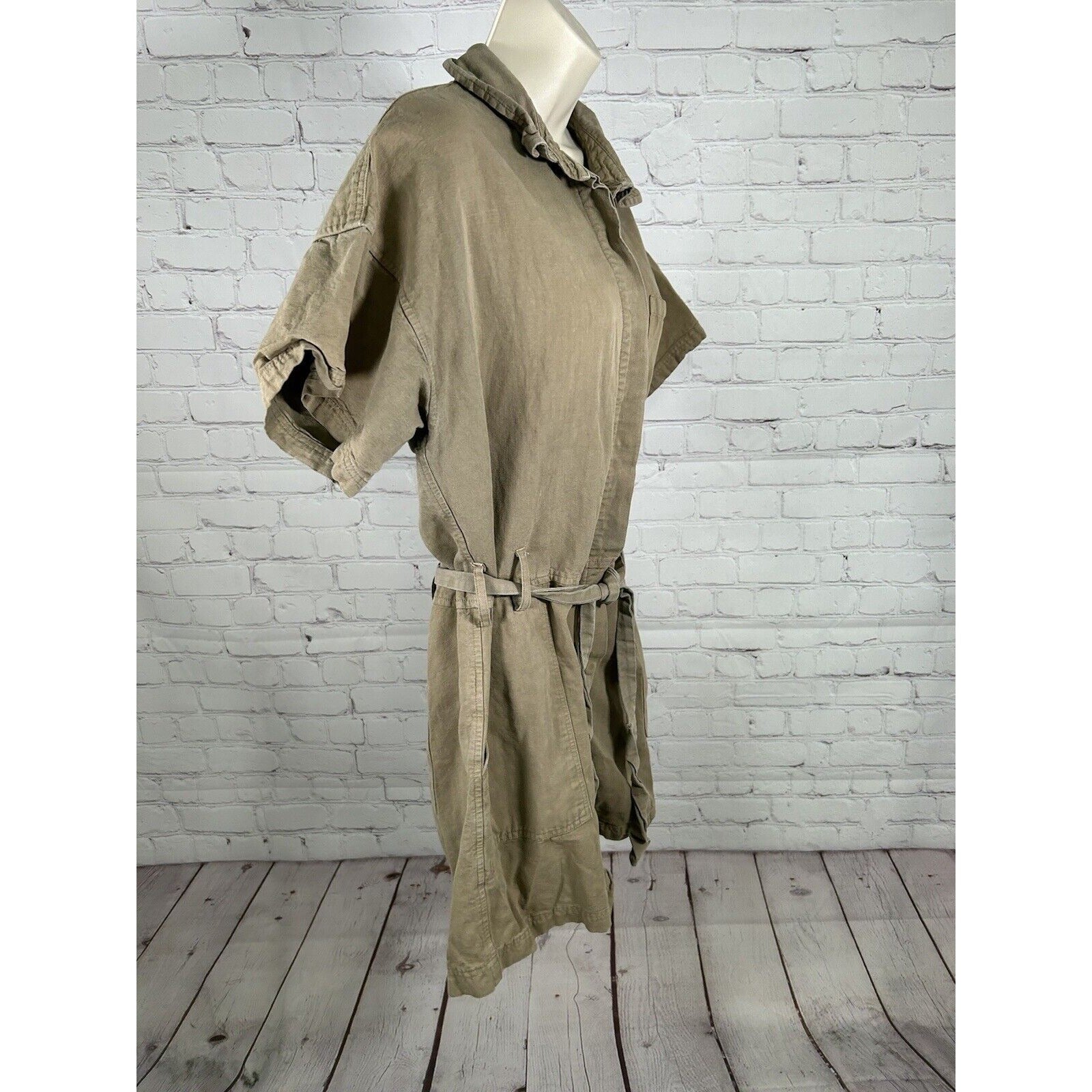 Esby Brown Tori Jumper Utility Belted Romper Cotton Linen Blend Women’s M