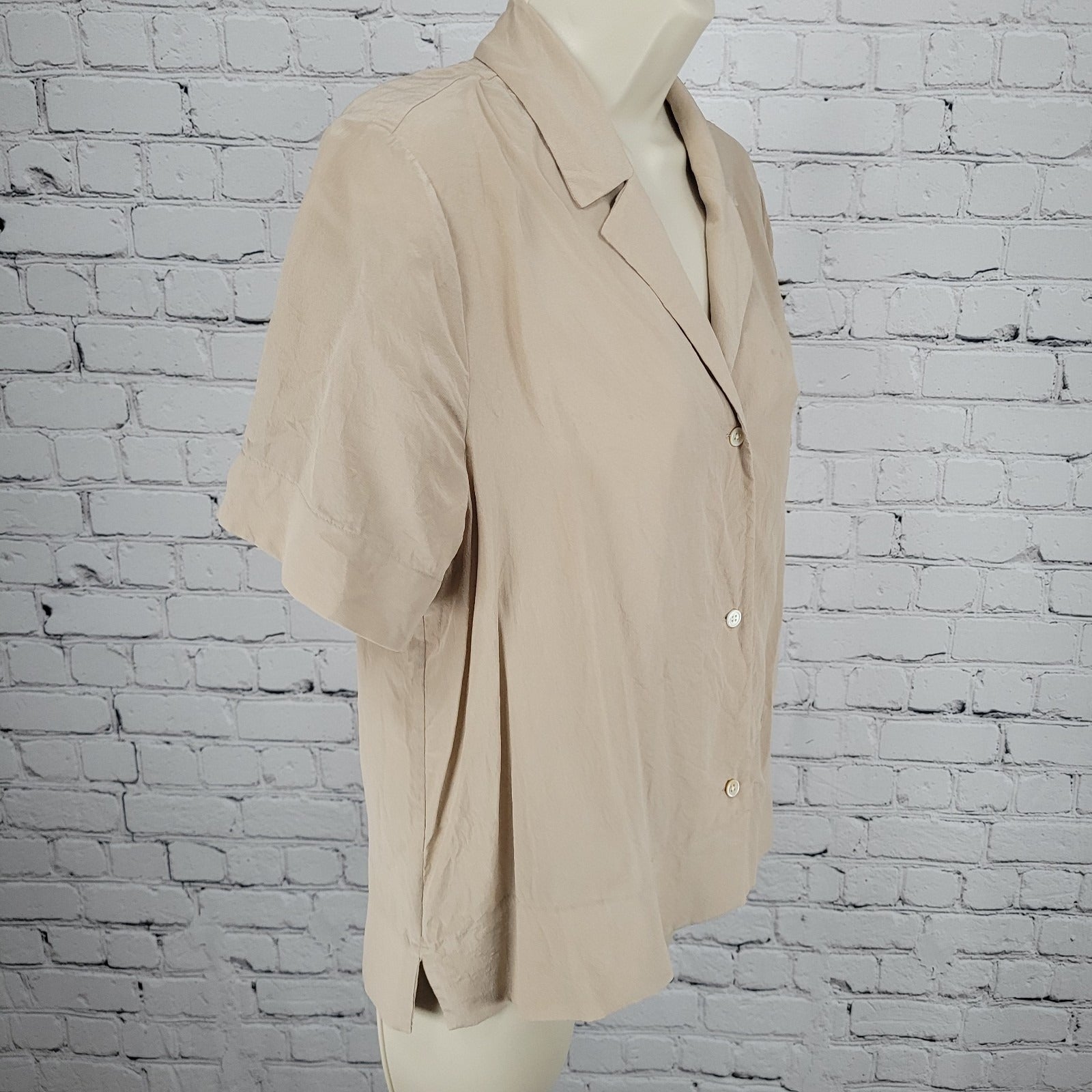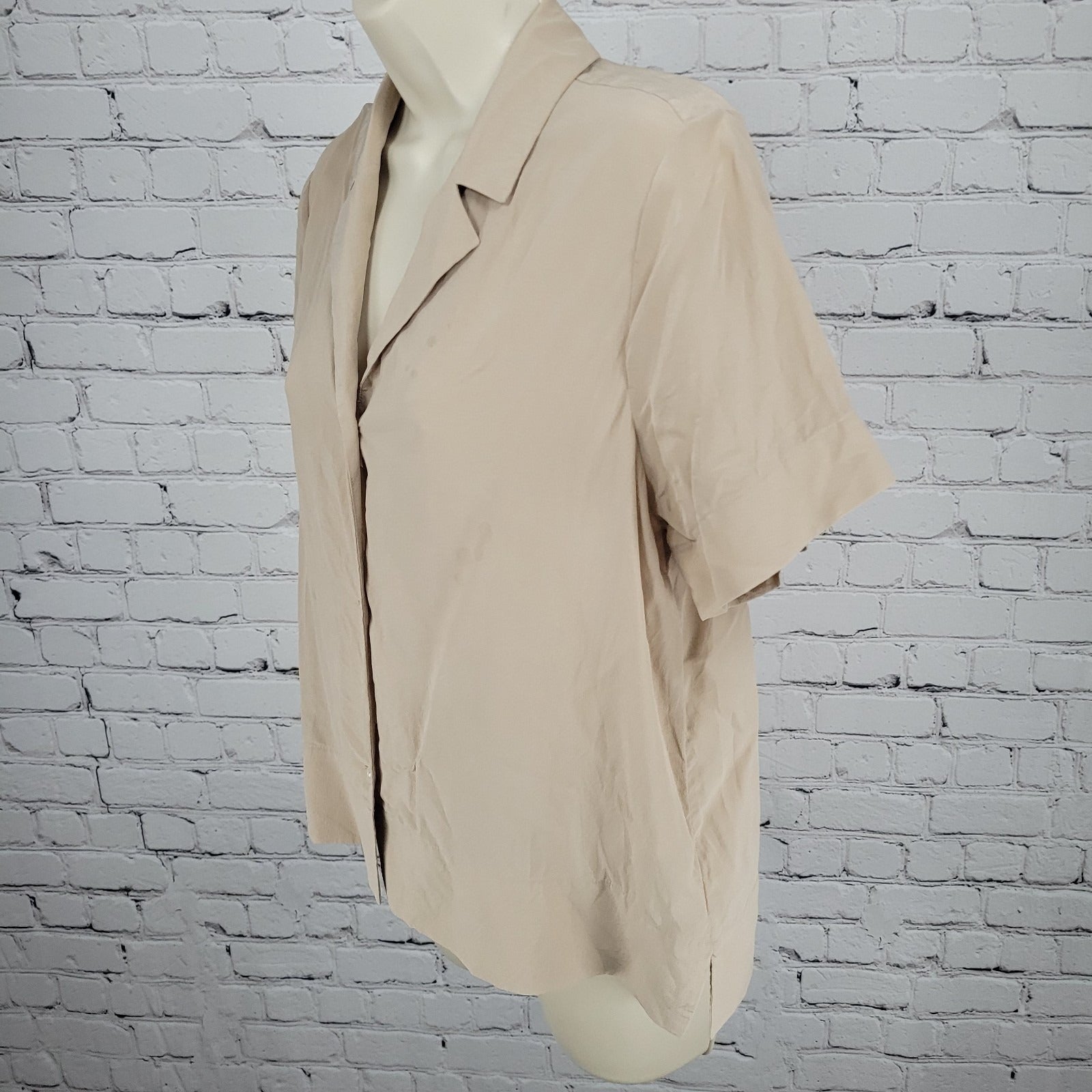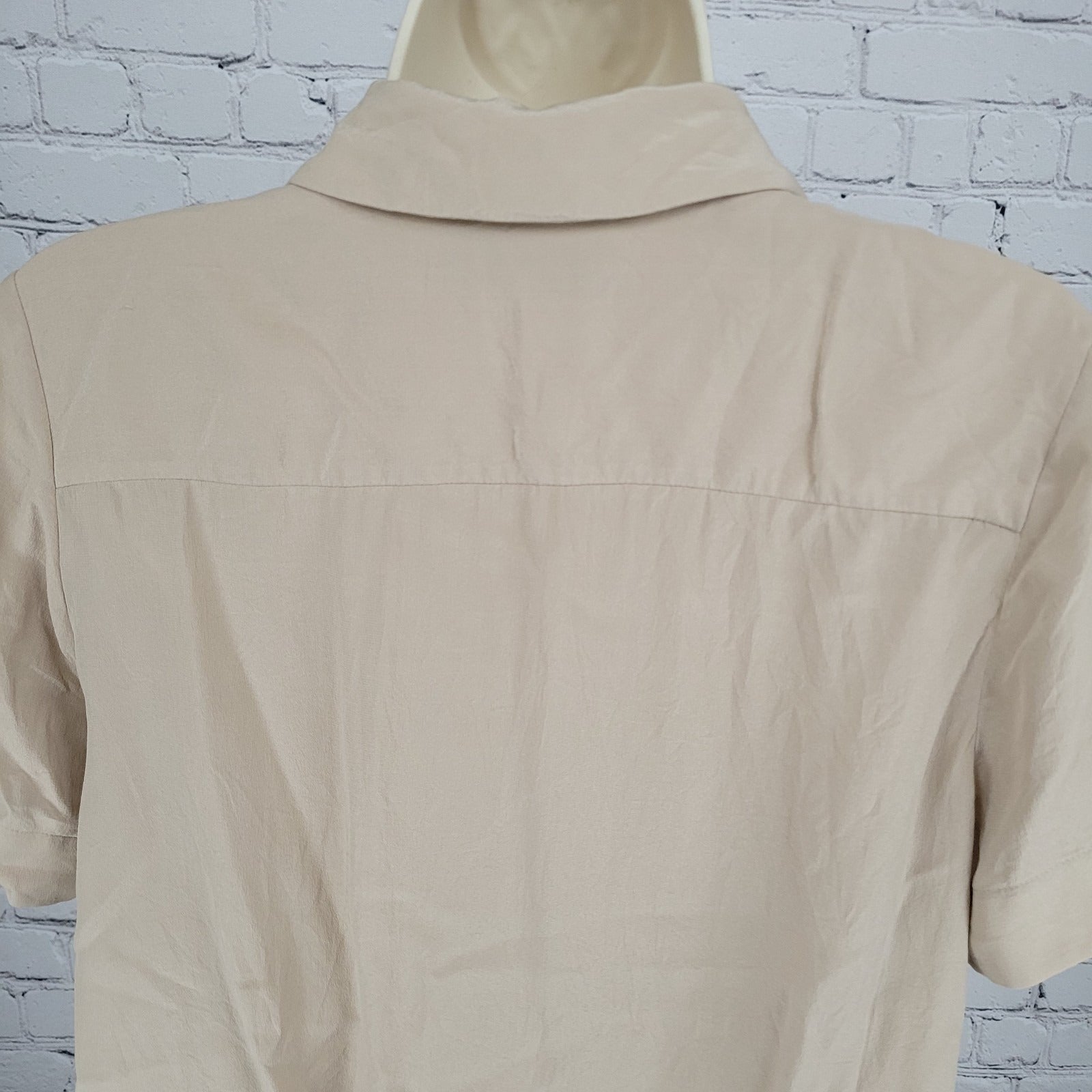 Everlane Beige 100% Silk Buttoned Up Short Sleeve Lightweight Shirt Top Size 6