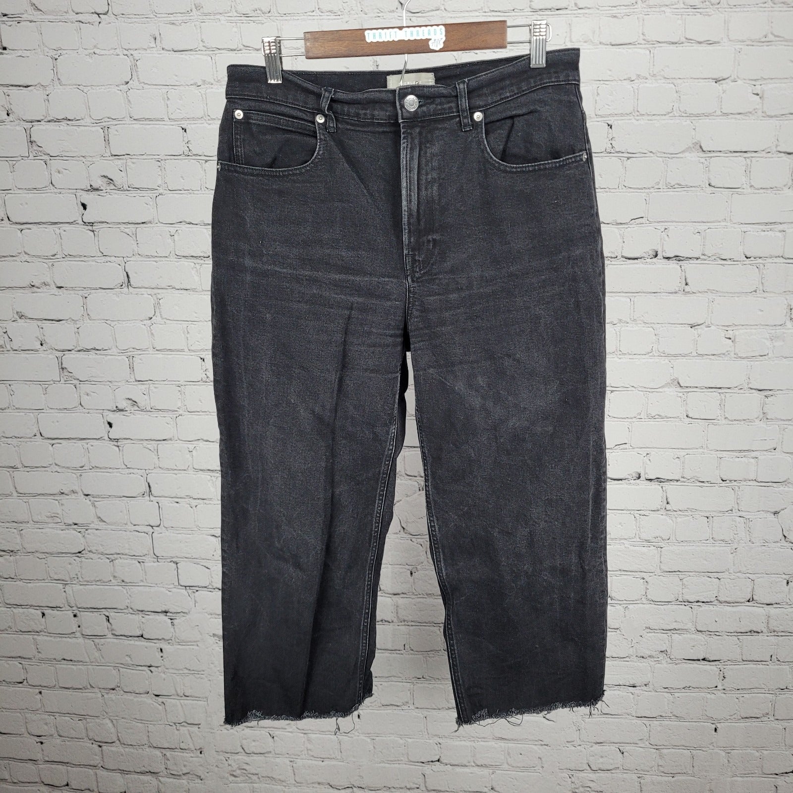Everlane Black Denim Organic Cotton The Highway Jean Cropped Cut Off 30x22