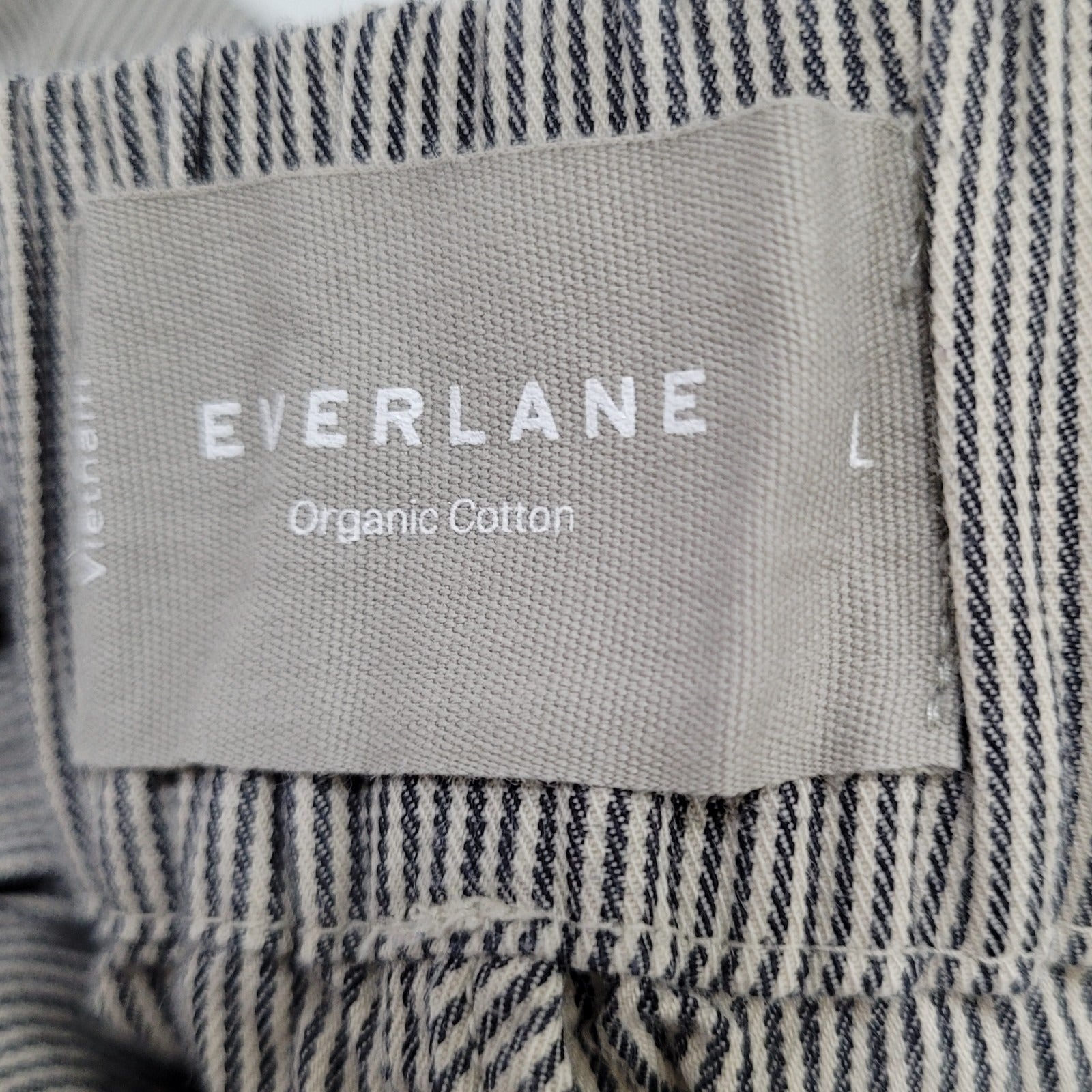 The Everlane Black White Organic Cotton Striped High Rise Shorts in size Large (30x5) are versatile and stylish for any casual or travel occasion. Made from a blend of spandex and cotton, these shorts offer comfort and flexibility with an elastic waistband for a perfect fit. The classic striped pattern and high rise make them a modern and preppy addition to any wardrobe, while the breathable and lightweight material is perfect for warmer seasons like summer, fall, and spring. With slash pockets and a flat front, these shorts combine fashion and functionality seamlessly.