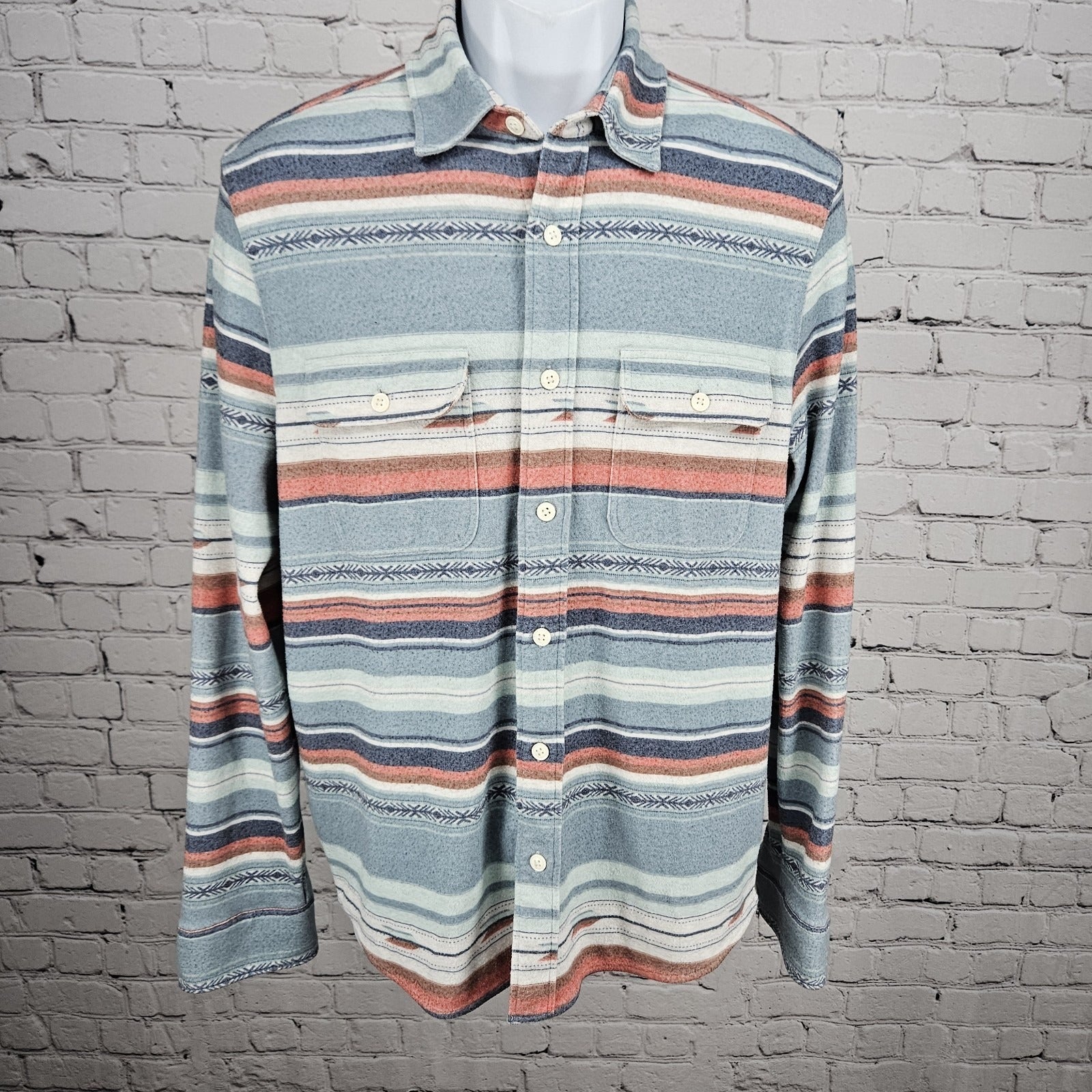 Faherty Multicolor Striped Aztec Button Up Long Sleeve Collared Shirt Medium M